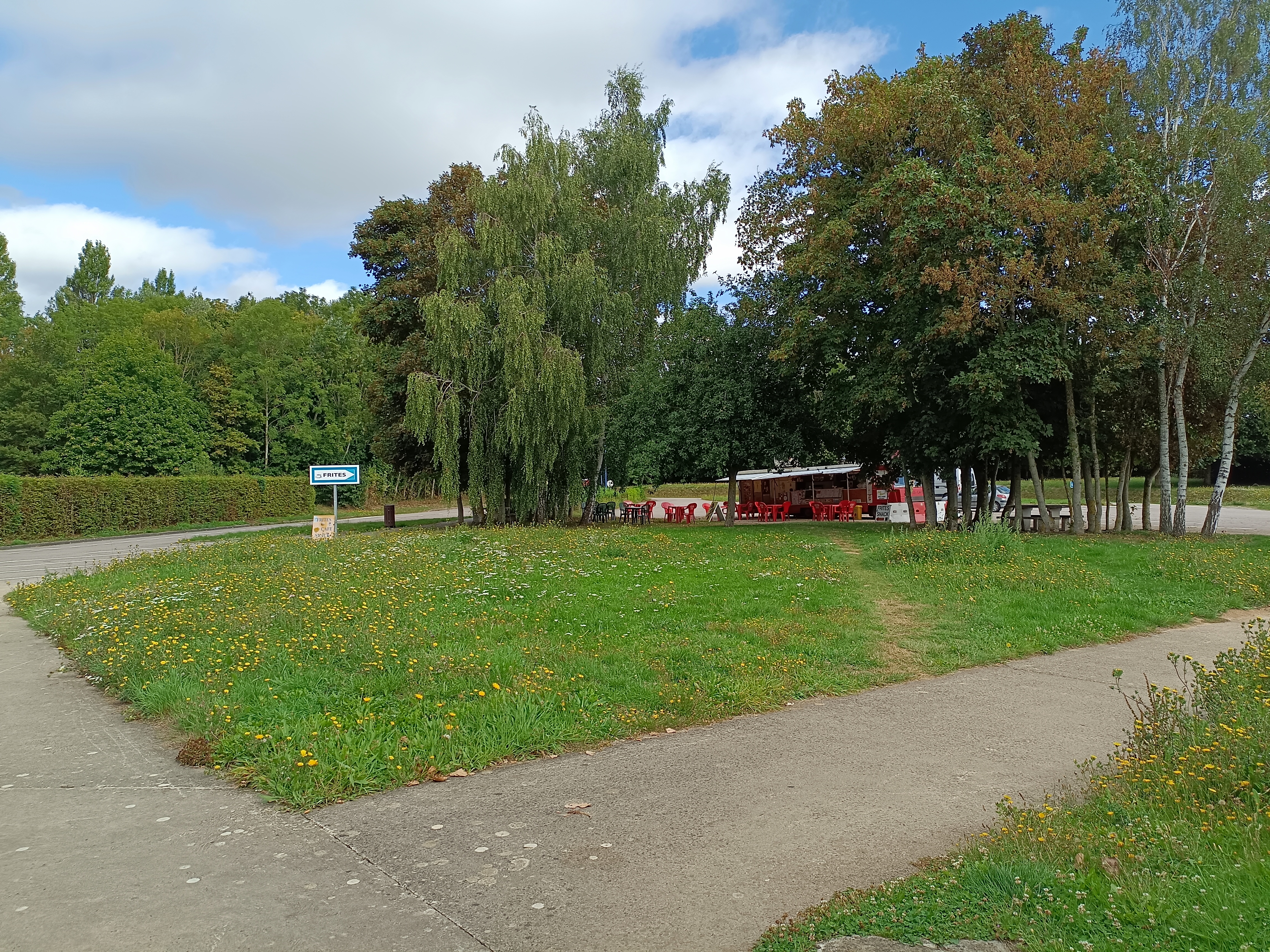 Je suis venu ici plusieurs fois pour revenir à Ouistreham. Je peux faire faire de l'exercice à mon chien avant d'arriver au port des ferries. MAIS les meilleurs sont les chips - elles sont totalement incroyables, les meilleures chips de tous les temps. Je discute toujours avec le propriétaire, qui est très sympathique et discutera de tout (il faut cependant parler français). Il y a aussi de nombreux locaux qui viennent manger ici. Ce mois-ci, j'ai même trouvé des orchidées poussant dans l'herbe des prés