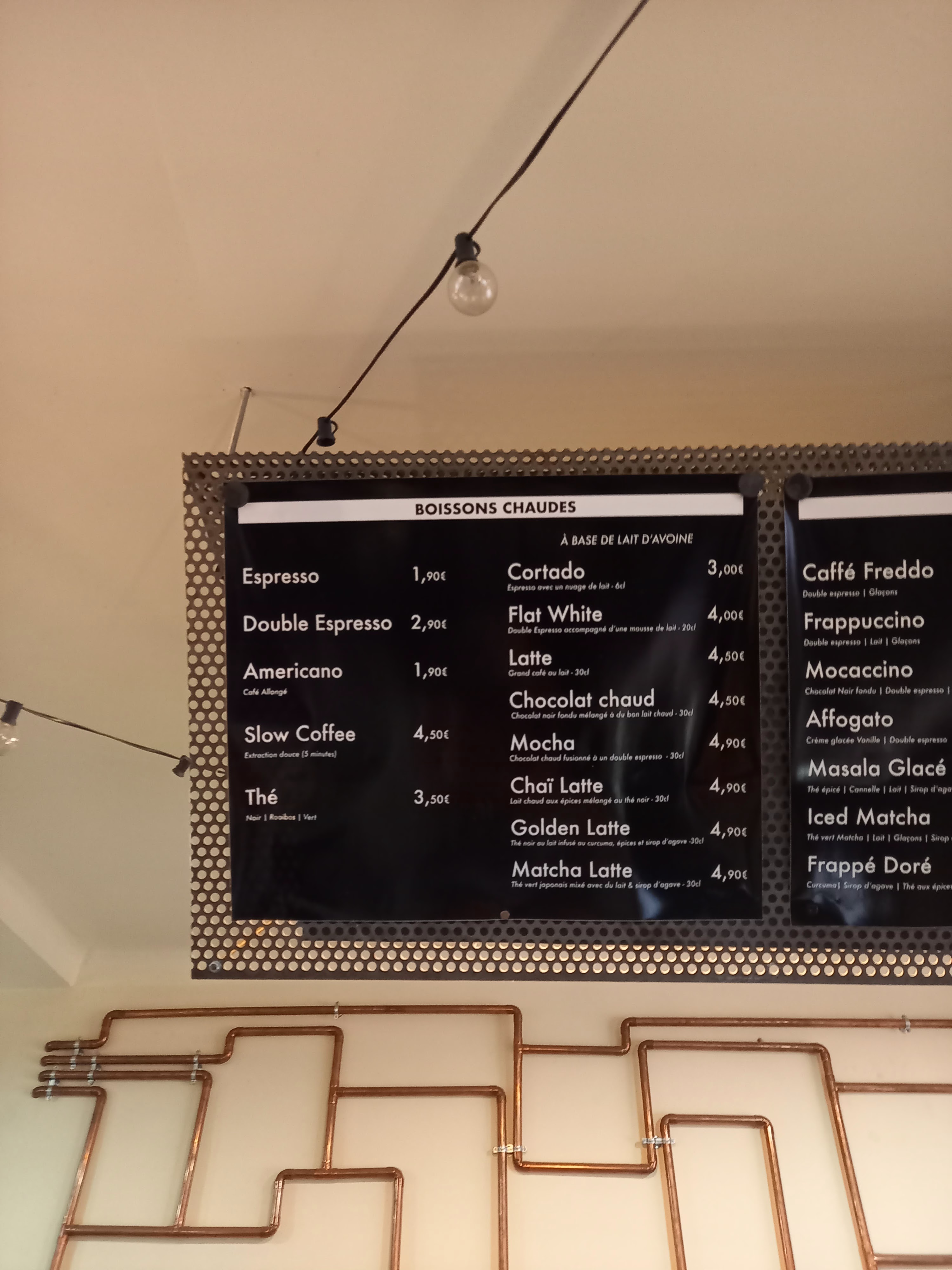 Service au top, agréable, et des cafés super bons 👌 objectif : tester toute la carte !