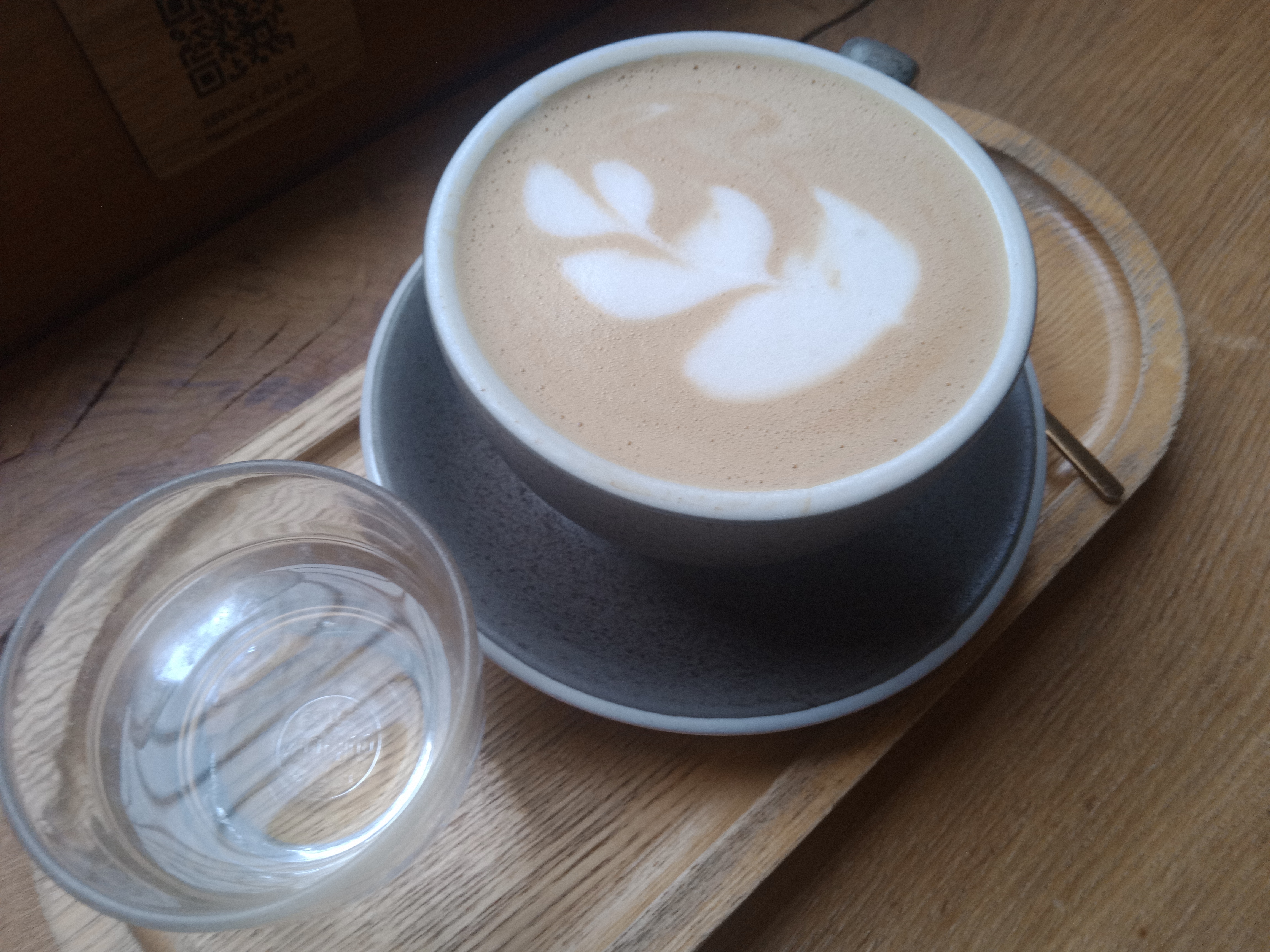 Leur latte est magnifique qui a fait à la base du lait d’avoine. Super café! Service sympa !!