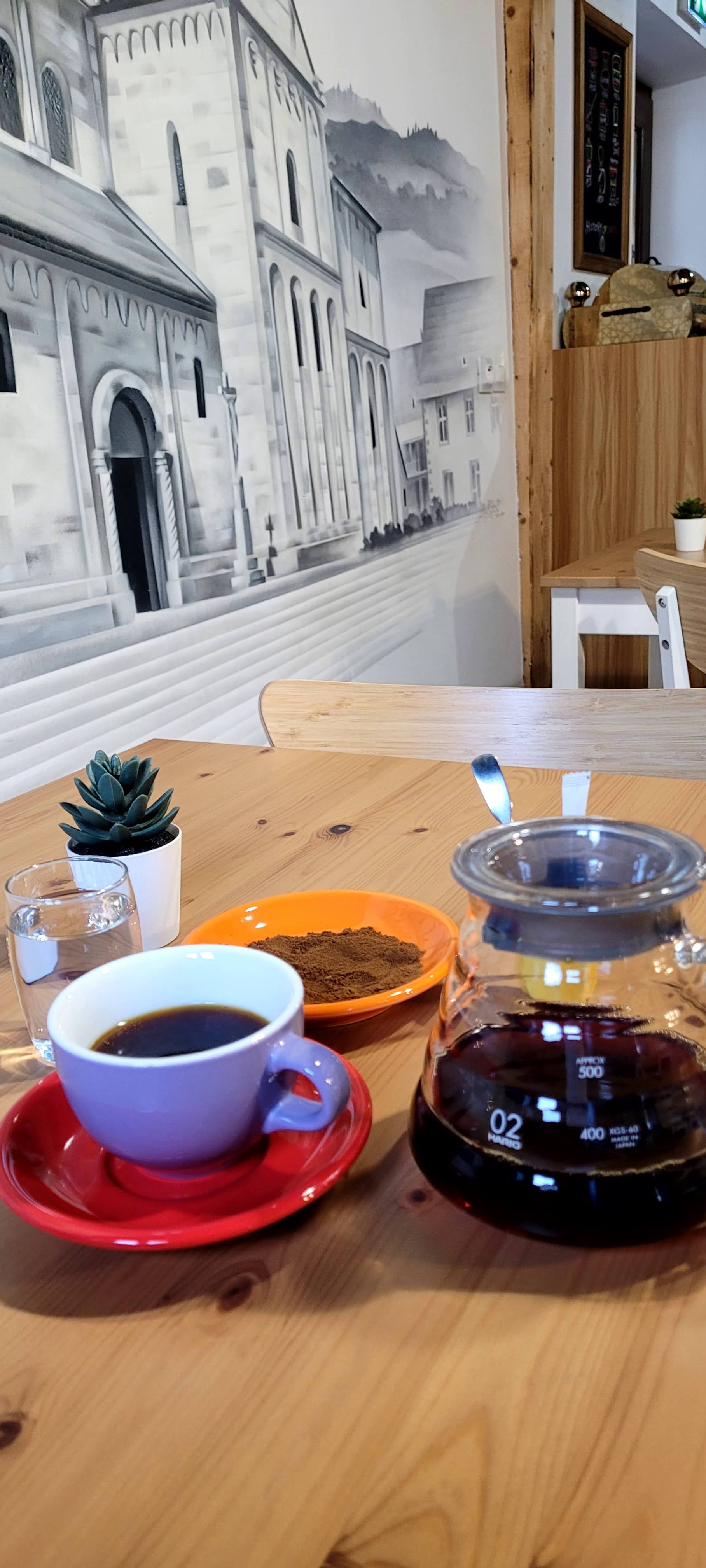 Superbe café au calme a la déco insolite. Un choix de cafés haut de gamme assez bluffant.... Des brunchs le week- end...de bons goûters en apmidi....on a adoré ! J'ai goûté au café turc le lendemain, une première pour moi ! Magnifique moment ! Ce café a beaucoup de caractère mais est très accessible au goût à tout amateur ! Je vous le conseille !