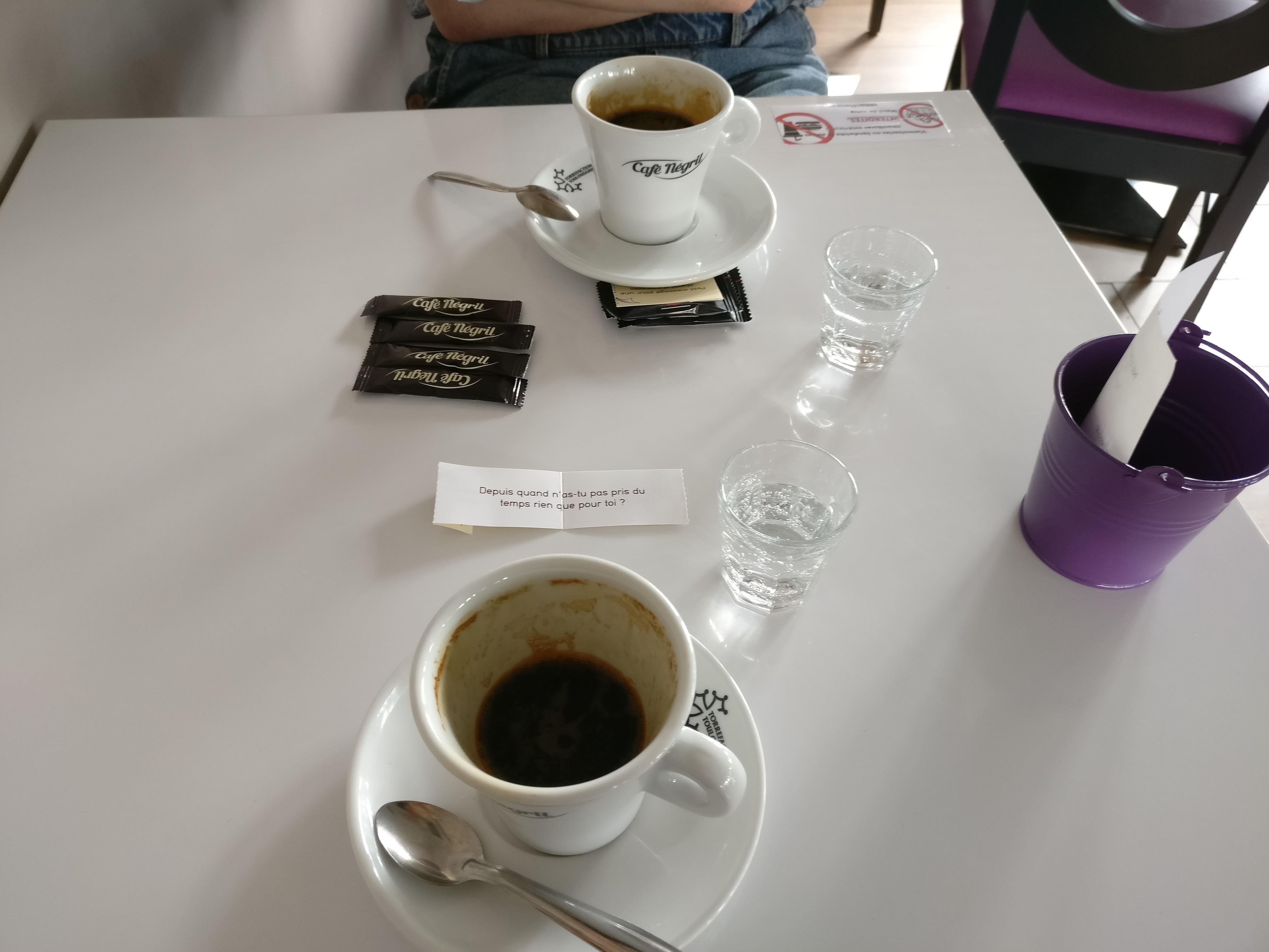 Nickel pour prendre un bon expresso au soleil le jour de marché à Balma