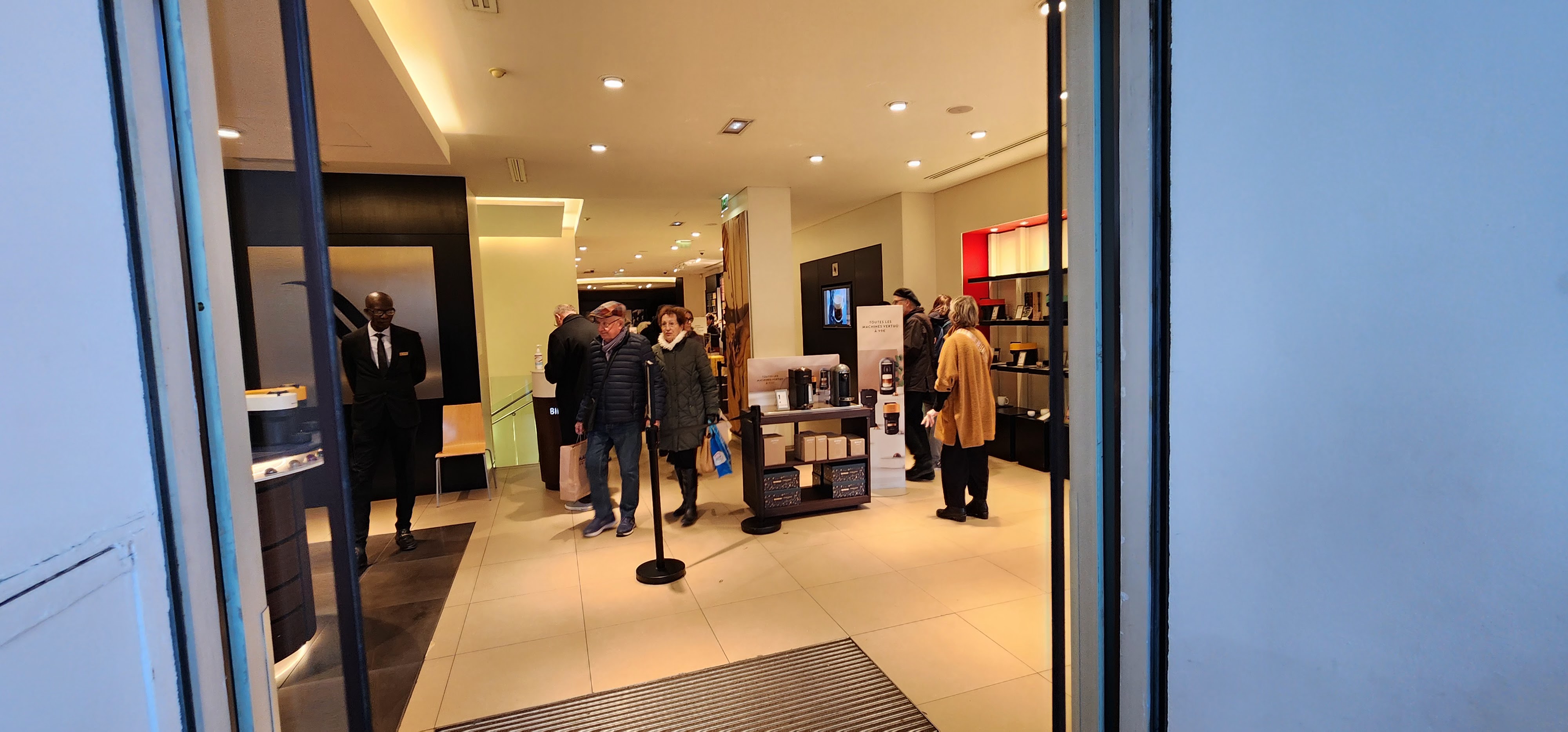 Je suis très bonne cliente Nespresso avec un statut Ambassadeur mais je commande uniquement sur Internet. J'ai voulu découvrir la boutique afin de voir ce magnifique lieu dont on m'avait parlé ...Autant dire que la déception était de taille, je ne suis même pas rentrée car l'accueil a été ZÉRO. A peine rentrée dans la boutique je m'arrête surprise par le monde qui attendait au fond de la boutique. Un jeune homme du staff me regarde et me dit Et oui il ne faut pas s'étonner c'est samedi et les soldes je le regarde et lui dis : Alors je n'ai plus qu'à partir ? pour seule réponse fut un haussement d'épaules. A aucun moment on m'a proposé de patienter avec un café ou de rentrer dans la boutique pour voir le nouveau concept....Bref au finalement je vais continuer à commander sur Internet c'est beaucoup plus simple !!