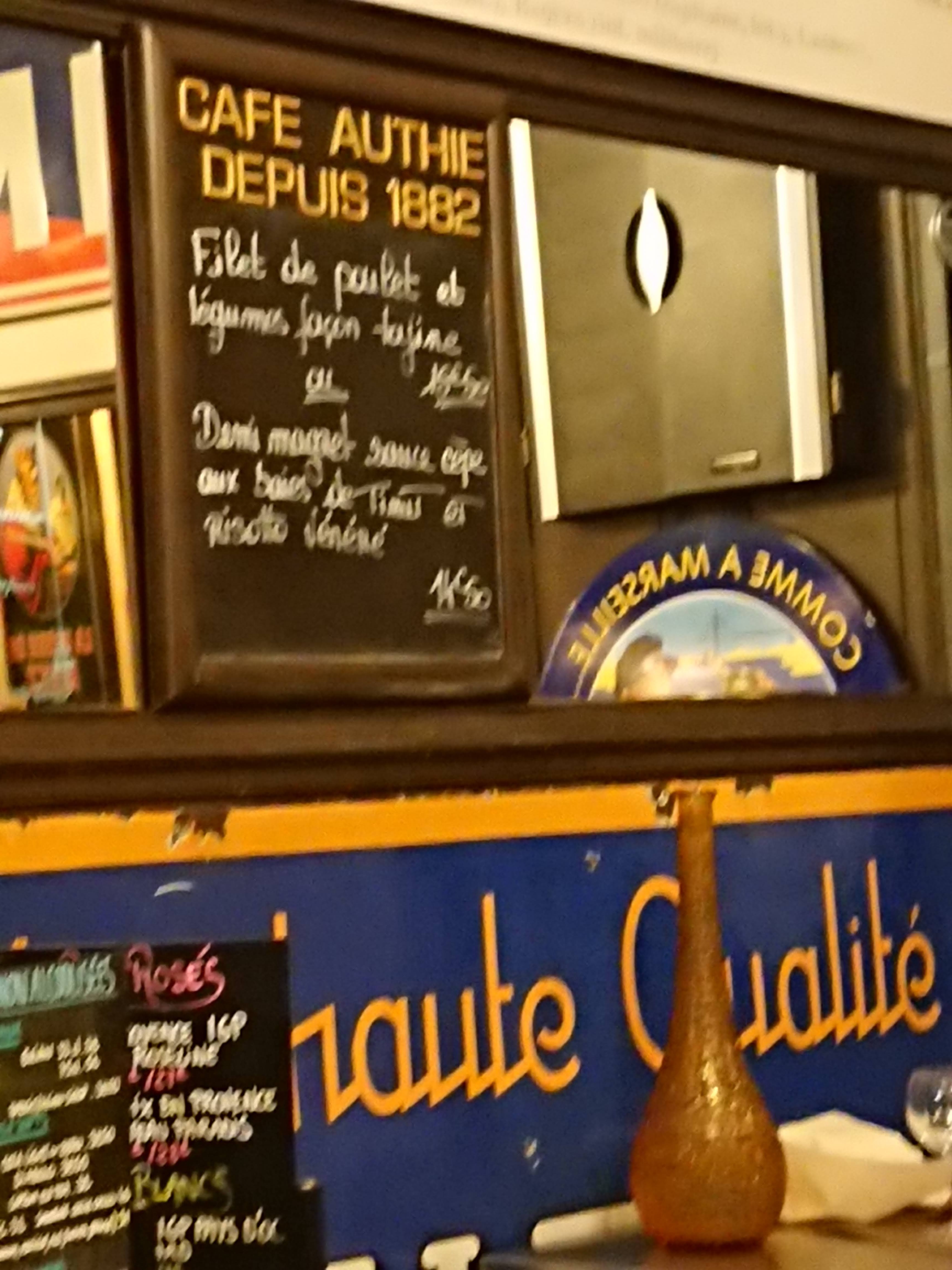 Le café Authié, c est l'anti morosité : cuisine de qualité, vins sympas à déguster et Olivier, aveyronnais passionné qui sait orchestrer avec hospitalité et convivialité 🙂!