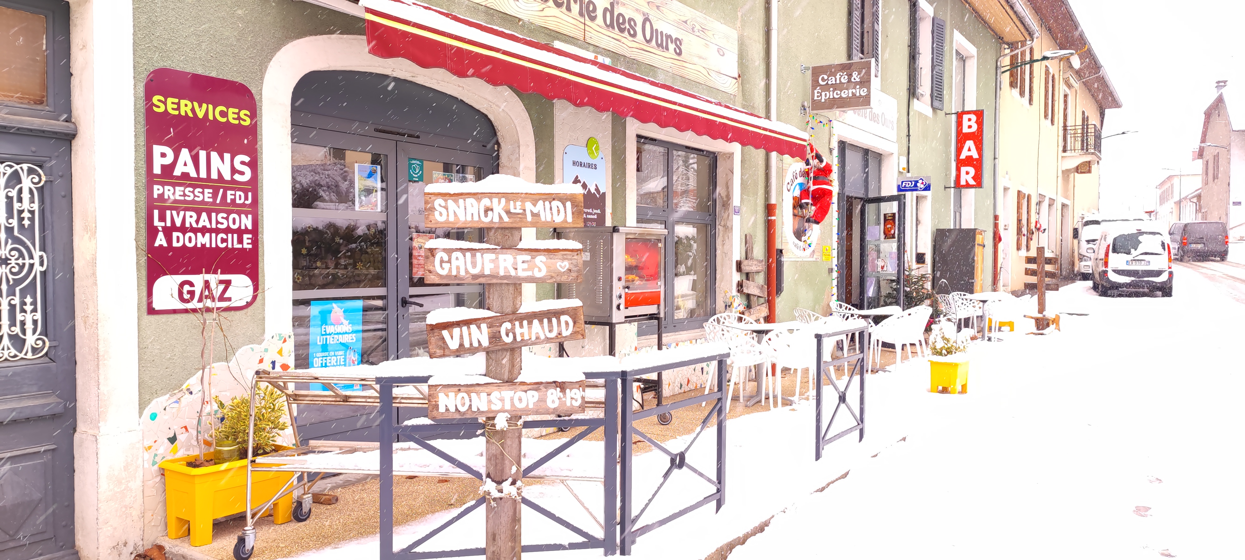 Une supérette avec tous le nécessaire et un bar rattaché à celle ci. Un patron super sympa et pas avare de bon conseil. Je vous les conseille plus que vivement.