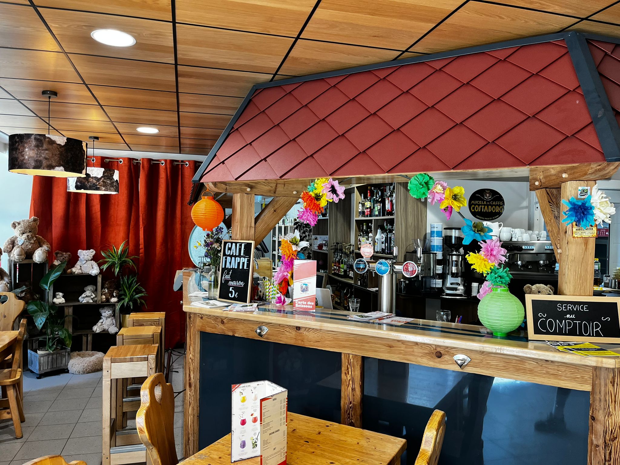 Café bien sympathique , du beau mobilier, une ambiance chaleureuse et gérants tops sans oublier le petit Toulouse. Repas à emporter très correct. Bravo et bonne continuation.