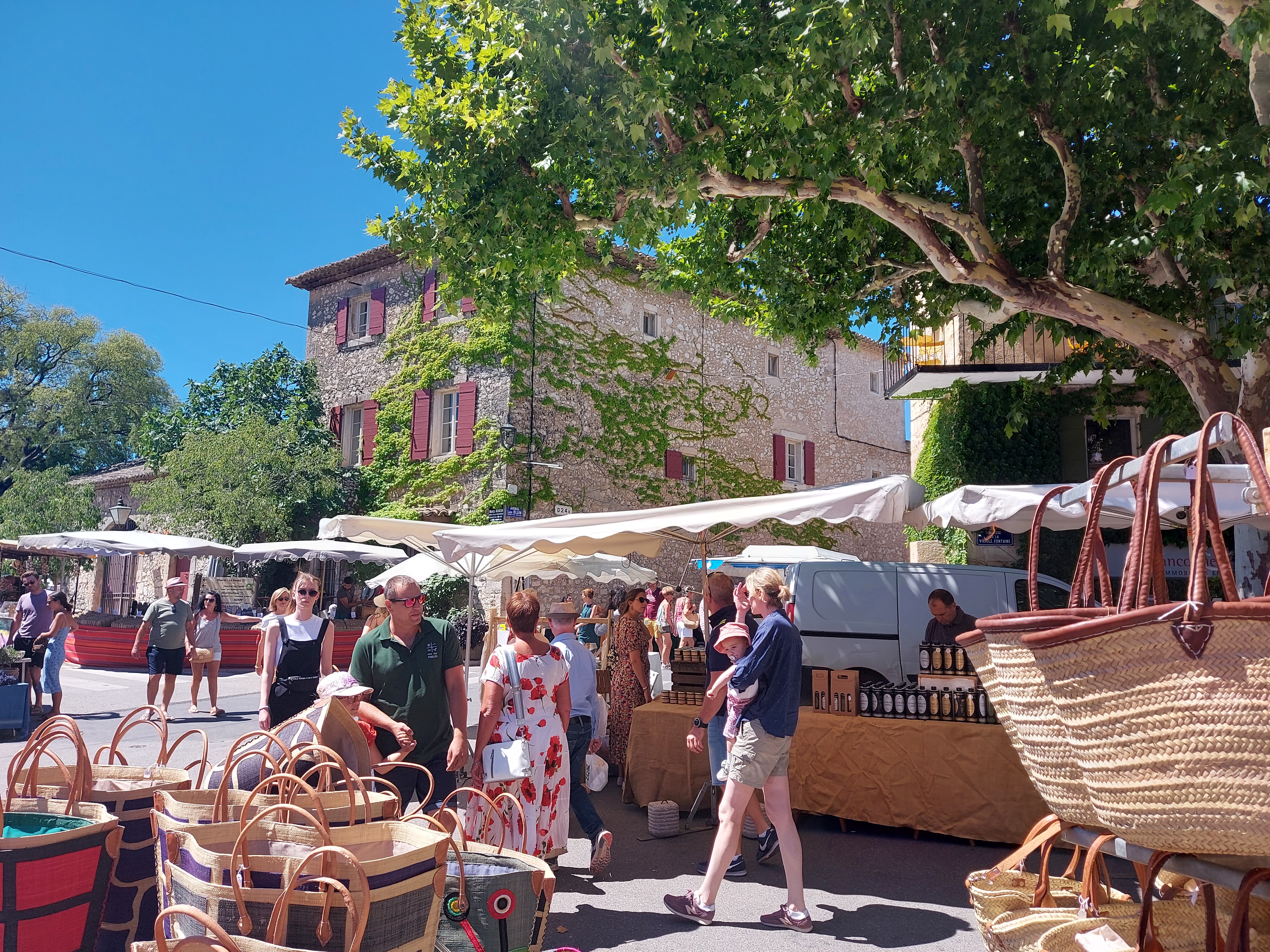 Bel emplacement dans le village pittoresque de Provence. Vendredi jour de marché. Il peut aussi pleuvoir parfois, mais cela ne dure jamais longtemps. Belle vue du sommet avec les ruines antiques.