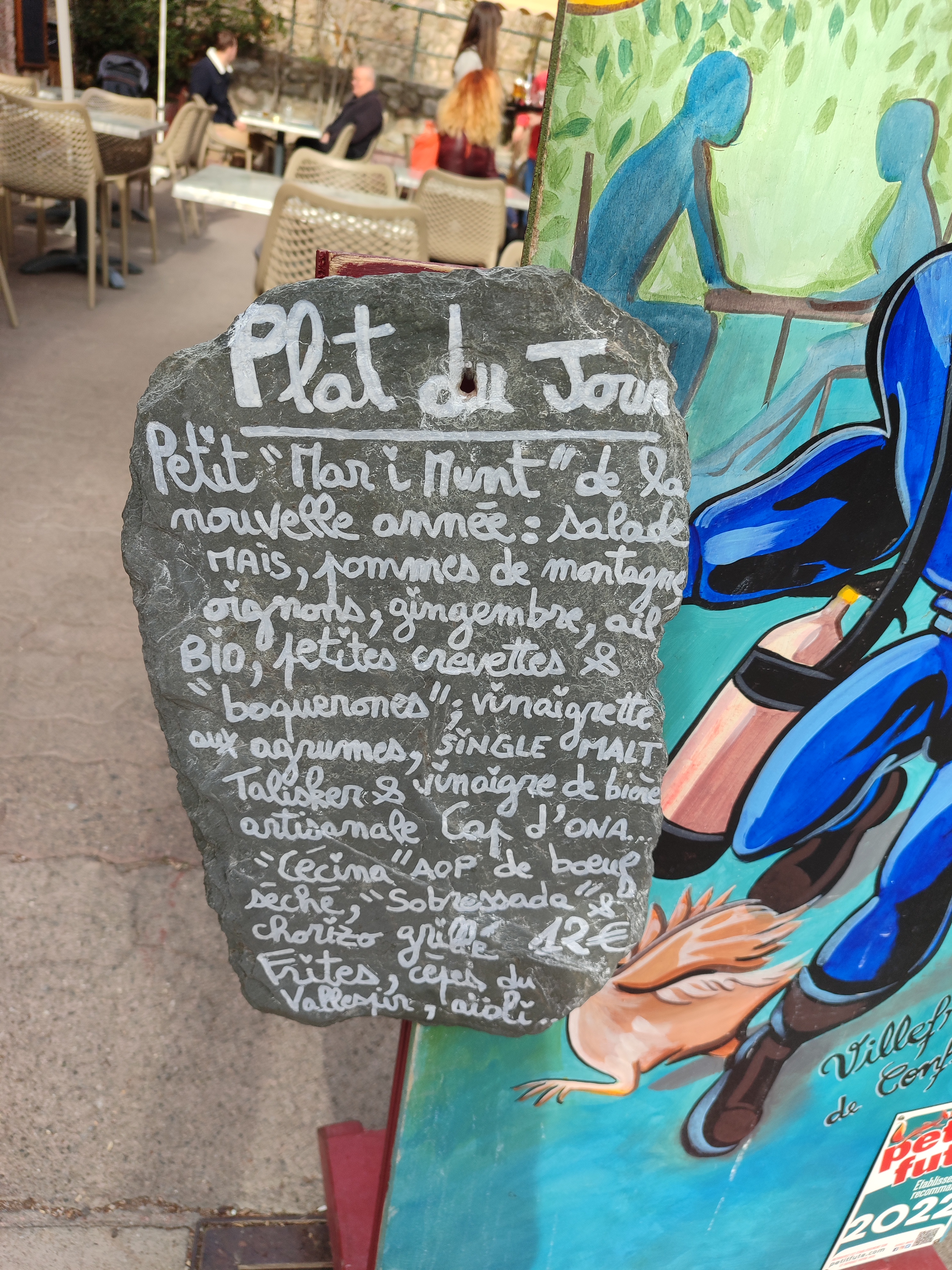 L'incontournable à Villefranche de Conflent, c'est le café du Canigou, on y mange sur le pouce des planches aux saveurs locales, des produits scrupuleusement sélectionnés par le maître des lieux... Le maître des lieux, un personnage, haut en couleur, rouge, rouge pompier.. Ou rouge comme sa cuvée... Pour moi, ce gars, c'est la bonne représentation du pays... Sympa, accueillant, toujours plein d'anecdotes à vous raconter,généreux.... J'adore !!!! Le café du Canigou, c'est sacré !