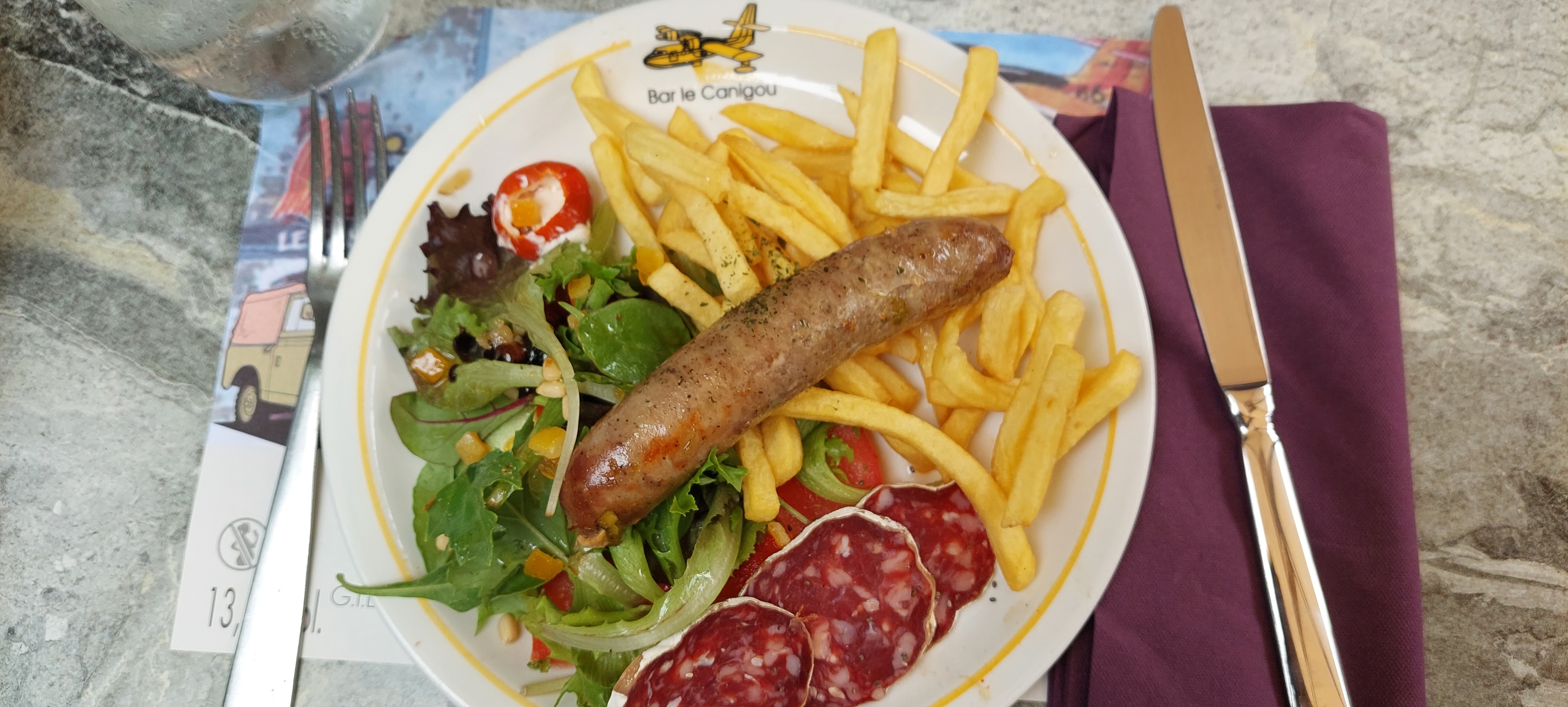 Il faut savoir garder raison. Je vois les notes et suis étonné qu’on ne mette que 3,2 à 3,8 étoiles. Je désirais un plat rapide et plutôt bon, j’ai eu ma meilleure expérience de saucisse (catalane) frites (sauce moutarde truffes) à ce jour. Accompagnée d’une salade parfaitement assaisonnée, je suis paré à faire le tour des boutiques jusqu’au départ du train jaune, l’esprit et l’estomac apaisés. L’accueil a été excellent, le service parfaitement exécuté ! Bravo !