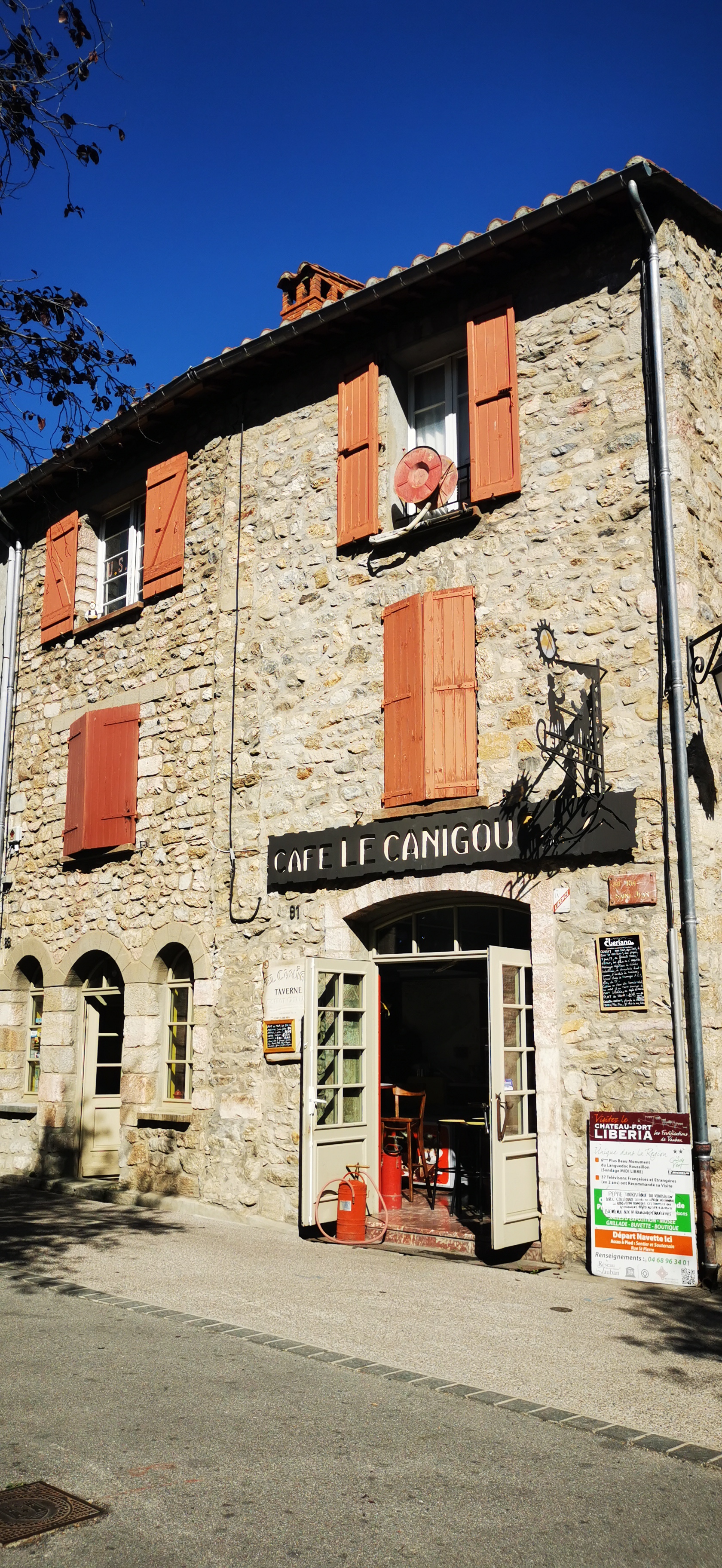 Le Café Le Canigou, c'est avant tout une expérience humaine avec des gérants haut en couleurs qui aiment leur village si atypique et beau, comment ne pas avoir envie de faire un stop à la vue de la muraille qui se dessine soudainement sur la nationale 116 au détour d'un virage que ce soit en allant vers Vernet les Bains ou Font Romeu. La bonne humeur est au rendez-vous, le patron jovial en plus d'être au feu pendant les repas, est pompier de métier par ailleurs, on ne pourra manquer de découvrir sa passion à travers les nombreuses installations miniatures ou à l'échelle en rapport avec ce monde du secours, que ce soit sur le bâtiment en extérieur ou à l'intérieur au bar. La famille est très investie dans l'histoire du village et de la citadelle, Le fort Libéria, cela depuis des décennies. Toute consommation sera l'occasion de récupérer le fameux sésame sur sa facture pour avoir une réduction de 2 euros sur la visite du Fort et de la montée et descente en 4x4 pour arriver en forme là haut avant d'affronter les remparts et les sous terrains stratégiques du Fort. Le restaurant vous servira des plats typiques catalans délicieux en intérieur ou sur leur superbe terrasse ensoleillée à midi, pour un budget modéré, donc aucune hésitation. Il existe aussi le pendant du restaurant du Café Le Canigou en haut dans le fort, s'assurer des jours d'ouverture en fonction de la saison, belle expérience, restaurant tenu par un des fils. Hâte de retrouver toute l'équipe d'ici quelques mois, merci à Corinne et Joël pour leur super accueil et disponibilité! N'hésitez pas à leur demander des informations sur la région, vous ne serez pas déçu, ils l'aiment à un point que vous n'aurez plus envie d'en partir... 🙏🥰🙏 Vive le Canigou, longue vie à la cité médiévale de Villefranche de Conflent desservie par la SNCF à deux titres, les TER venants de Perpignan et le célèbre Train Jaune qui est le symbole de l'ascension vers Montlouis et Font Romeu jusqu'à la gare internationale de La Tour de Carol à la frontière espagnole. Un dense service de Bus à 1 euro complète le réseau de transport, merci à la Région Occitanie pour ce service exceptionnel ! 😀🙏🥰