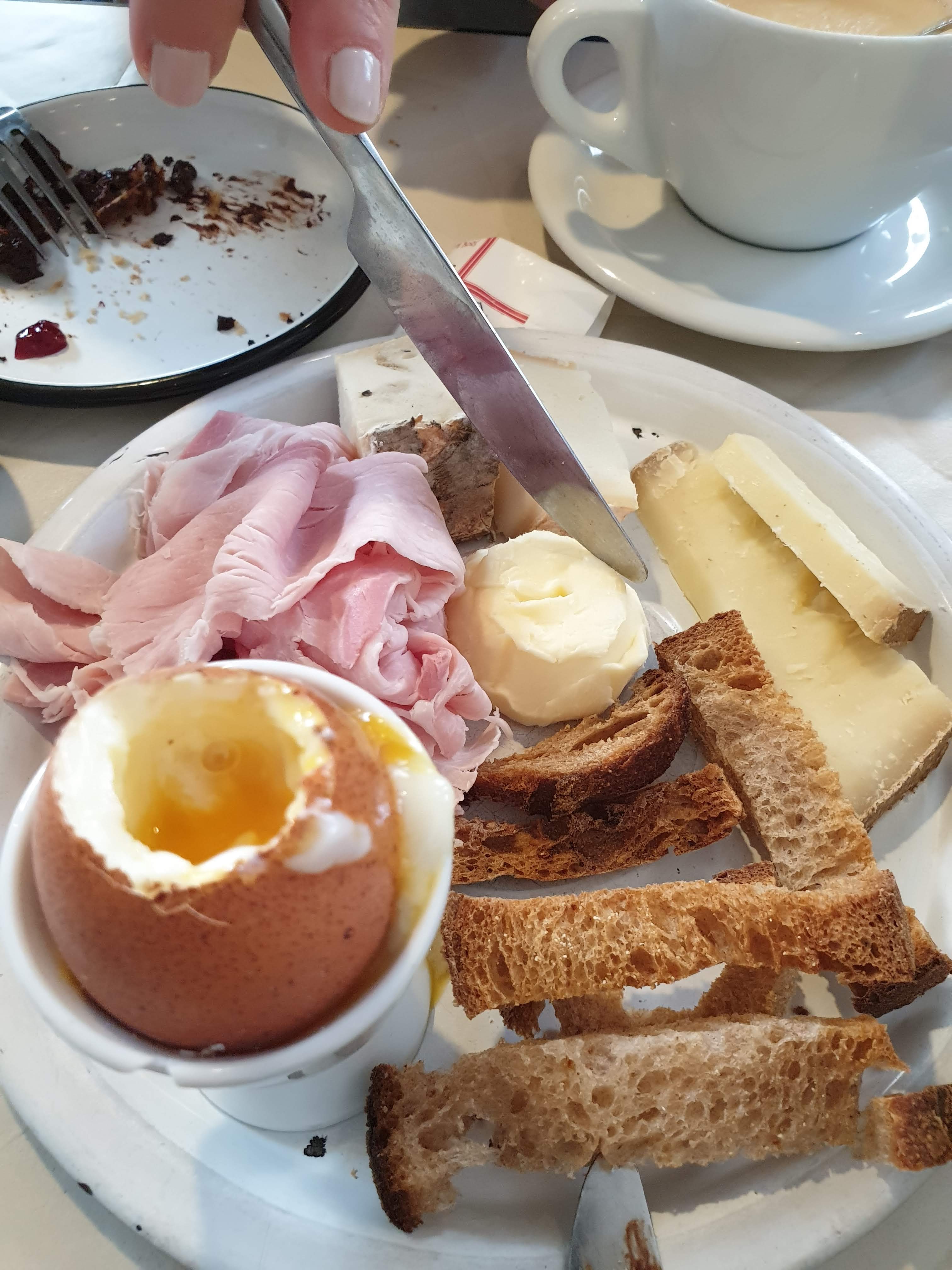 Une chouette terrasse et un petit déjeuner bien français pour commencer la journée 💪🏻😁 (pas énormément de choix en petit déjeuner mais le moment était fort agréable tout de même !)