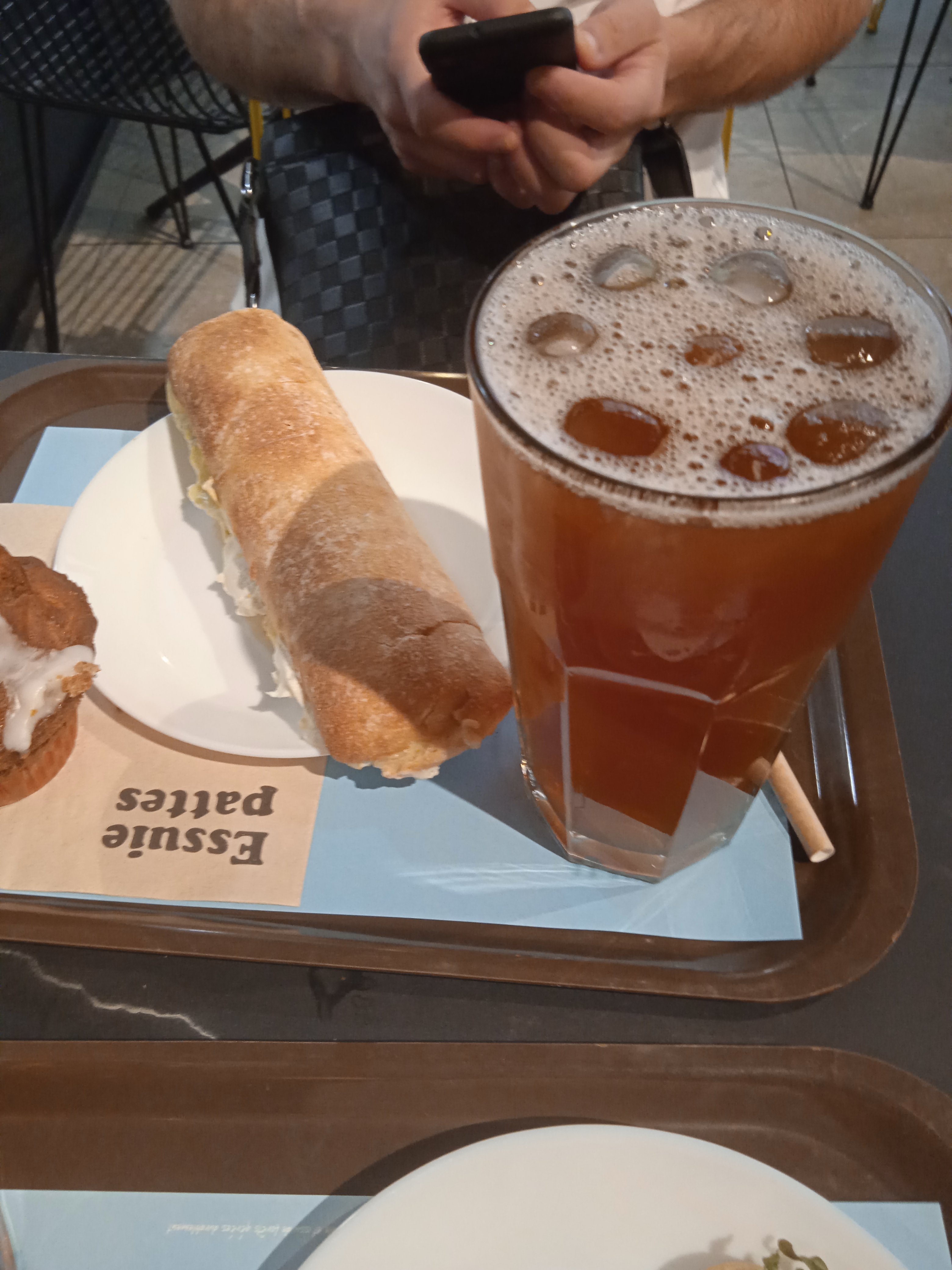 Très bien. Mon chai tea latte était trop épicé,il me l'on échangé contre un chocolat chaud très commercial de leur part. Les muffins très bon , Et jus d'orange passion une turie 😉🍪