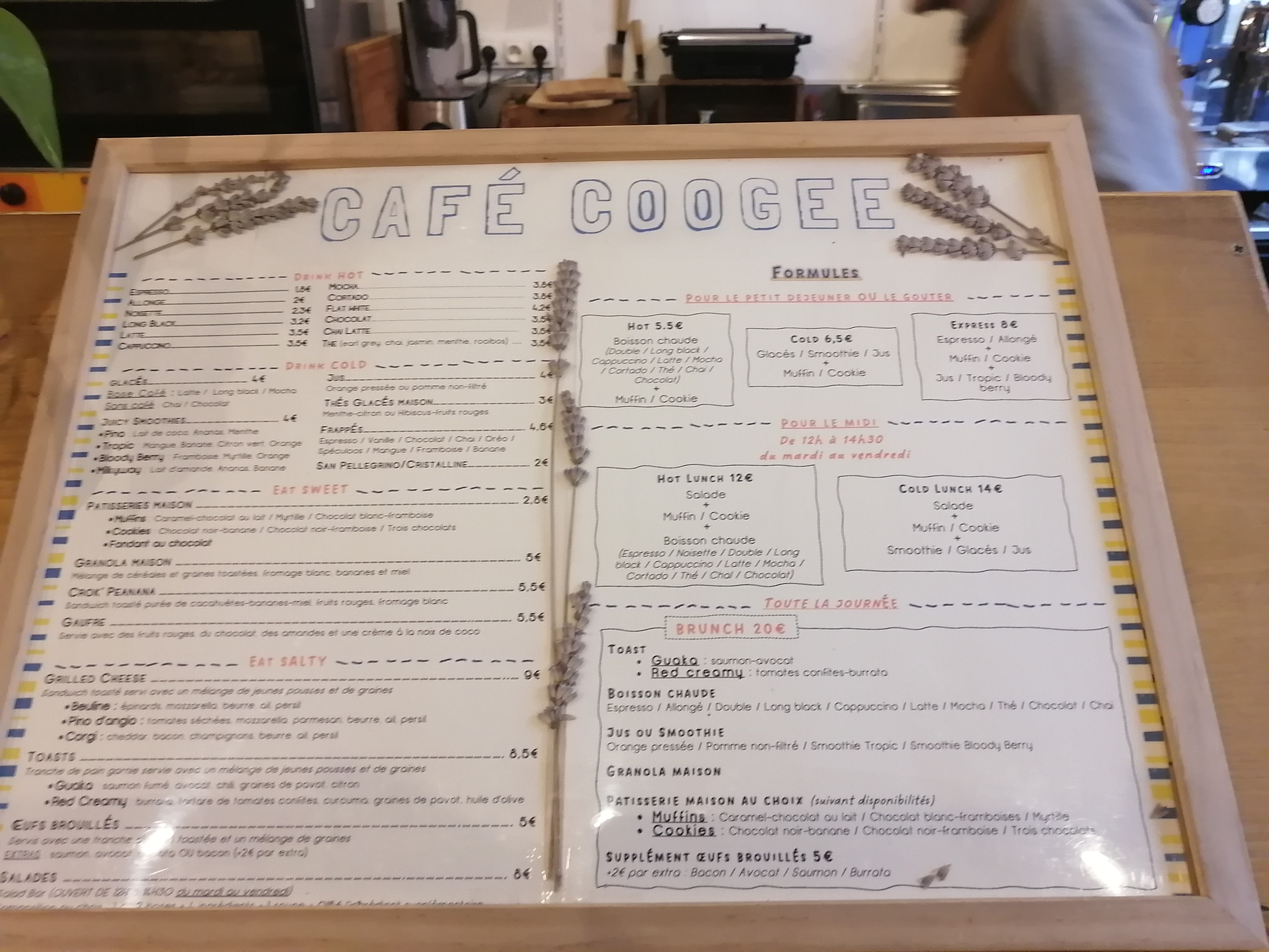 J'ai passé la journée au café coogee. Tout était très bon. Les muffins, le cookie chocolat/framboise (je recommande !), les jus de fruits ou même la tartine avocat/saumon. Tout est fait maison et sur place. Et les prix sont plus que raisonnables. N'hésitez pas à vous arrêter.