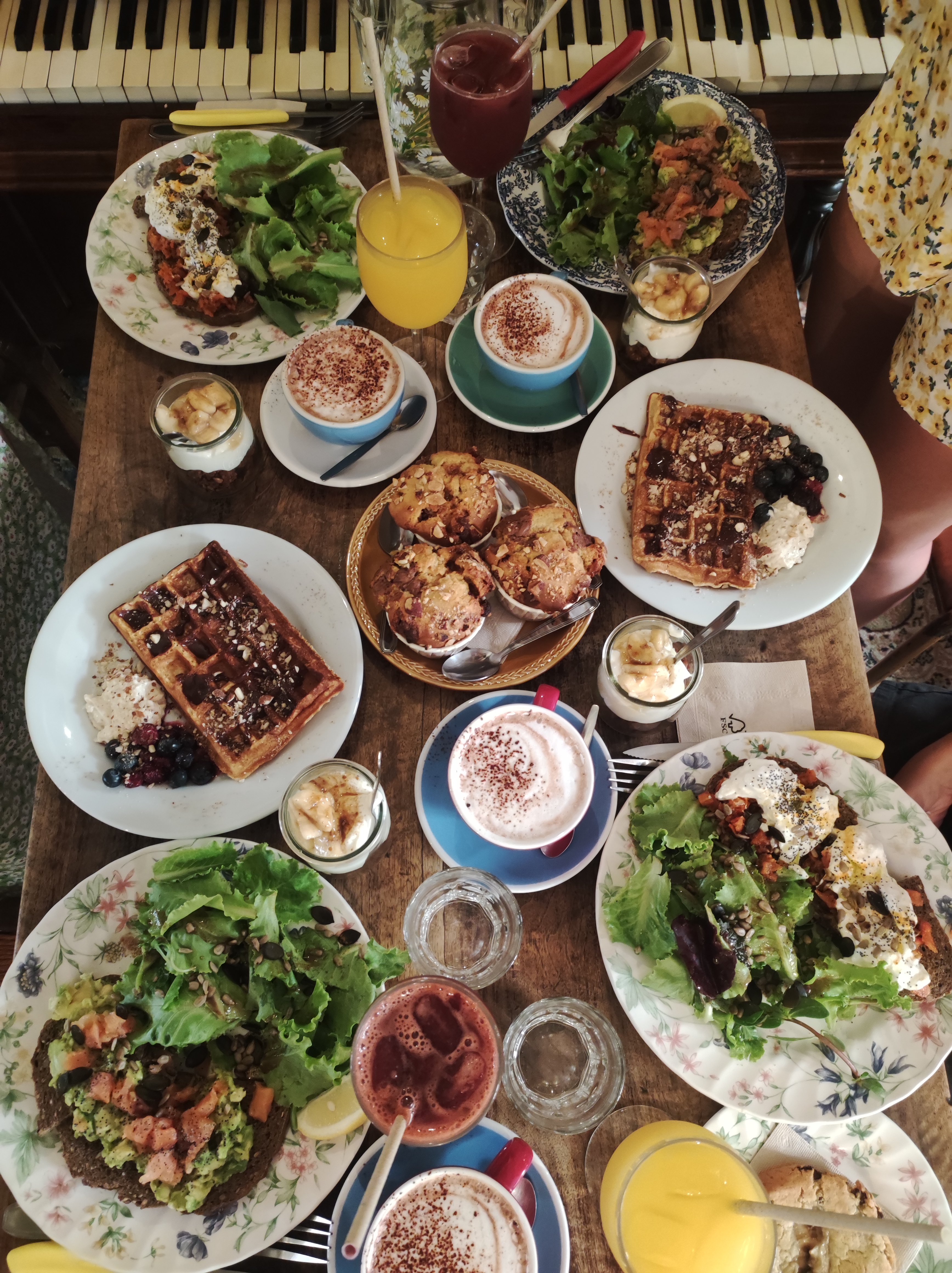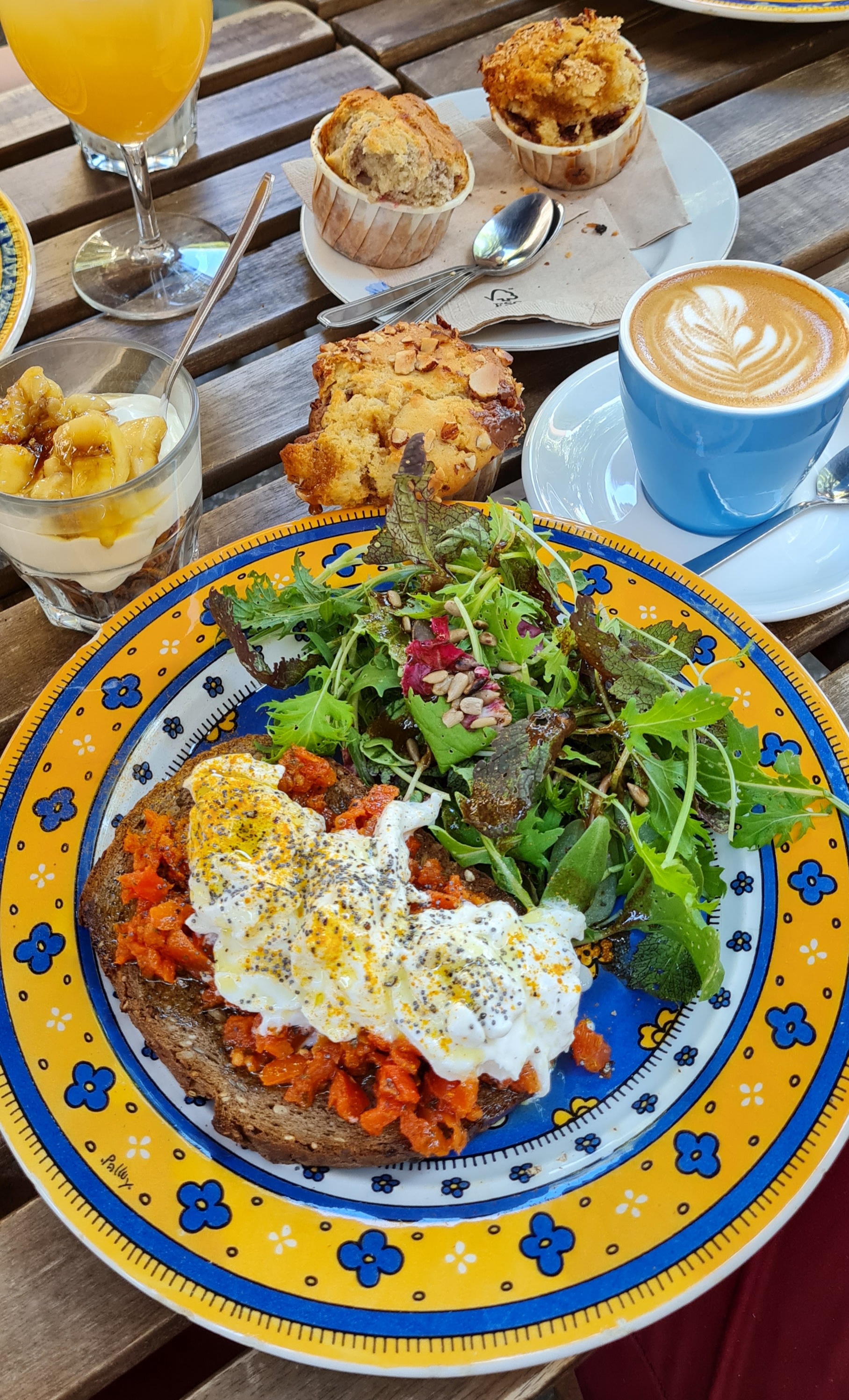Adorable moment chez coogee pour un brunch plein de vitamines. Service agréable et un petit granola maison très bon. Le cadre est original, piano, velo suspendu, tables rustiques 😀 on s'y sent vraiment bien. On a adoré les toasts tomates confites et mozza.