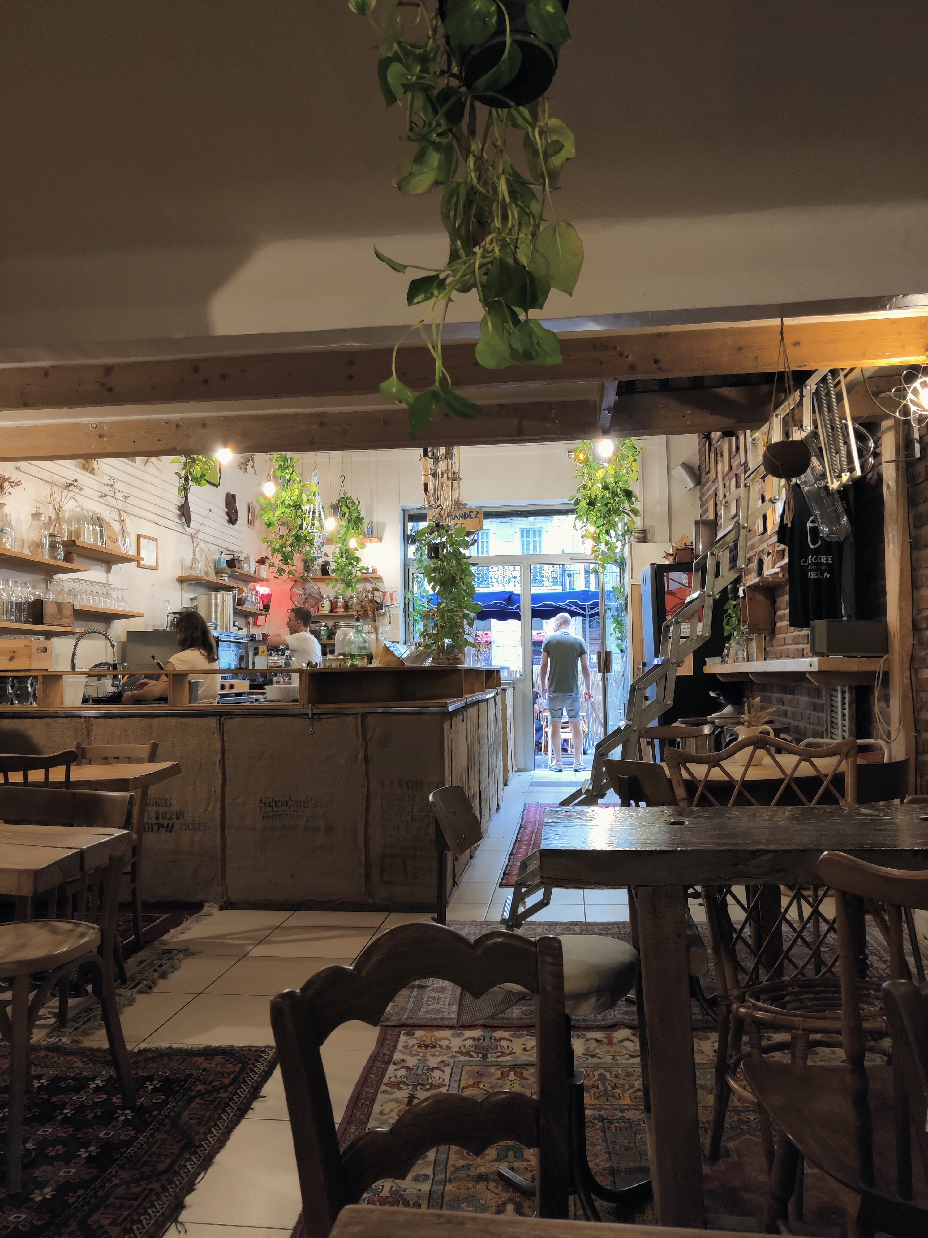 Plantes bien entretenues!!! C'est important :-) Ambiance décontractée. Lieu chaleureux. Équipe enjouée et par les temps qui courent, c'est assez rare pour le préciser. Café délicieux, tartines d'enfer. Bien sur qu'il faut y aller!