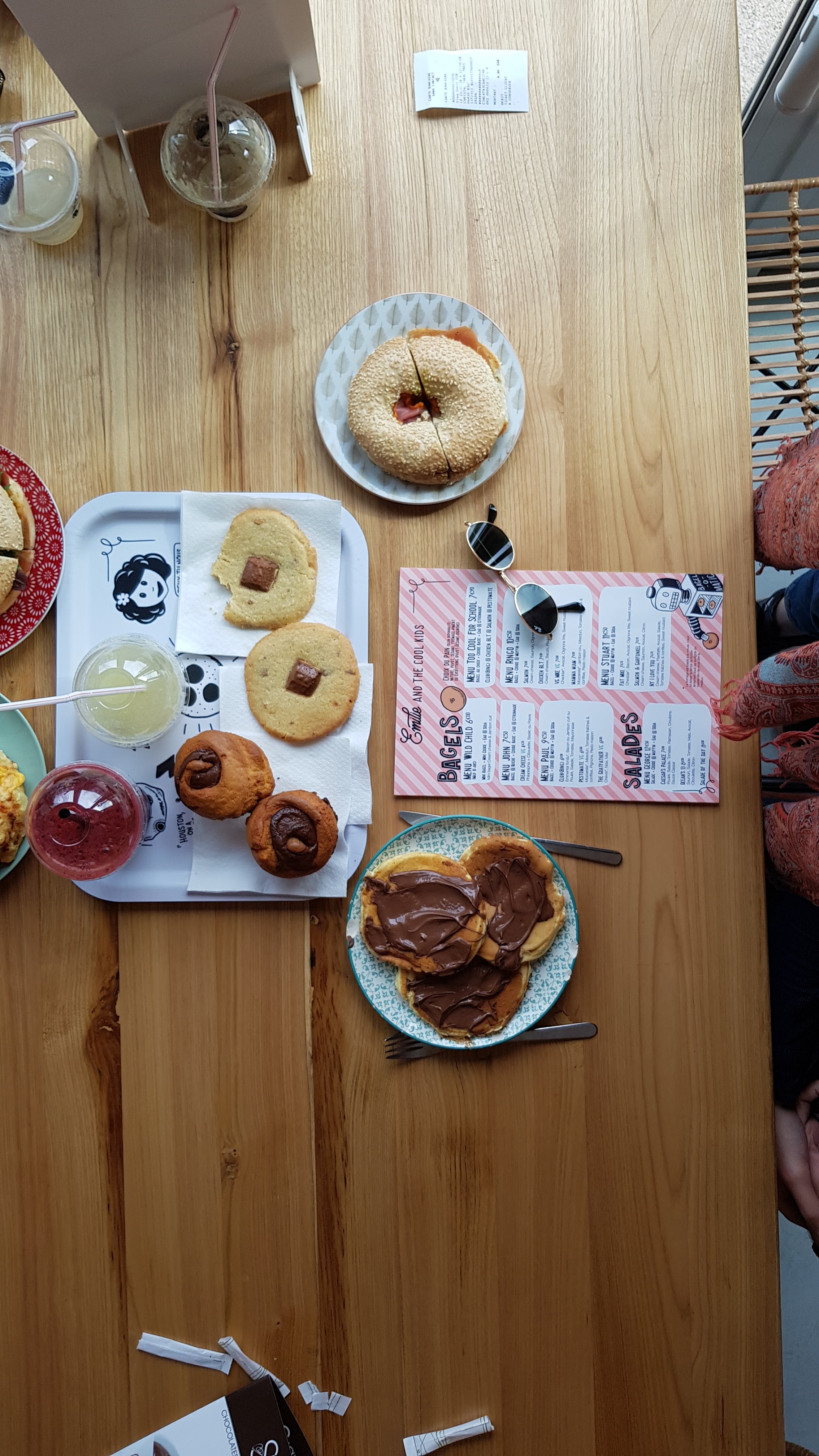 Une ambiance cantine cosy, des serveuses souriantes, une belle carte de bagels et de pâtisseries et produits vegan ou pas. Quel dommage de gâcher ça en servant autant de gâteaux au Nutella....