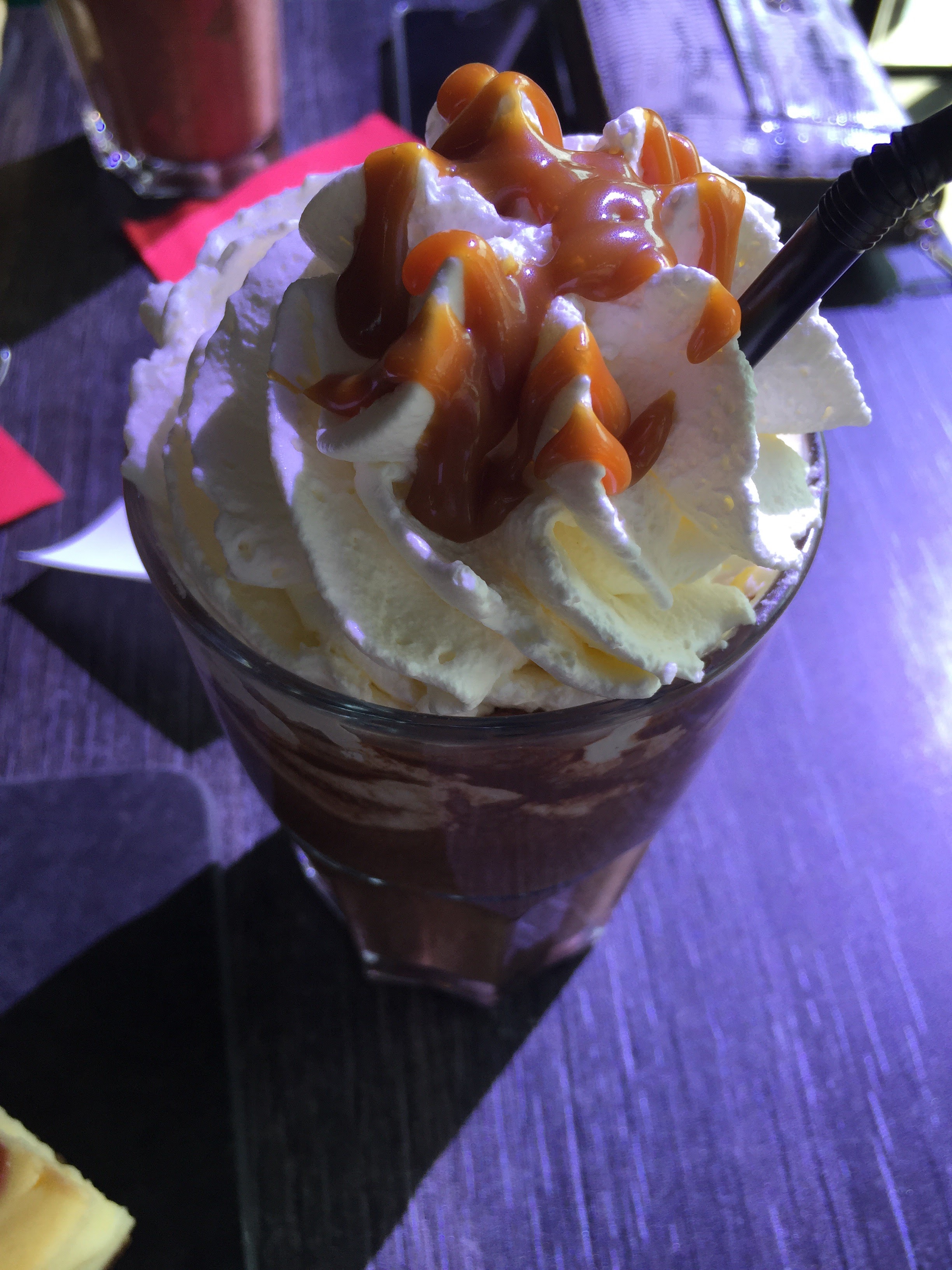 Sympa comme endroit 😉👍Crêpe au caramel beurre salé accompagné de glace à la vanille et crème chantilly 😍et un verre de limonade à la poire