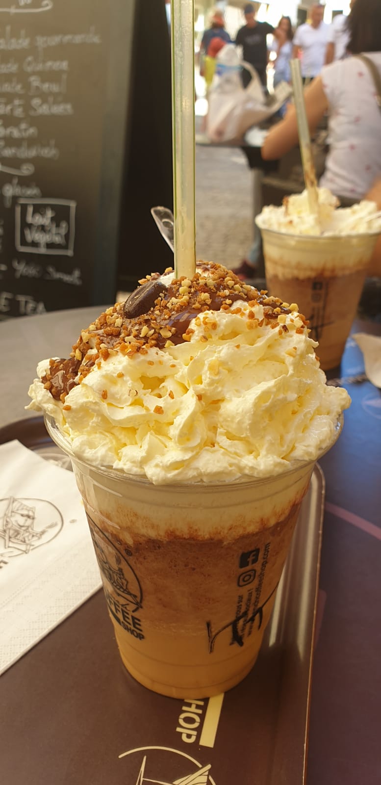 Thé glacé et café frappés délicieux... hélas dans des gobelets plastique. Décor intérieur très sympa, terrasse aussi + plaisir de confortables fauteuils.