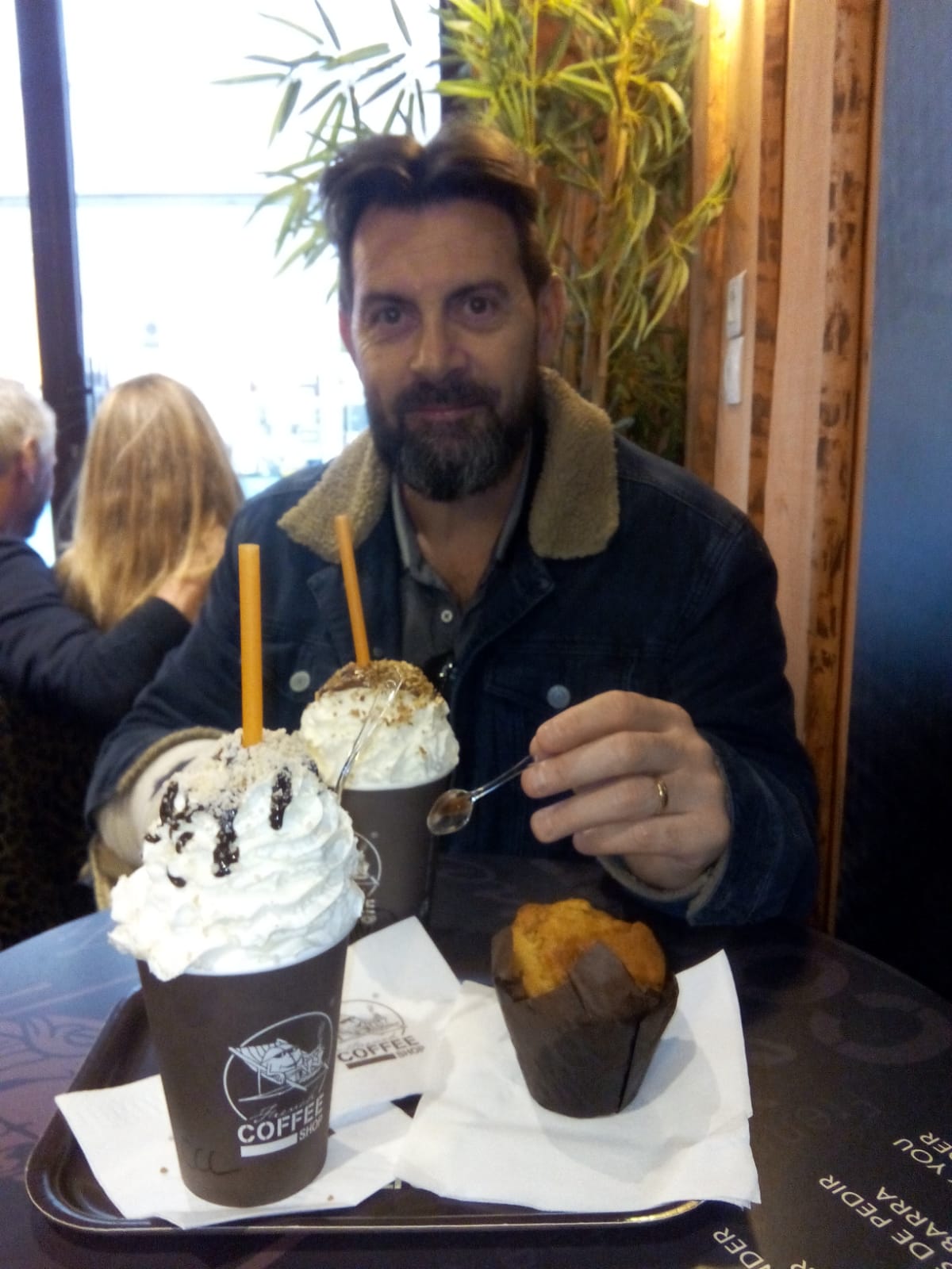 Café agréable avec un grand choix de boissons et de muffins, part de tartes etc. L’ambiance est cocooning avec des fauteuils confortables, du bois aux murs. Je déplore toutefois que tout soit jetable : pailles (qui ne sont pas nécessaires pour boire un chocolat chaud ou un café), cuillères en plastique, gobelets en carton. Ce n’est pas écologique et ne cadre pas avec le reste de l’ambiance.