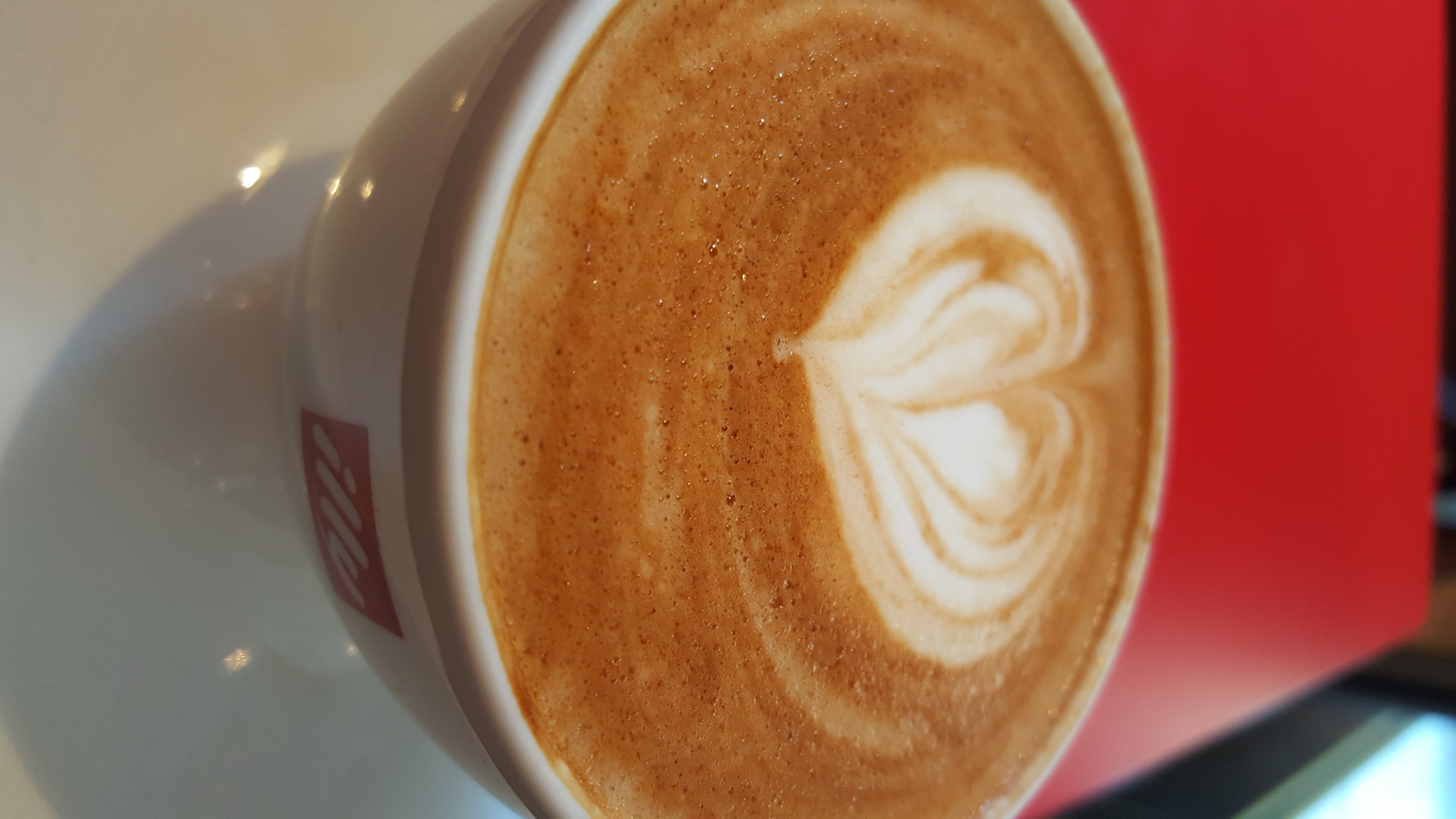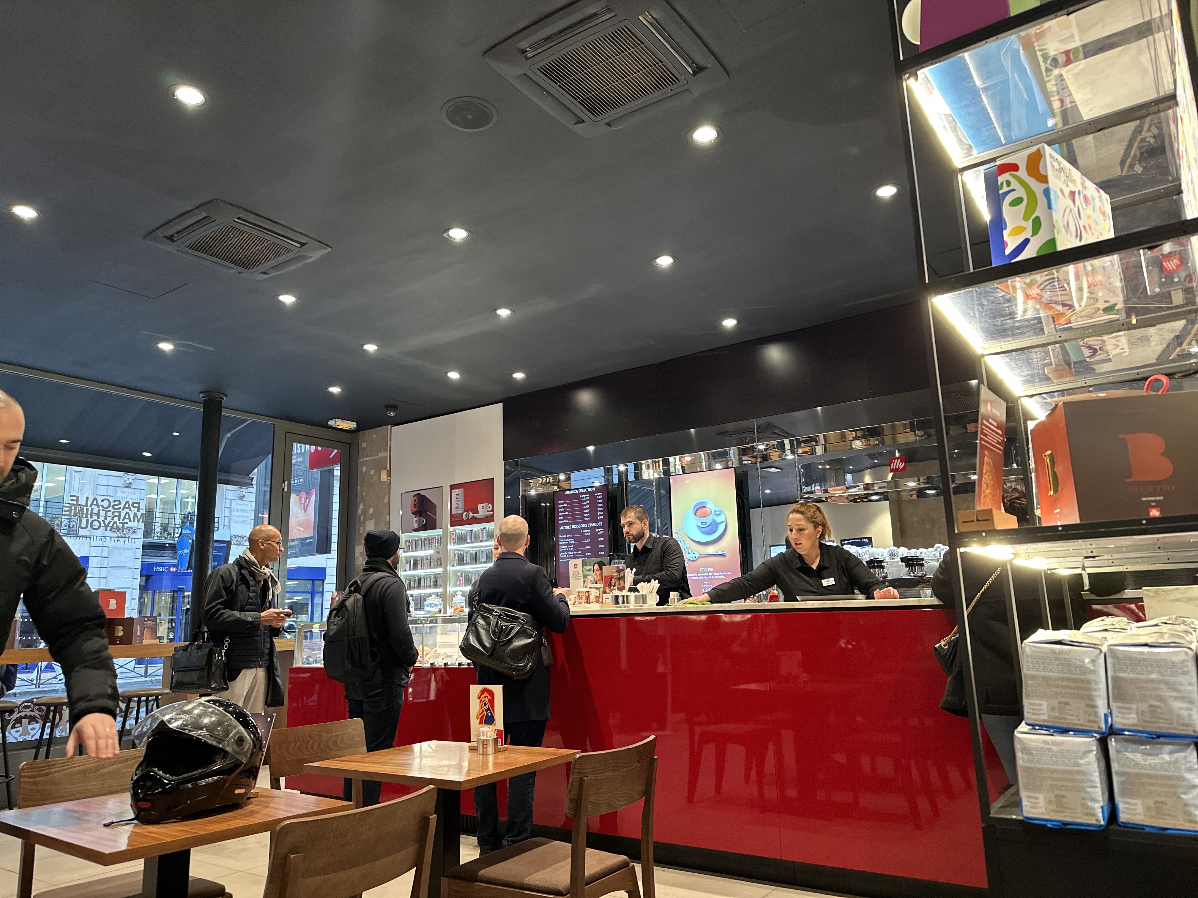 Café sympa, où le personnel est italien, très typique 😊. La déco est plutôt originale, globalement assez rouge, illy oblige. Le café est très bon. J'ai apprécié la disposition des tables, faite de sorte qu'on ne se dérange pas mutuellement et que l'on peut discuter en privé.