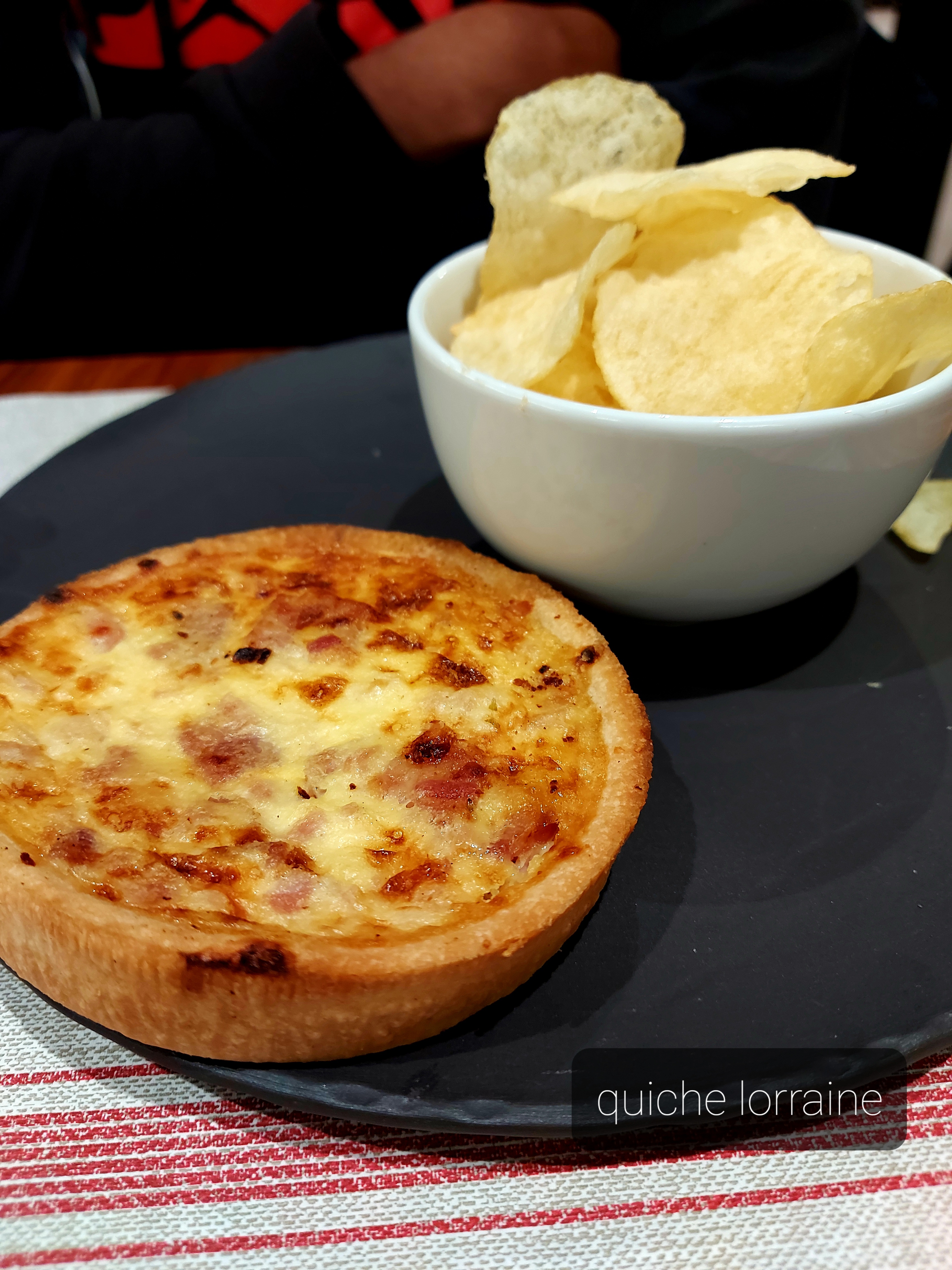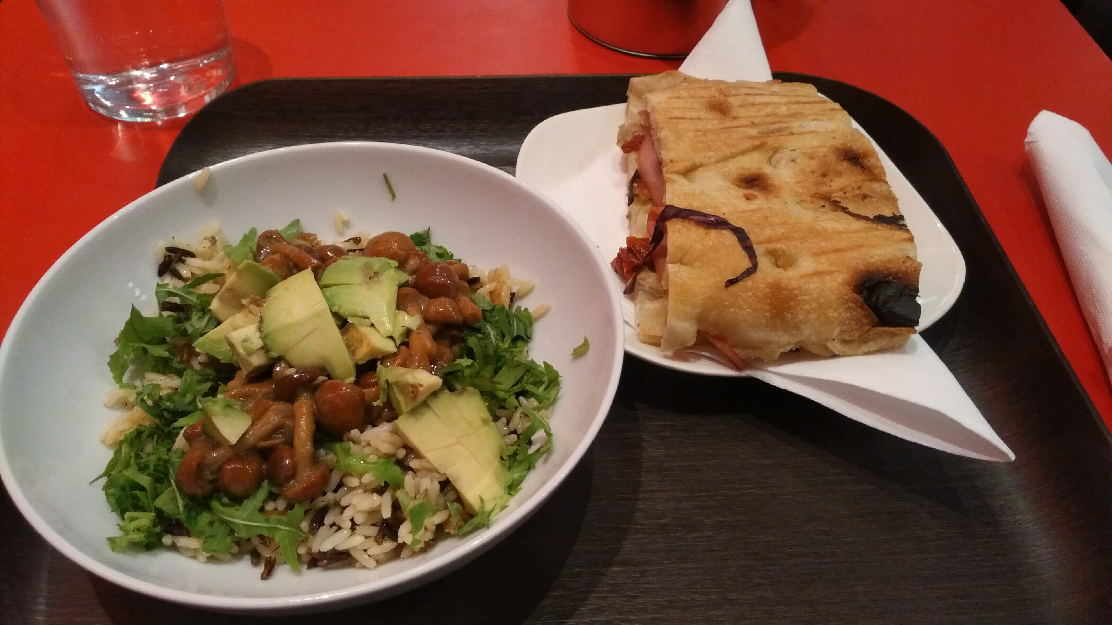 Très bonne salade aux girolles et riz noir ainsi que délicieuse focaccia a la mortadelle. Point négatif : impossible d'avoir un café a la place de la boisson froide dans le menu...