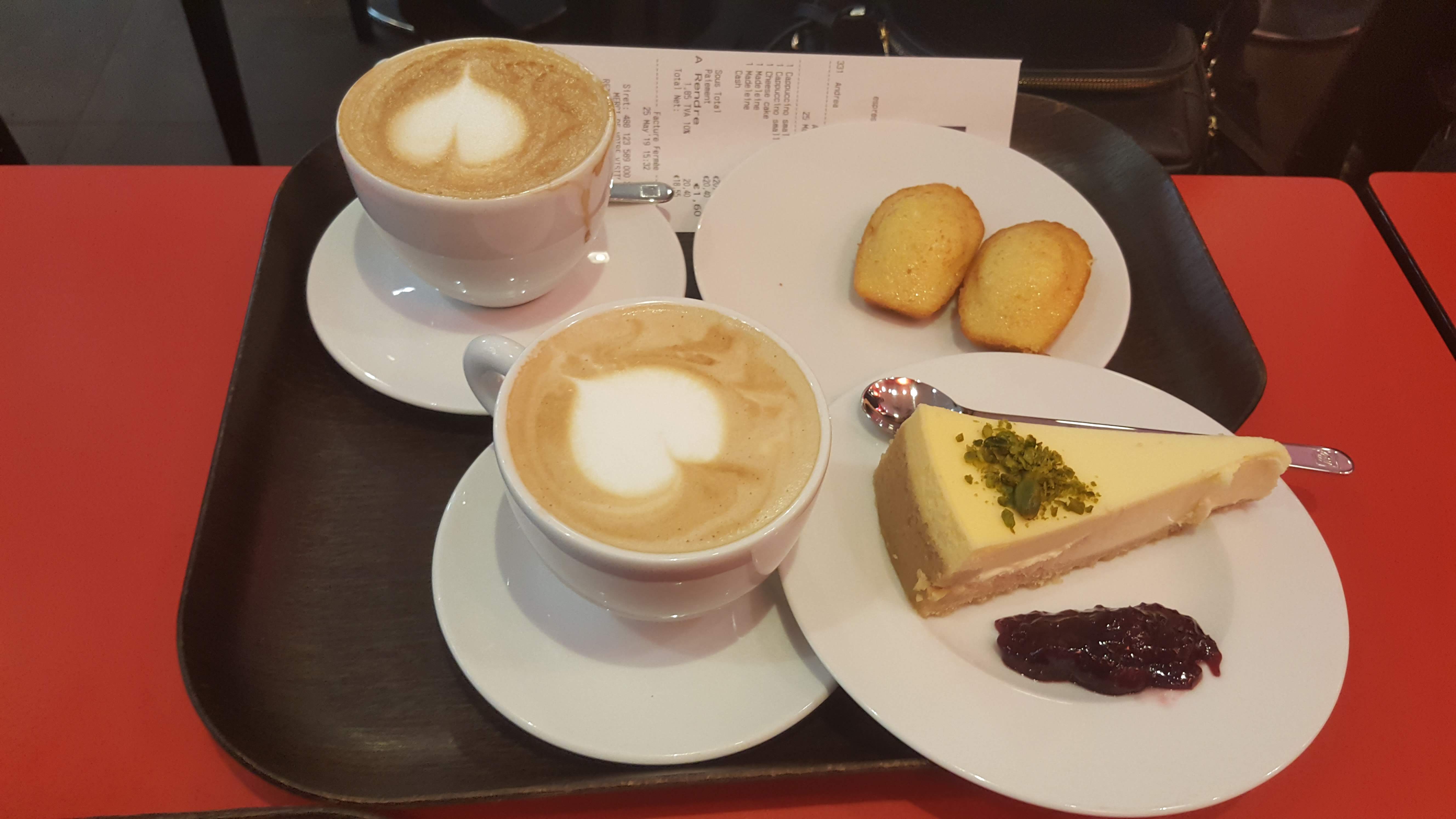 J'ai commandé un cappuccino à la crème fouettée, mais après avoir mangé du cappuccino, j'ai à peine eu ça... . C'était à peu près deux gorgées haha Le verre est petit, je ne m'attendais pas à un gros à Paris, mais c'est un peu bête, mais je suis déçu.. Le serveur est gentil mais trop occupé J'ai apporté le verre d'eau de quelqu'un d'autre et j'ai demandé qu'il soit changé car il y avait des traces de rouge à lèvres dessus. Je ne pense pas y aller à moins que ce soit à emporter.