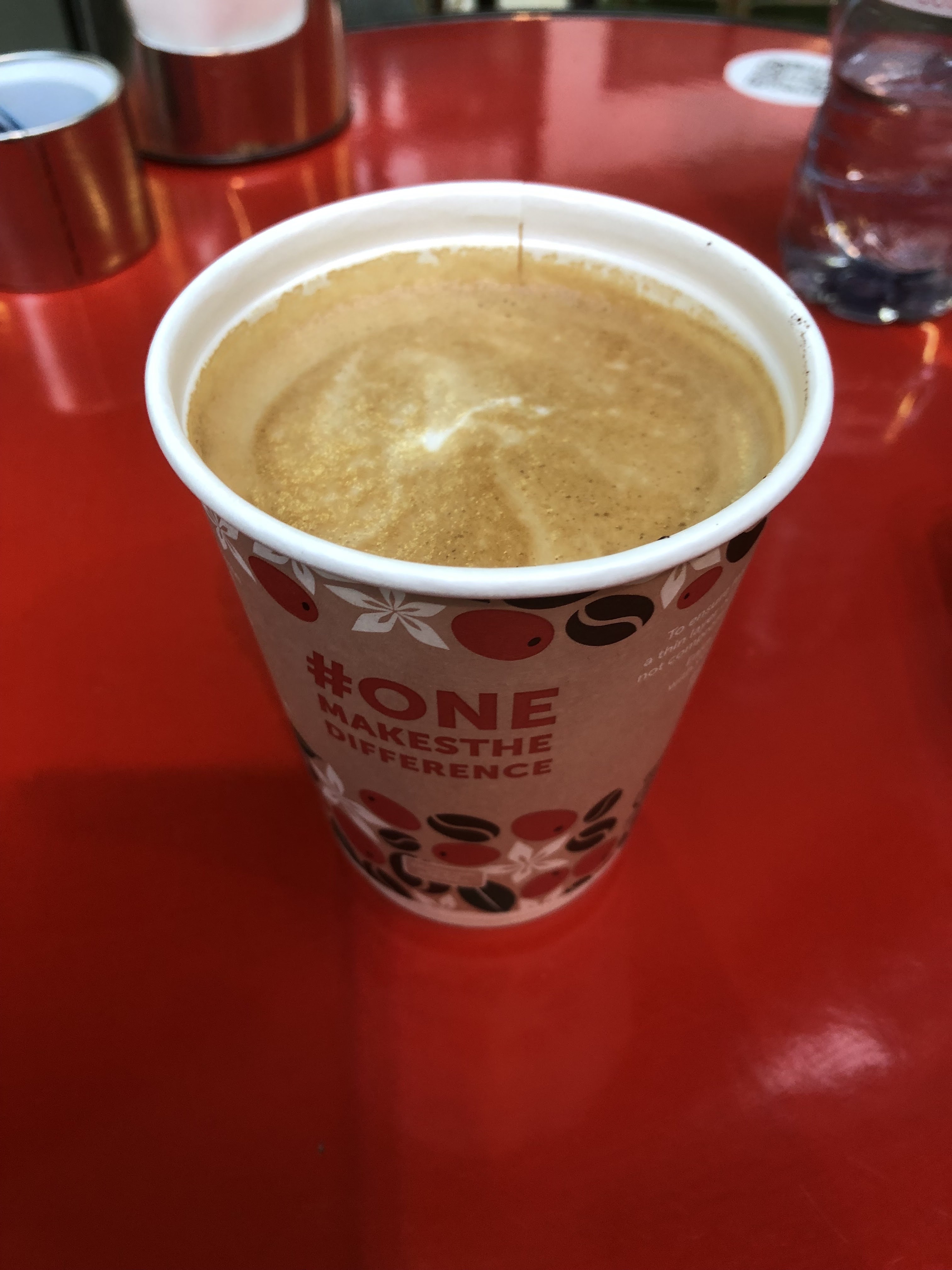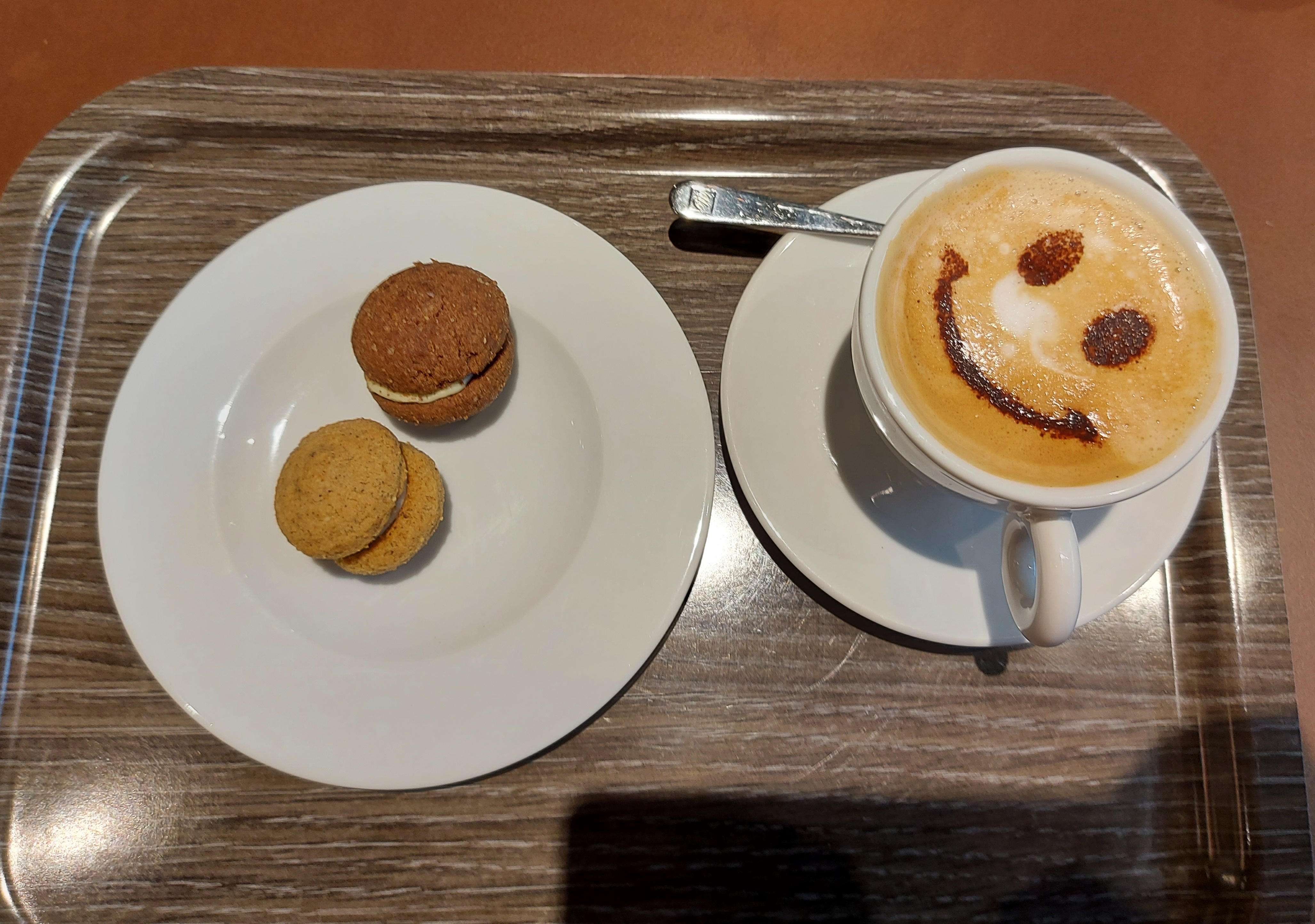 Très bon cafés, plusieurs variétés latte espresso… niveau prix c’est correcte. Possibilité de consommer en terrasse. Temps d’attente convenable.