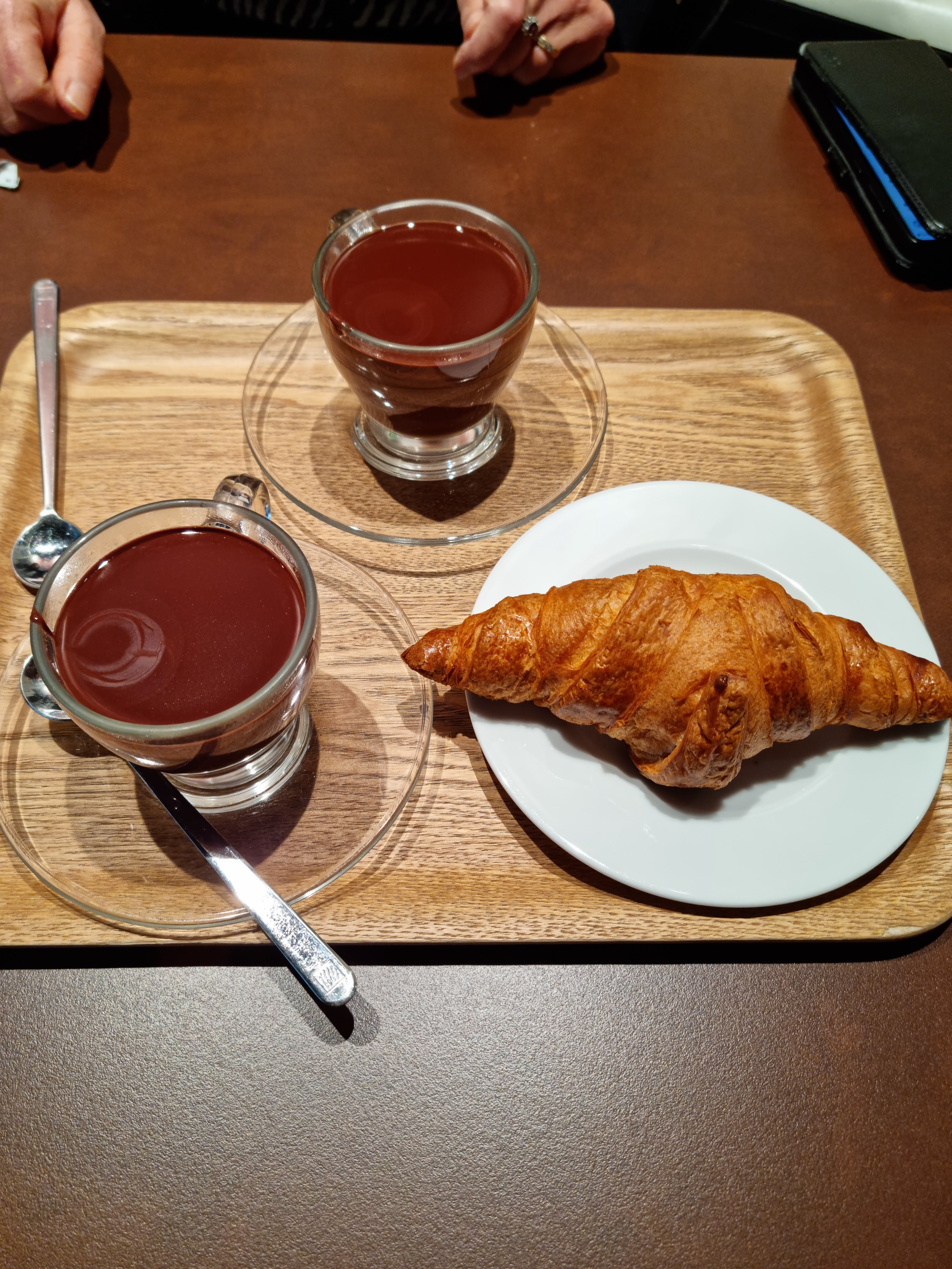 Nous avons pris un chocolat chaud à l'ancienne. Très crémeux, très épais, très chocolat et pas trop sucré. Excellent.