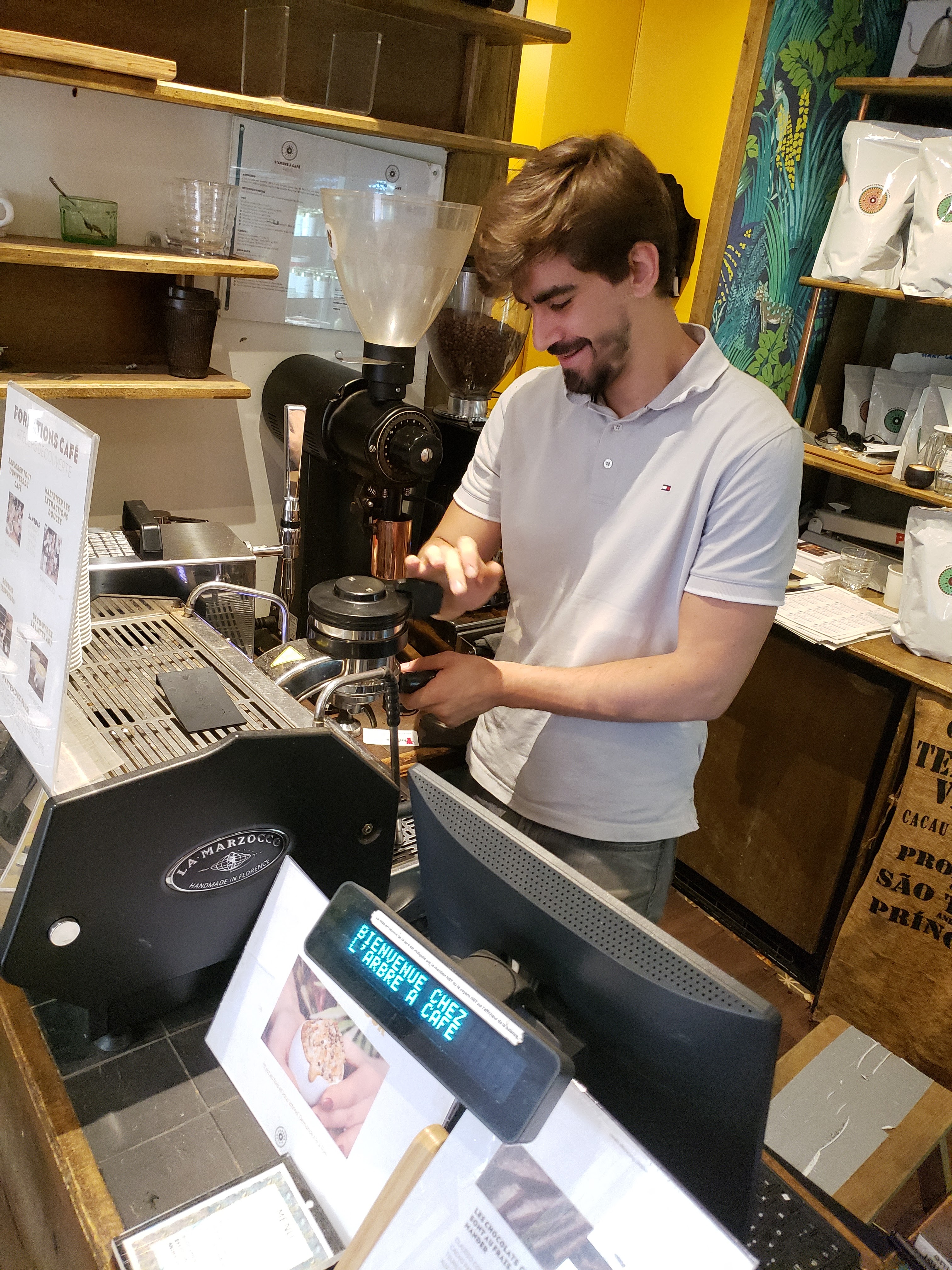 Propriétaire très compétent et passionné. Grand choix de très bons grains de café. De loin le meilleur de Paris, je ne trouve aucun café au Royaume-Uni offrant un meilleur café en grain que L’Arbre.