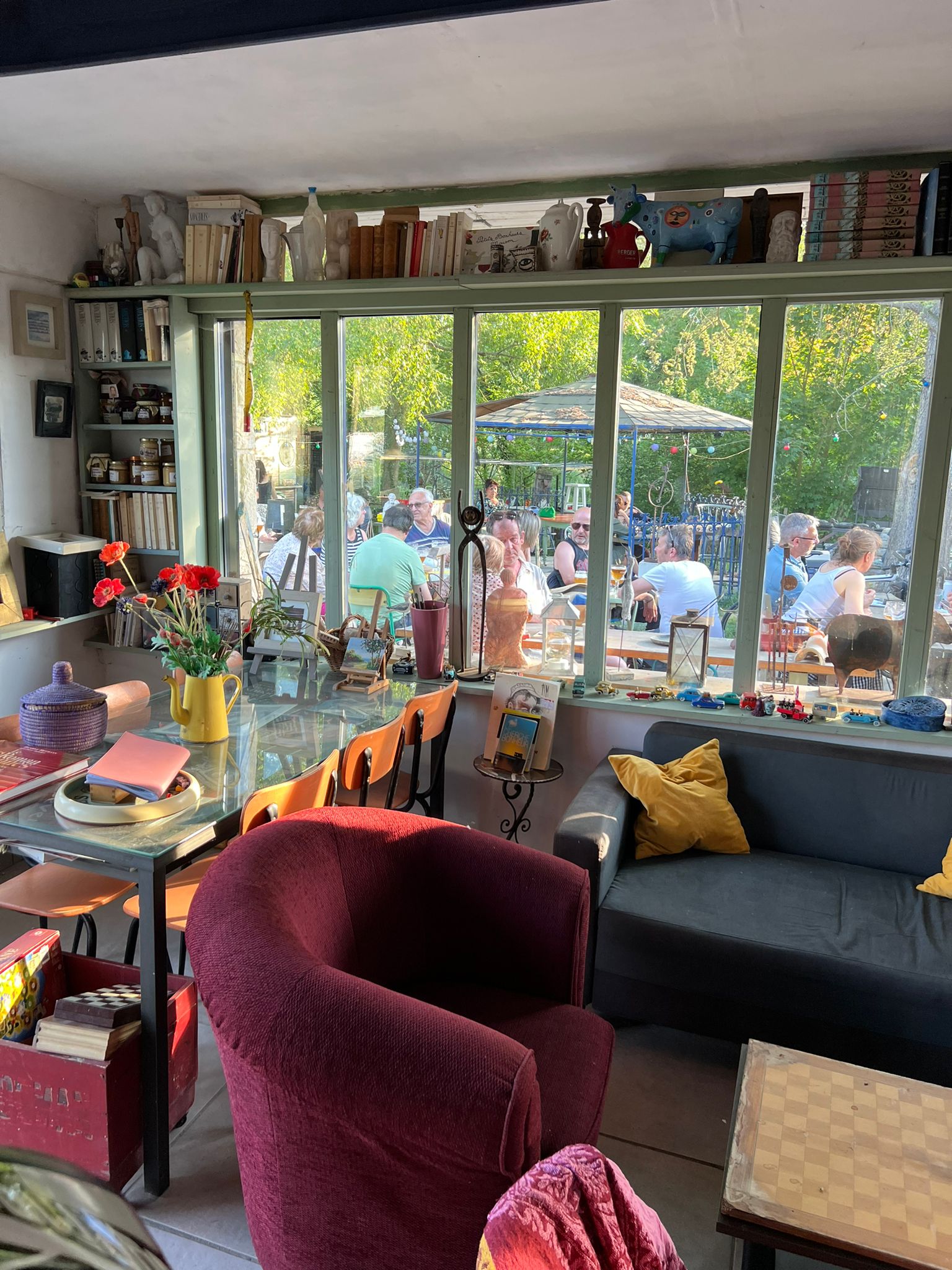 Un lieu bien sympathique que ce soit aux beaux jours (un jardin bucolique très agréable) ou à l'automne (une salle digne d'une brocante) Un programme culturel varié, des en-cas gourmands et un maître des lieux passionné qui donnent envie de revenir.