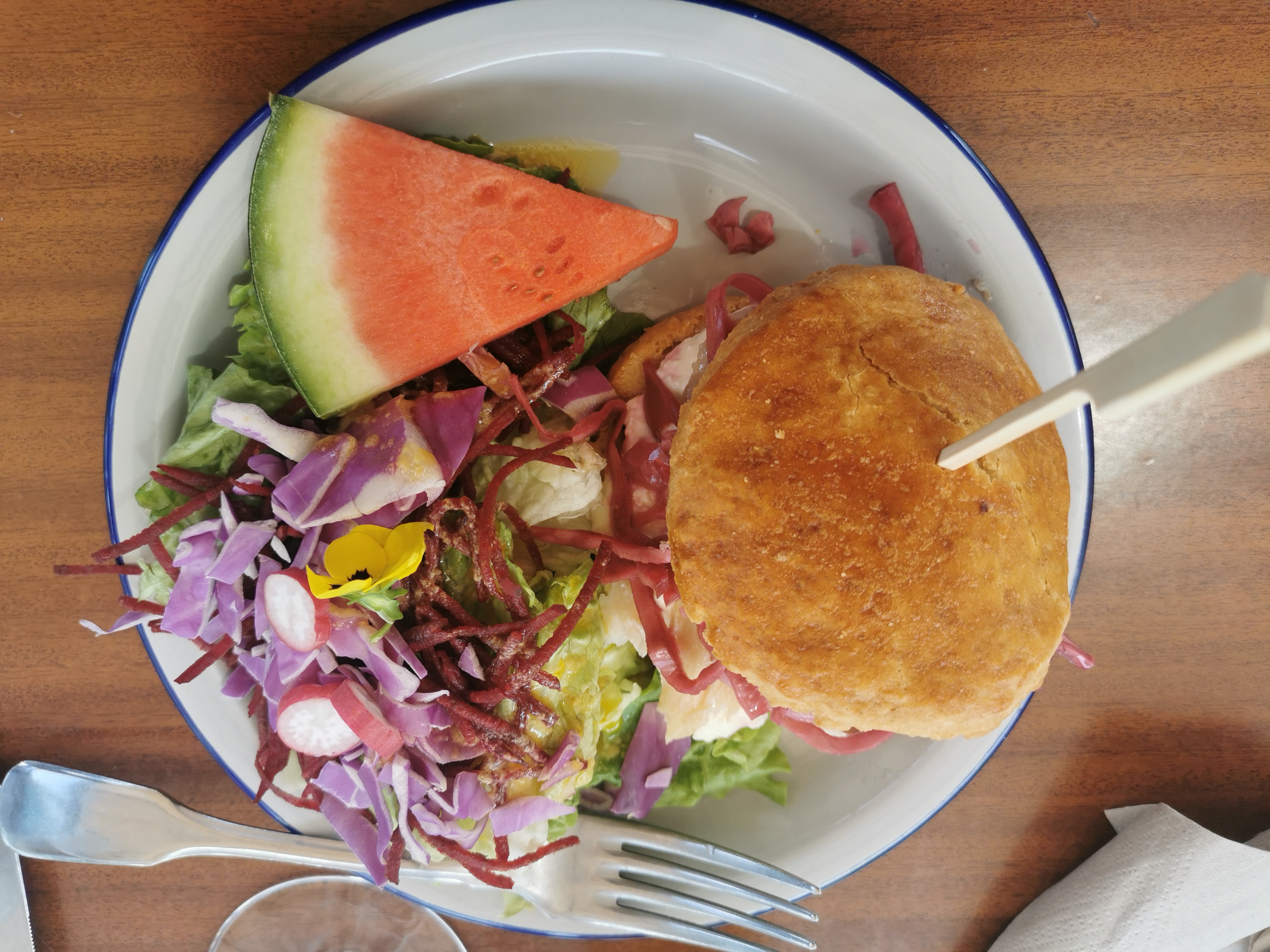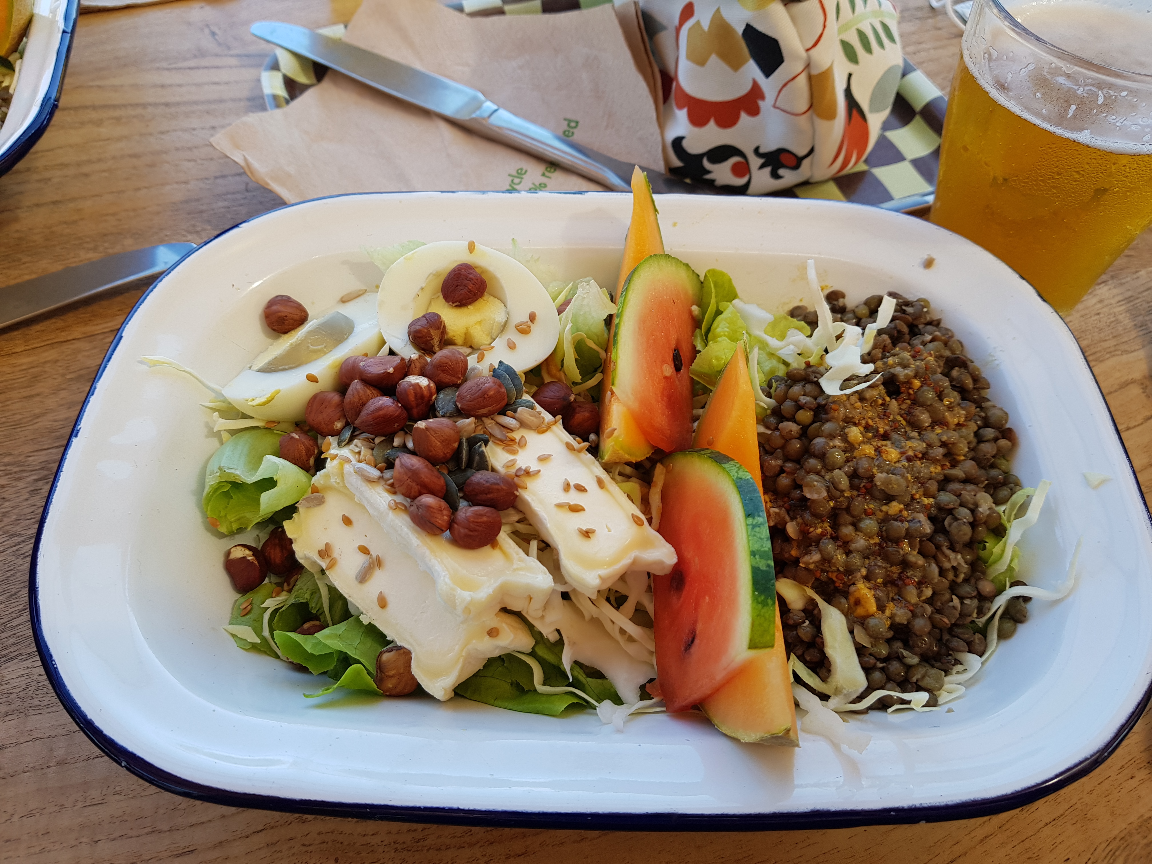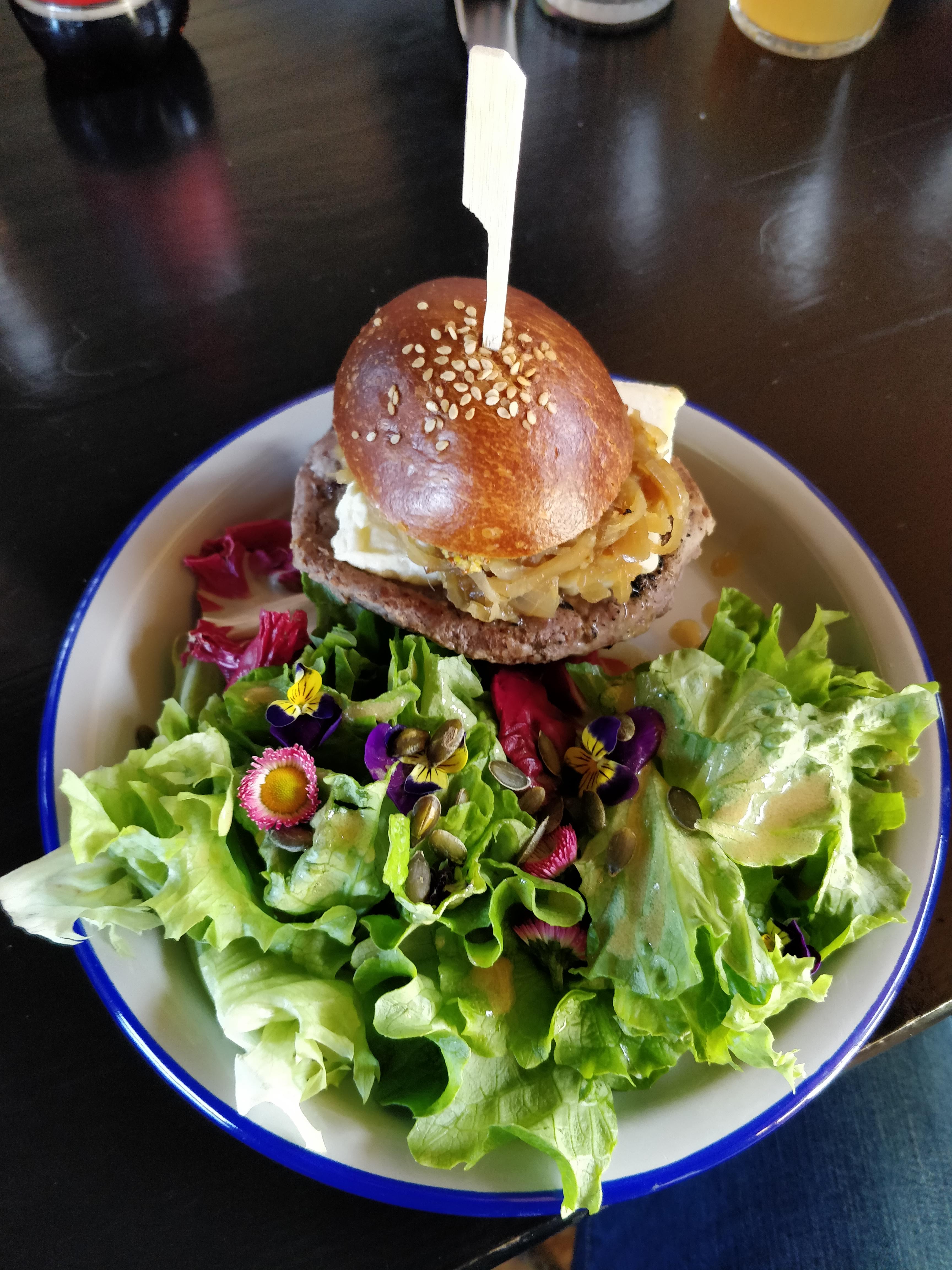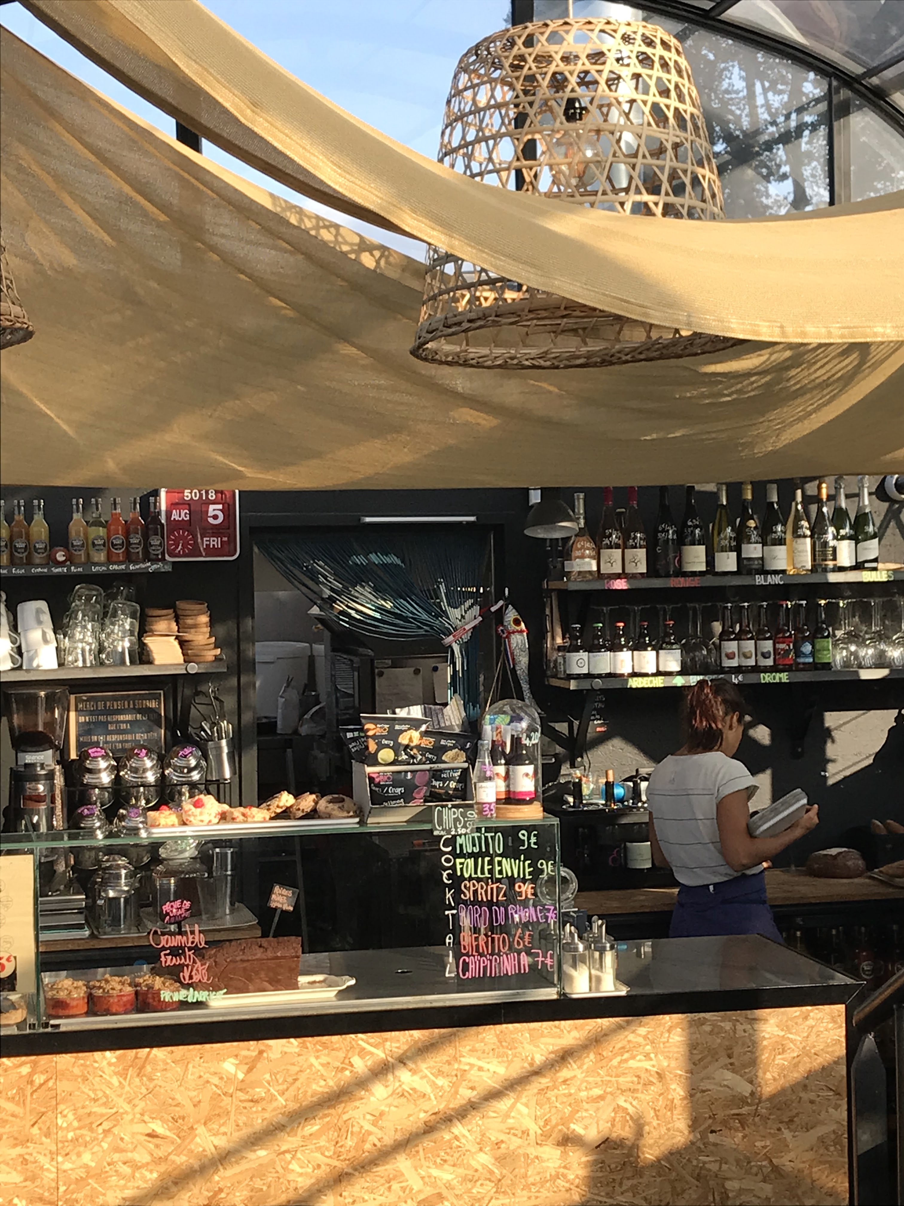 Si vous recherchez un lieu atypique vous y êtes. C est joliment amennage. Accueil et communication inexistante. Levez vous et allez commander au comptoir vous ne perdrez pas de temps. Pour les boissons sachez qu un Monaco ne sera pas rouge car ils utilisent un sirop sans colorant ( ce qui est parfait faut il que on vous l explique aimablement) Pas de pichet de rosé, ça m a coûté 5€ le verre alors que la table d à côté a eu un pichet de blanc : J'aurai aimé le savoir j' aurai eu le choix.... Les produits sont frais mais la préparation n a rien d exceptionnelle. Le pain est arrivé bien après nos plats, froid car mal décongelé. La salle végétarienne est composée de beaucoup beaucoup de salade verte. Le gratin un mélange fade de ravioles, courgettes et viande. Pour moi c est un attrape touriste😔