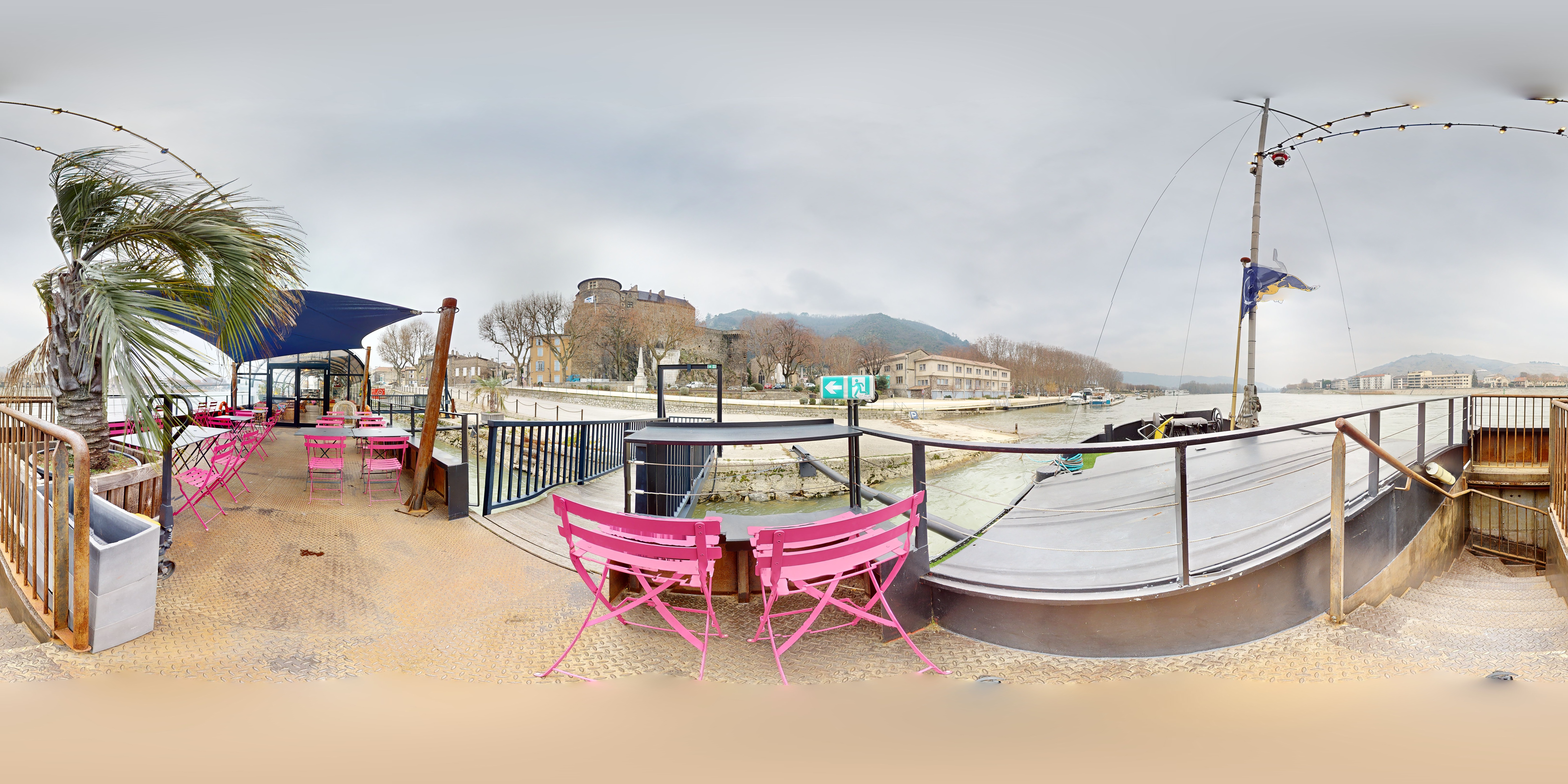 Je déconseille, nous sommes allés boire un verre sur cette péniche, attirés par le cadre surtout car c'est tout ce que cet endroit apporte. A notre arrivée, j'étais plutôt étonnée du nombre de personnes présents pour le cadre mais après j'ai vite compris pourquoi. La politesse et le peu de considération des deux serveuses et du serveur envers le peu de clients présents sont représentatifs des avis Google que je viens de consulter. Obligé de répéter deux fois un bonjour pour obtenir une réponse, lorsqu'on s'assoie sur place personne ne se préoccupe de quoique ce soit , obligé de demander trois fois pour obtenir une commande, boissons servies de façon limite avec l'impression de déranger la jeune serveuse , limonade chaude ..bref ce n'est pas au point du tout. Serveuses qui se permettent de fumer à 1m de vous , inacceptable, attrape touriste même pour les Valentinois. La politesse c'est la base avec un bonjour si c'est pas trop demandé un sourire pour accueillir du public et un au-revoir sinon il faut aller travailler ailleurs pas en service ! Établissement obligé de recruter des saisonniers incompétents pour palier au manque personnel mais autant fermer l'endroit pour recruter des personnes pareil. En espérant que le vrai responsable prenne connaissance de tous les dysfonctionnements et si c'est autant pris avec désinvolture que l'équipe à bord , bah fermer l'établissement si vous n'aimez pas servir les gens ni bosser !