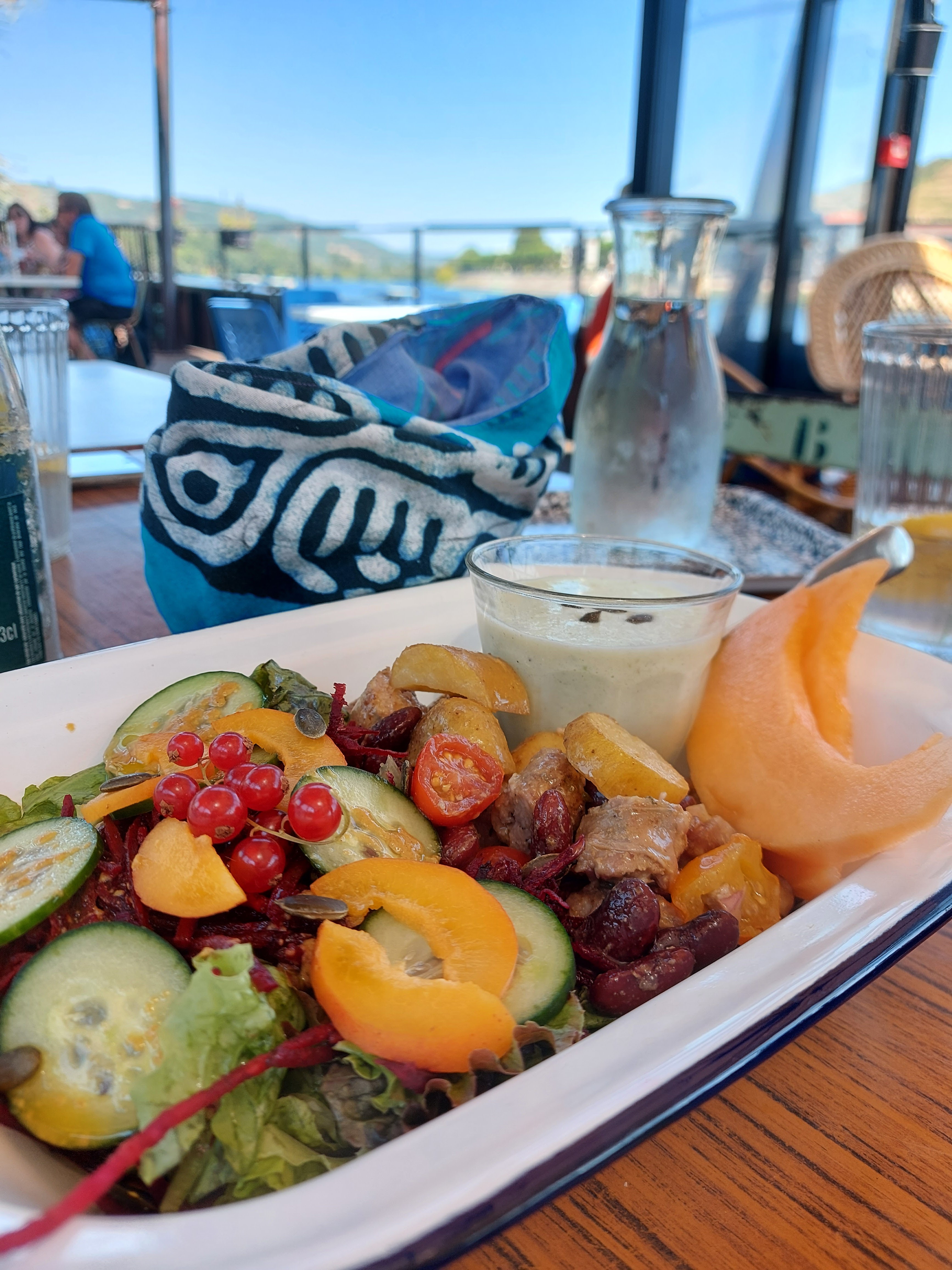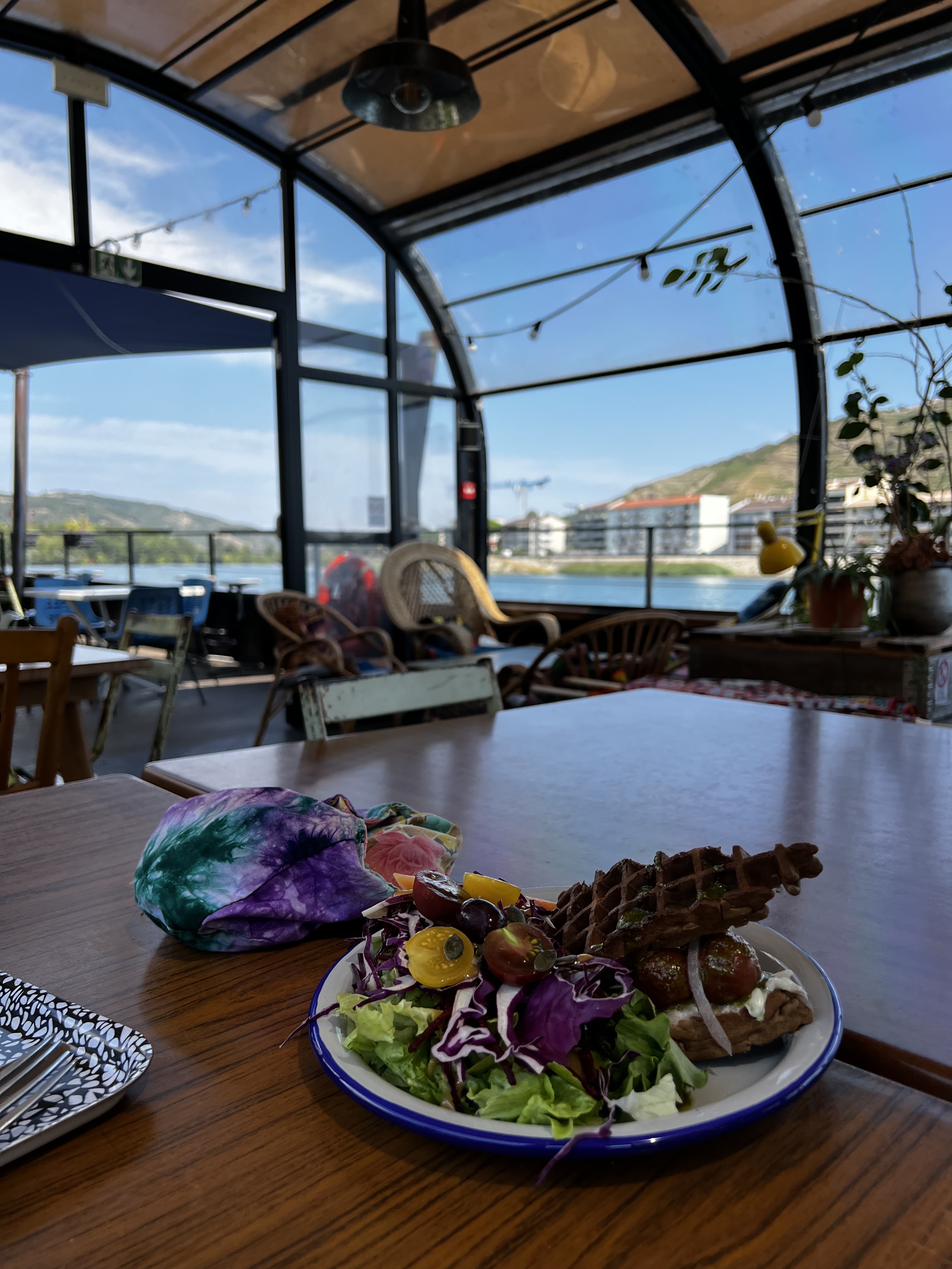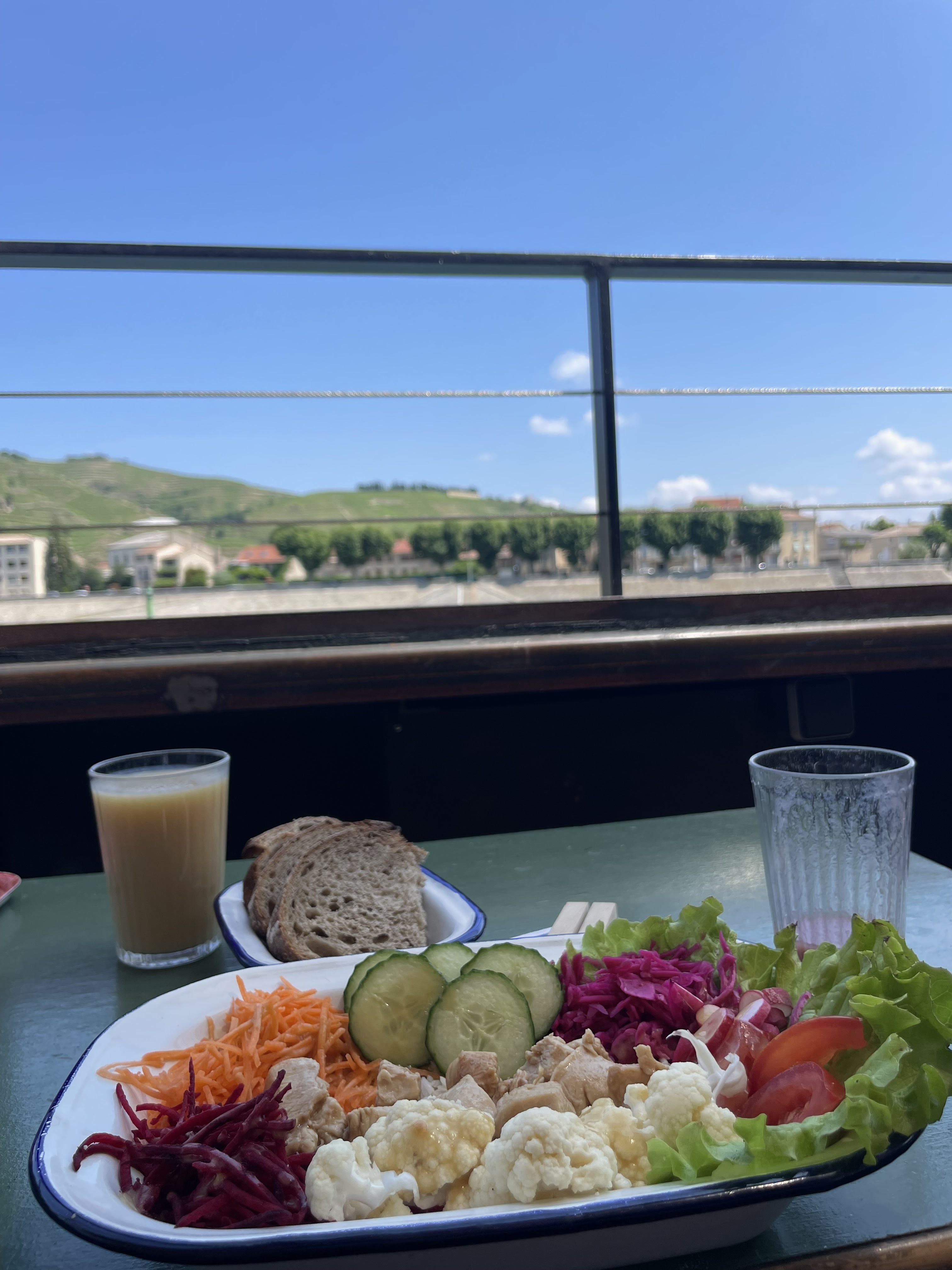 Le lieu est sympa, une péniche sur le Rhône à la déco decalle. La nourriture est fraîche et bio. Après il y a pas de choix, les quantités dans les assiettes sont petites ( je ne suis pas une grosse mangeuse), et rien d exceptionnel. J ai trouvé les assiettes chère pour ce qui avait à manger. Après je pense que c est plus pour boire un thé que pour manger un midi, surtout si vous avez des enfants.