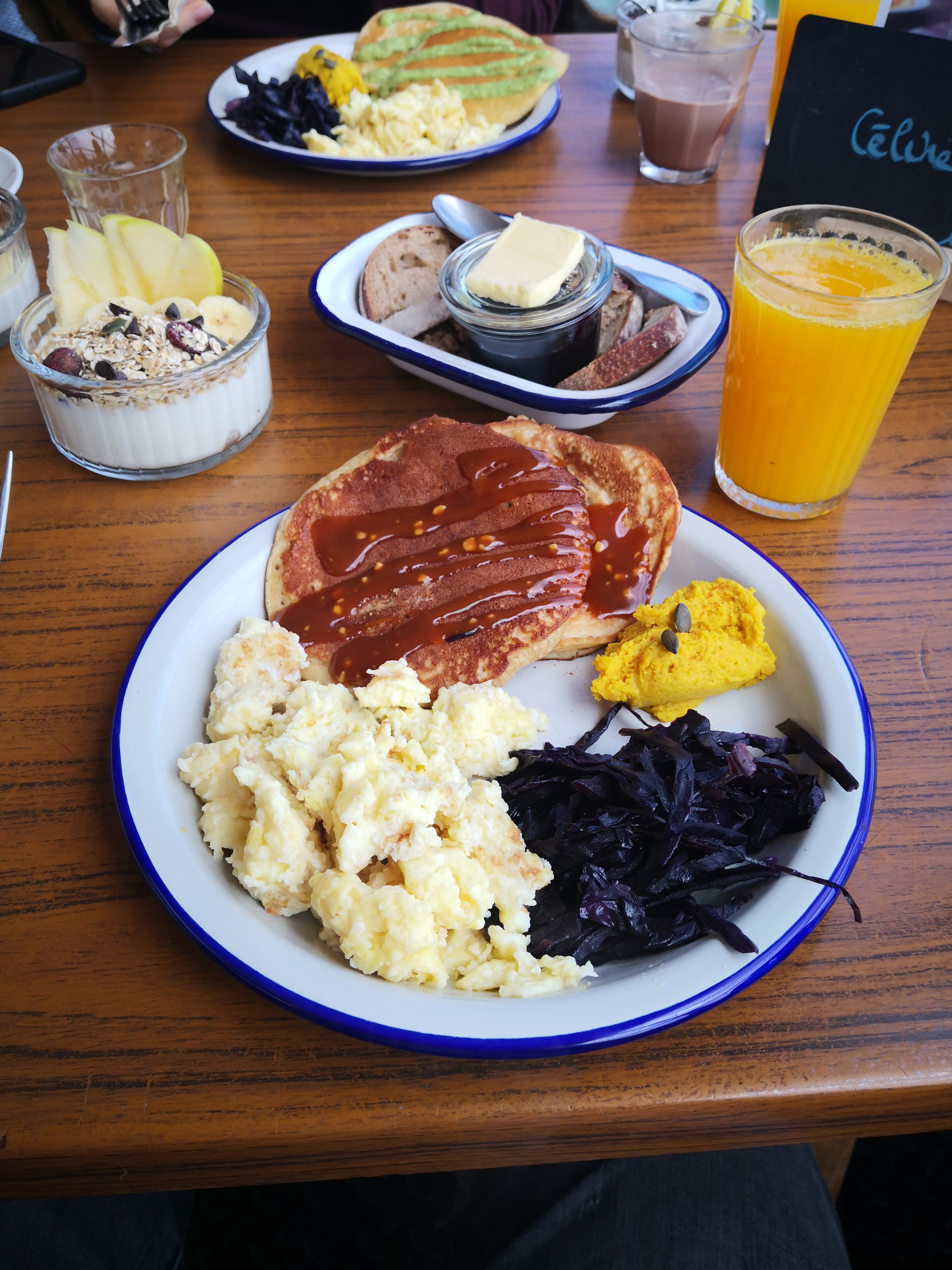 Très déçue du brunch... Accueil non chaleureux, service pas au rdv, quantité pas au rdv et qualité moyen : Fromage blanc granola = un pot acheté de fromage blanc donné tel quel, avec un verre à shooter rempli de granola soit 3 pauvres cuillères a café de granole. Vous auriez pu au moins servir cela dans un bol... Confiture un seul choix, et le beurre posé tel quel sur le pot à confiture sans papier rien (bof bof l hygiene sur ca d'ailleurs quand on y pense) Pas d'assiette, tout dans le même plateau pour 2 personnes (très pratique), une tartine de pain Devoir se lever pour demander de l'eau donc vraiment 0 service La galette vegan riz champignons poivrons = riz pâteux, 3 champignons et je cherche encore le goût des poivrons Pancakes mi-cuit La salade était bonne 🙃 ca reste de la salade 👌 Et on débarrasse comme à la cantine 😂 en faisant bien le tri correctement Franchement ce n'est pas la définition d'un bon brunch. Pour les afficionados de brunch passez votre chemin !