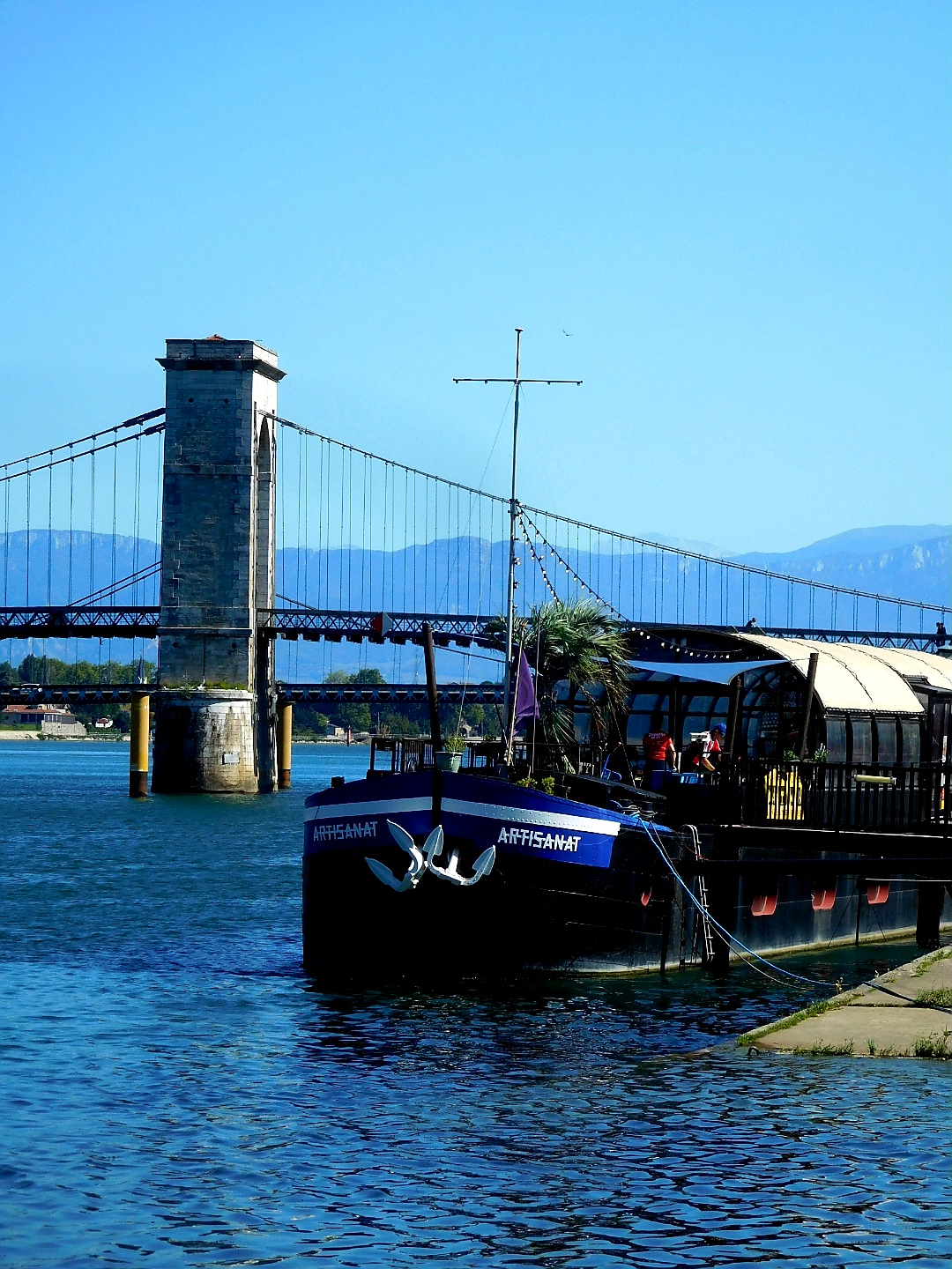 Café très sympathique et cool sur une péniche, quai Farconnet, Tournon. L'ambiance et la déco renouvellent agréablement l'image un peu traditionnelle que l'on peut avoir de l'Ardèche. Très réussi, je conseille pour passer par exemple un agréable dimanche dans cette petite ville bien animée.