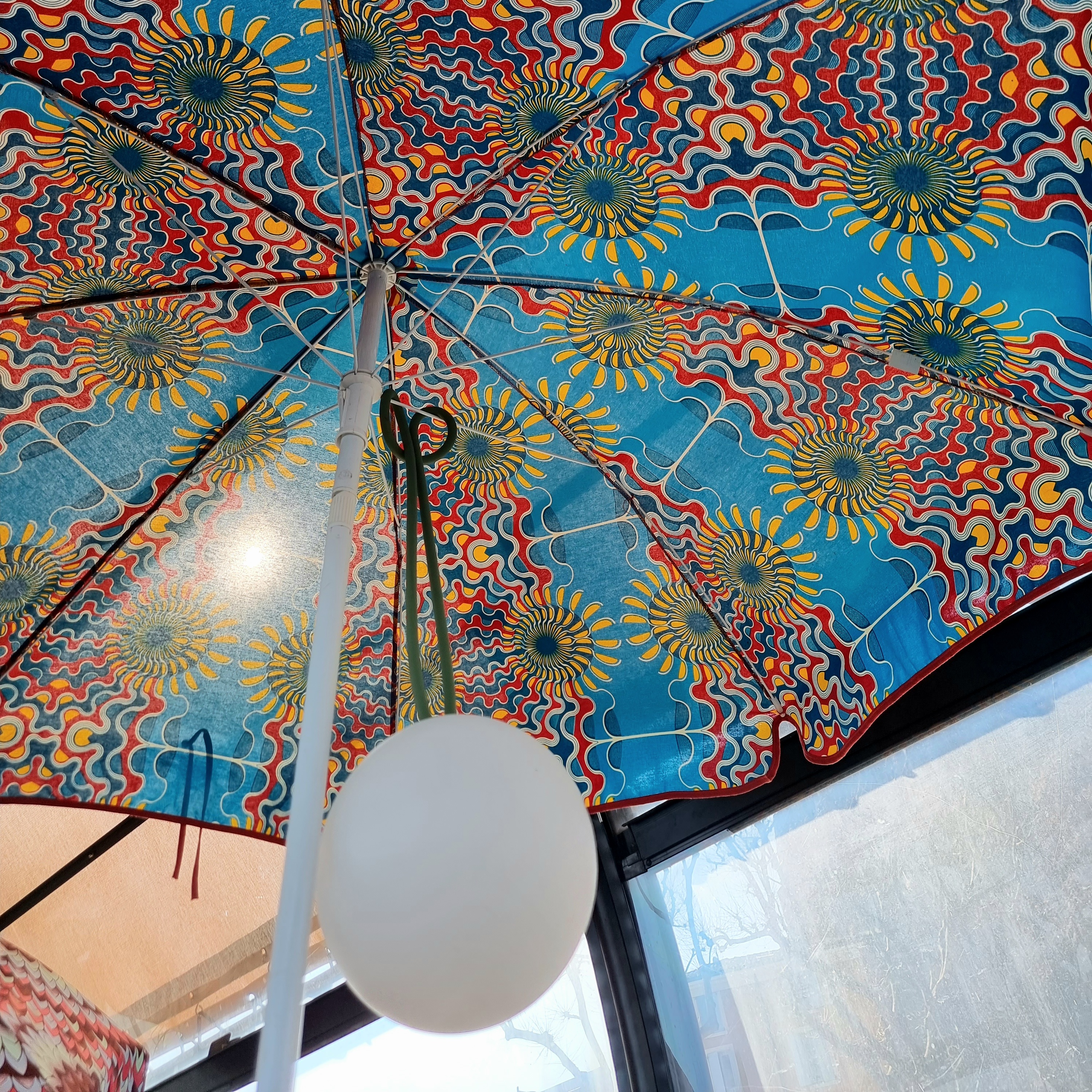 J'ai goûté le bierrito avec une généreuse part de gâteau fraise chocolat. Confortablement installés dans les profondeurs des sièges en osier nous avons regardé la pluie s'abattre et dégouliner bien à l'abri sous la véranda. Le parasol comme.un soleil. Du bonheur !😋
