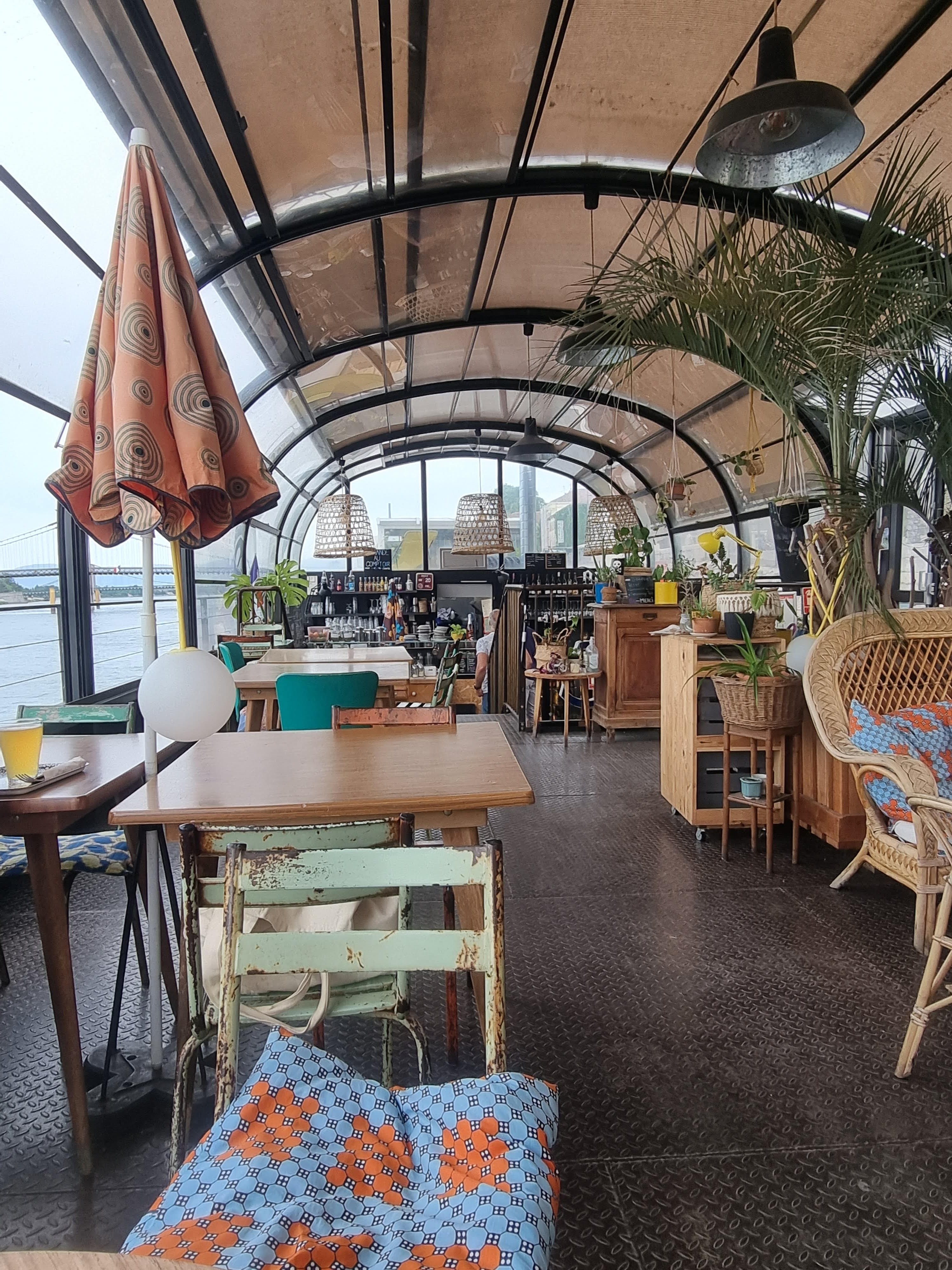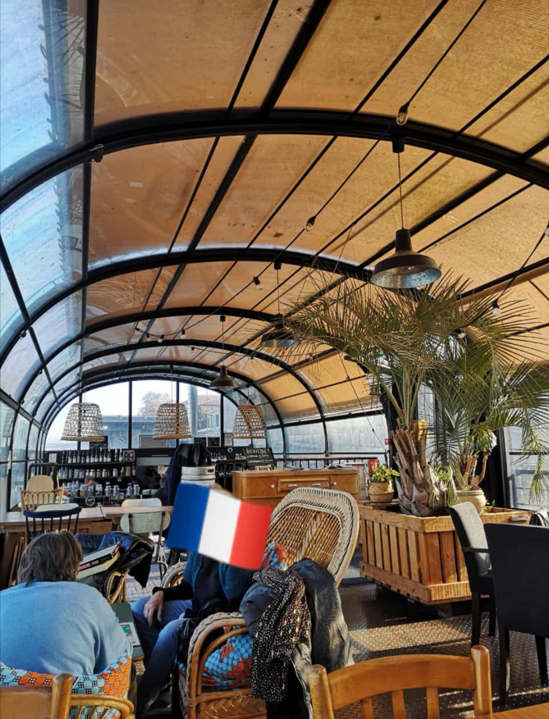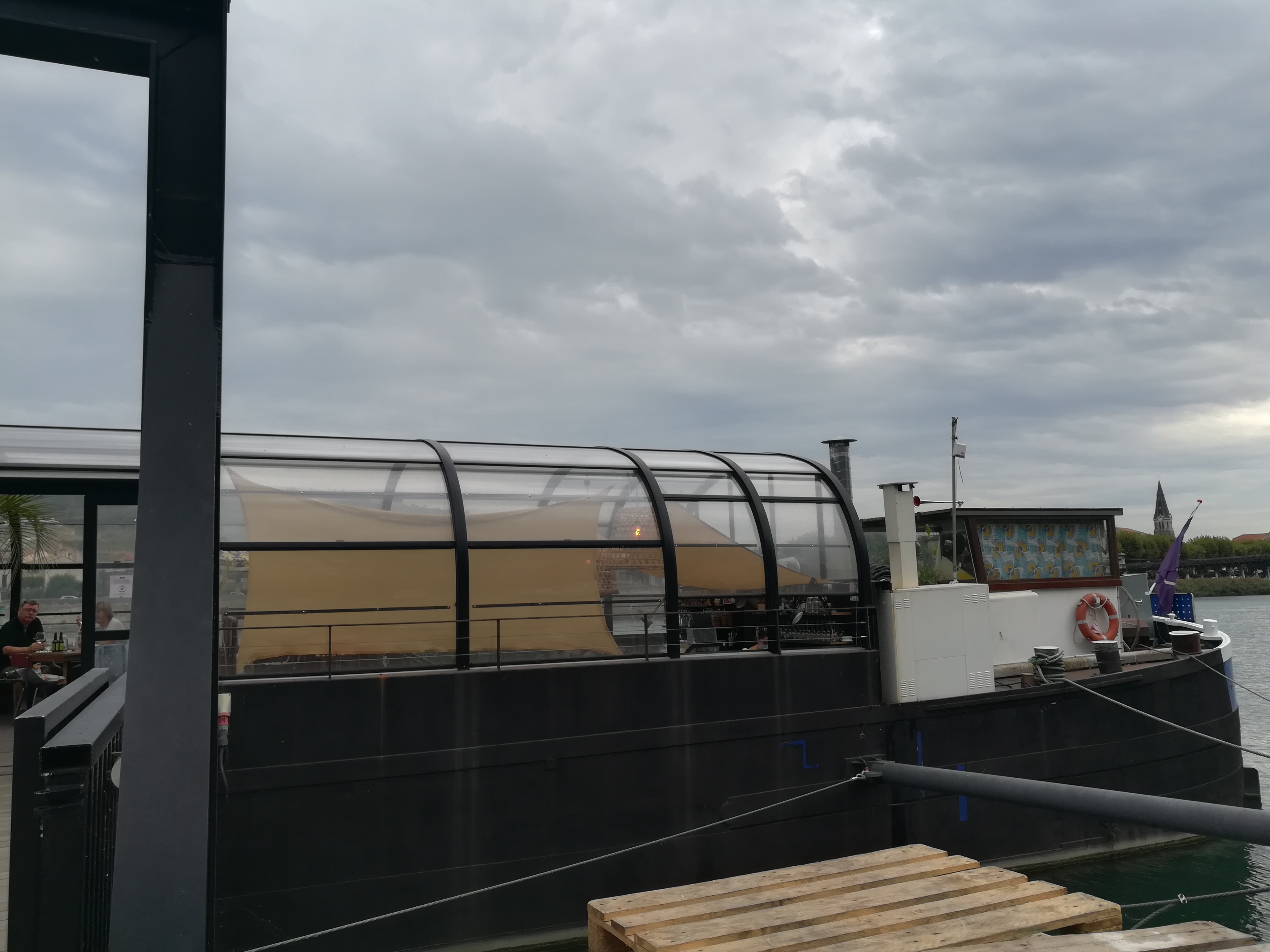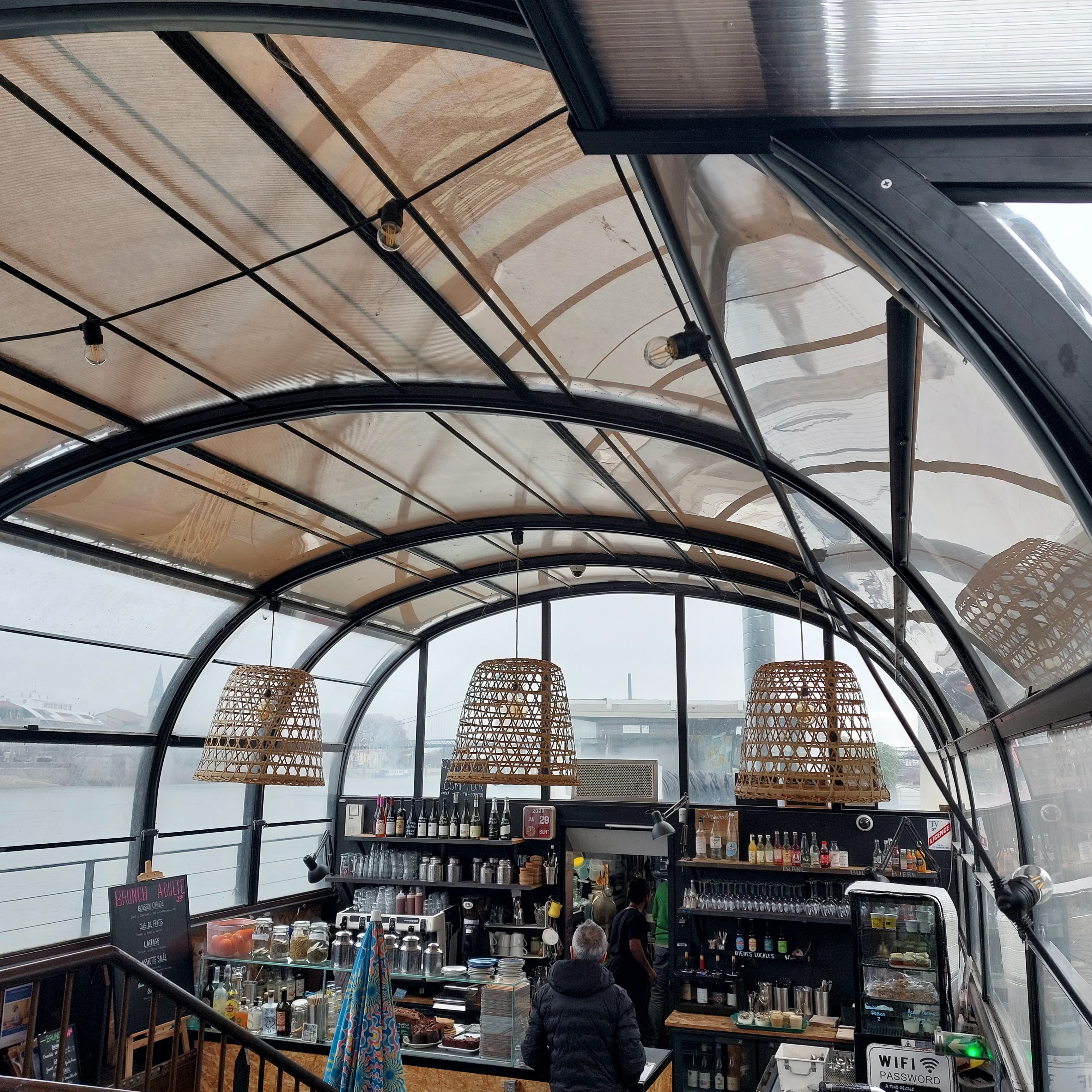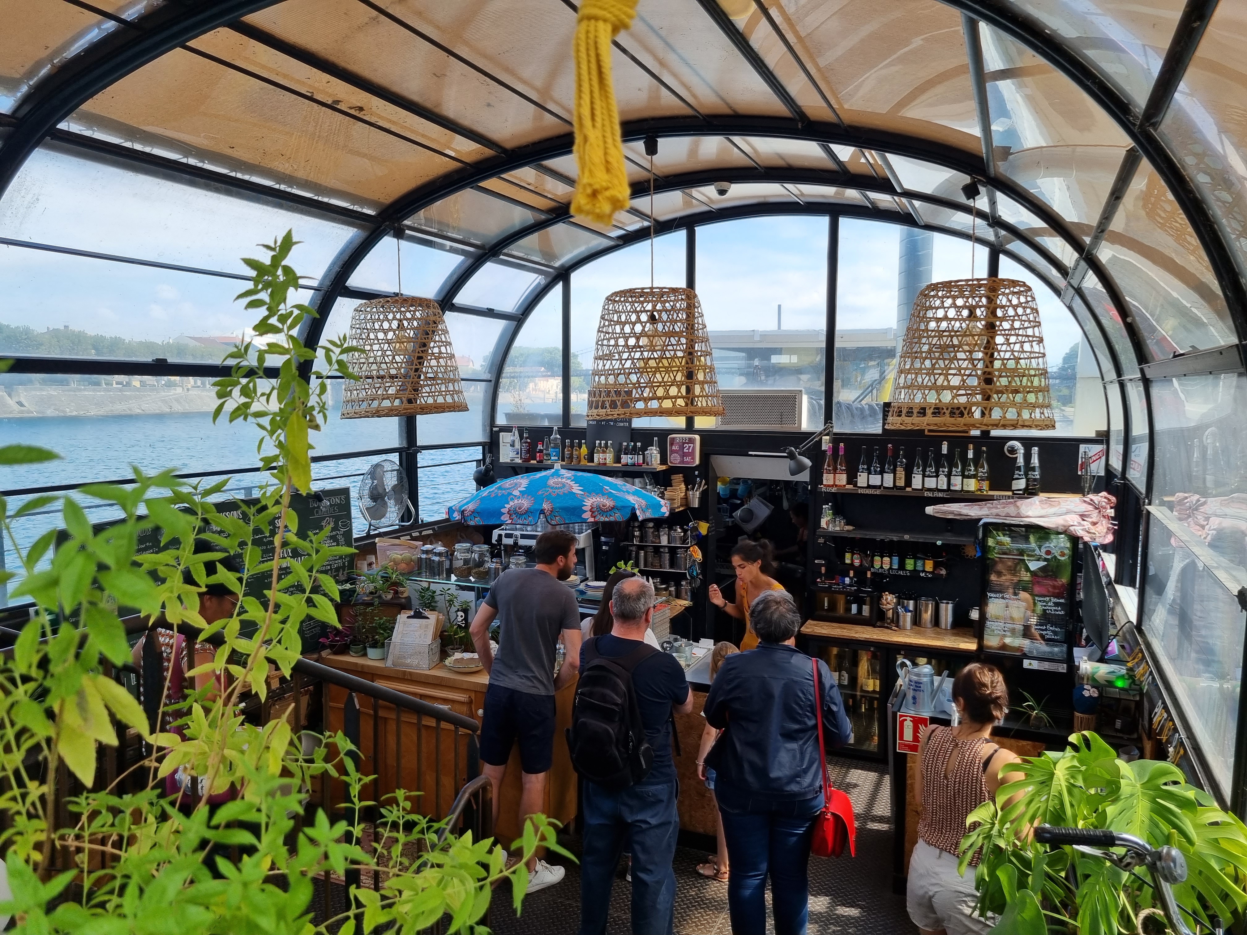 Péniche sur le Rhône, atmosphère cosy très sympa pour se poser le temps d'un café avec des amis. Tarifs un peu élevés pour ce type de prestation (service au bar, rangement participatif) mais l'ambiance générale mérite le détour 😀