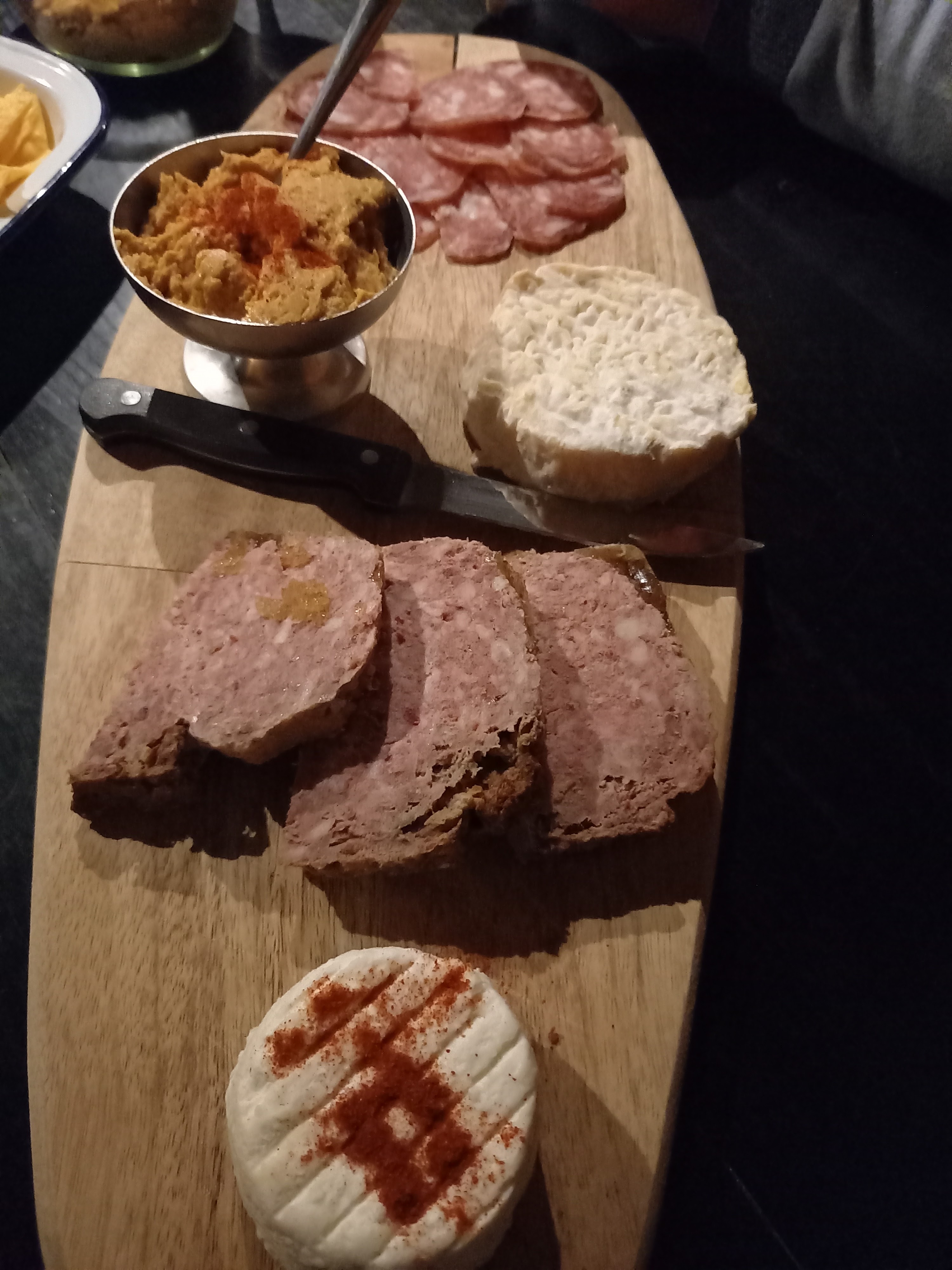 Nous avons ce soir manger un planche de charcuterie et de fromage à 25€ qui en valait honnêtement son prix, on sent la qualités des produits, avec du pains sur le coter pour accompagner tout ça c’est juste parfait, si il y a une petite suggestion assez personnel ce serait de rajouter du beurre ( Je n’ai pas demander mais il est peut être disponible à la demande ) le personnel est très gentil et accueillant, le cadre est également très sympathique, je recommande particulièrement pour les jeunes qui n’ont pas forcément d’endroit pour se retrouver, la cale est parfaite pour se poser tranquillement autour d’un verre, on a tendance à dire quand ça va pas, mais la c’est vraiment top !