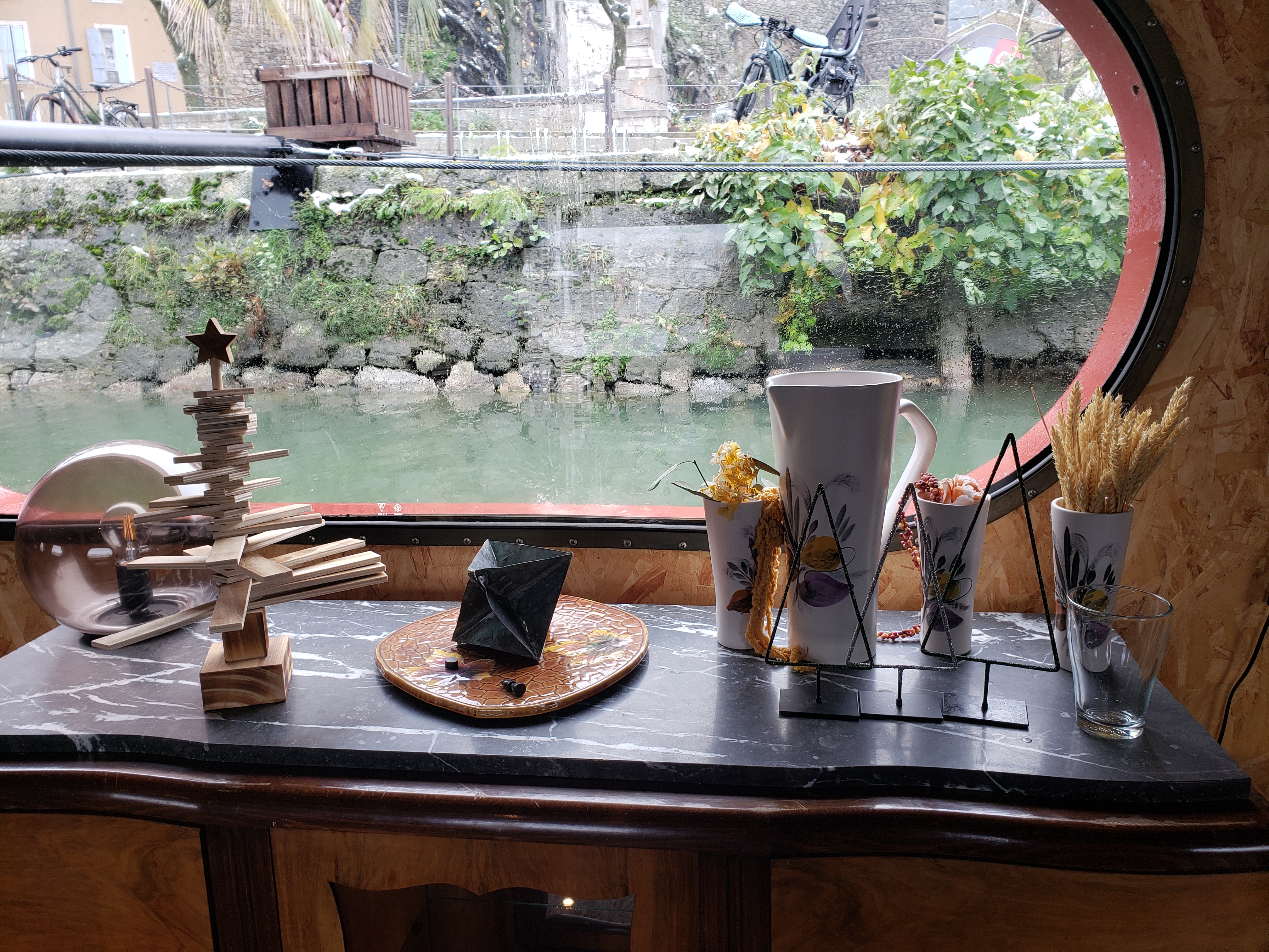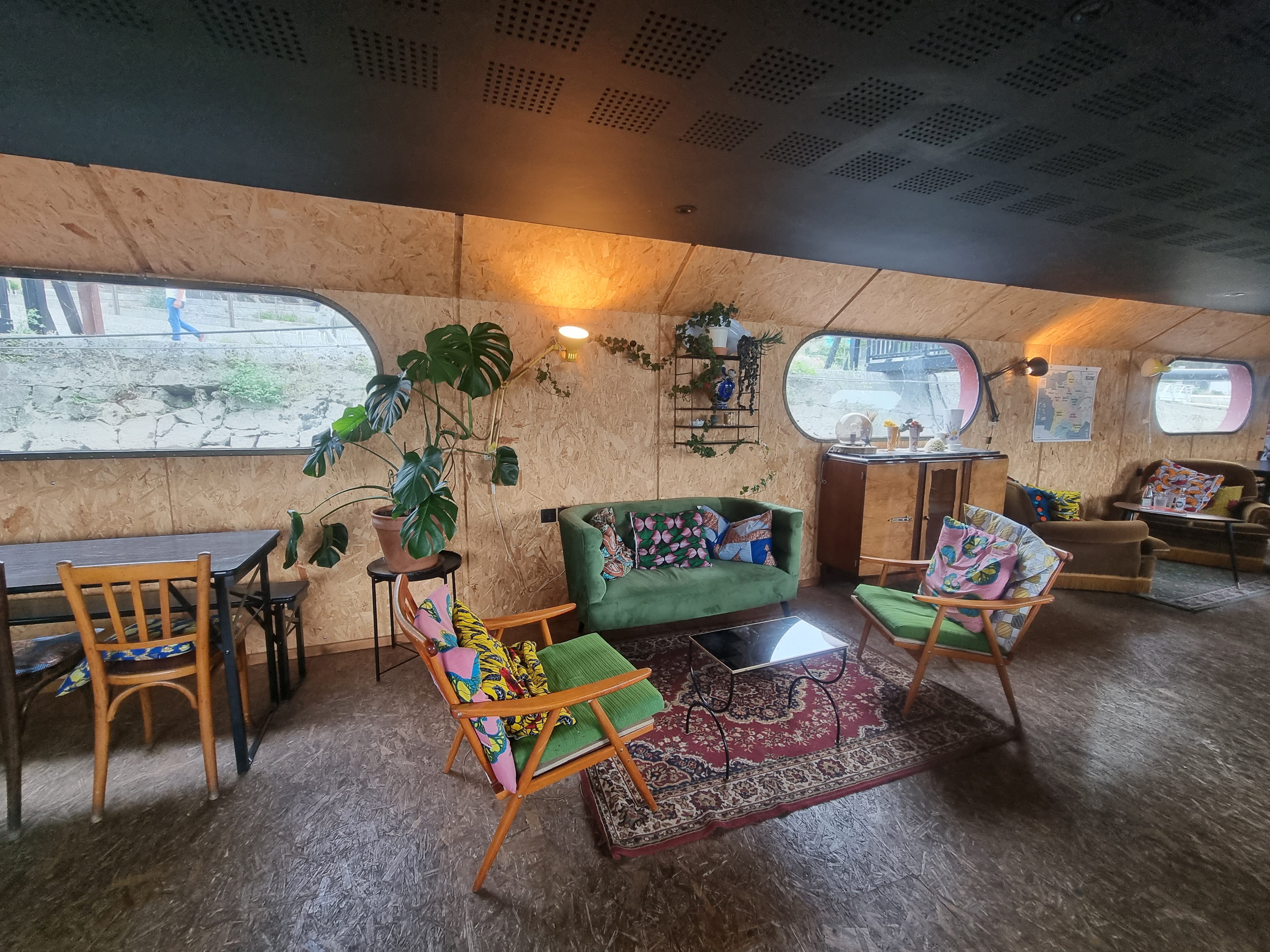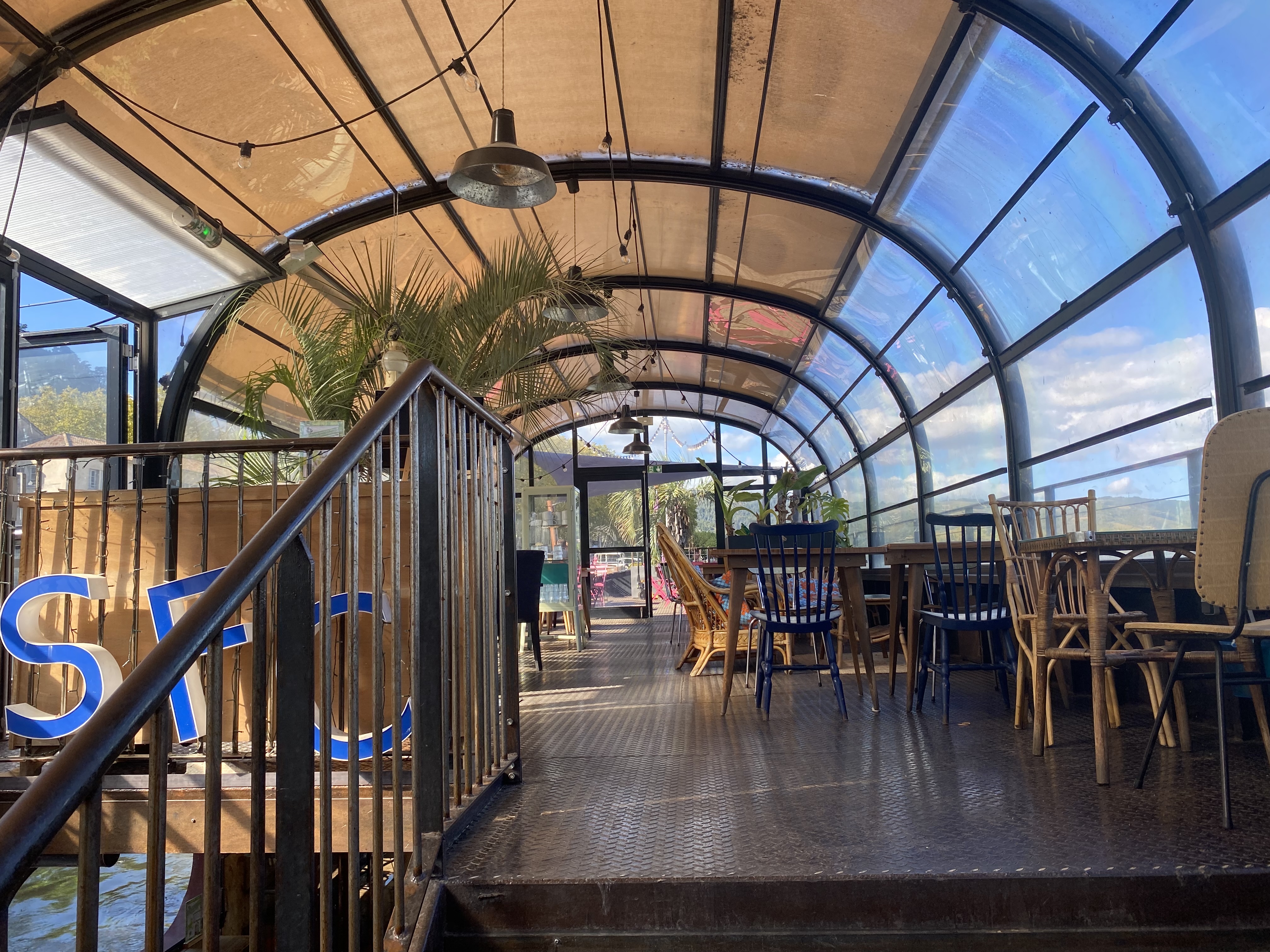 J'adore cette péniche où l'on se sent comme à la maison. Seule où en bonne compagnie, on peut déguster du sucré et salé, en mode cocooning près des hublots dans la cale ou sur le pont sous la verrière, ou en plein air sur les transats