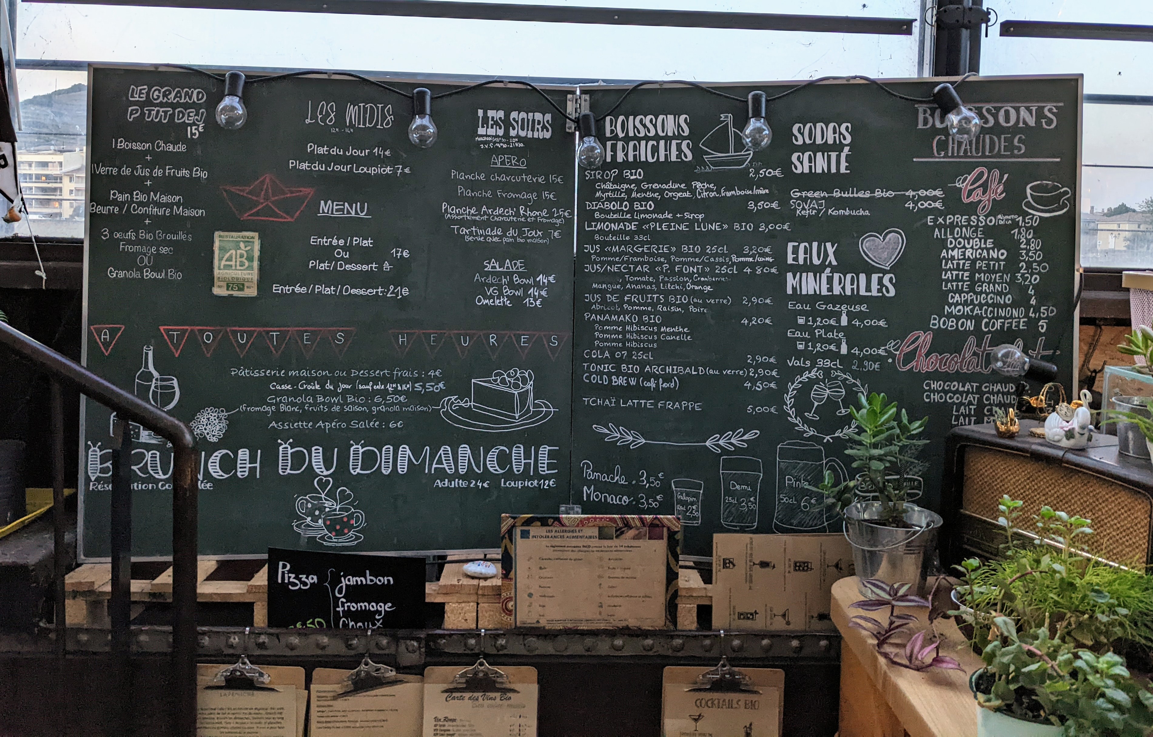Endroit très sympathique, chaleureux dans un décor vintage, situé sur le Rhône au niveau des quais de Tournon. Idéal pour un repas ou brunch en groupe. La carte est large, il y en a pour tous les goûts, et comprend même des plats végétariens. Le concept anti-gaspi est bien pensé. Je recommande.