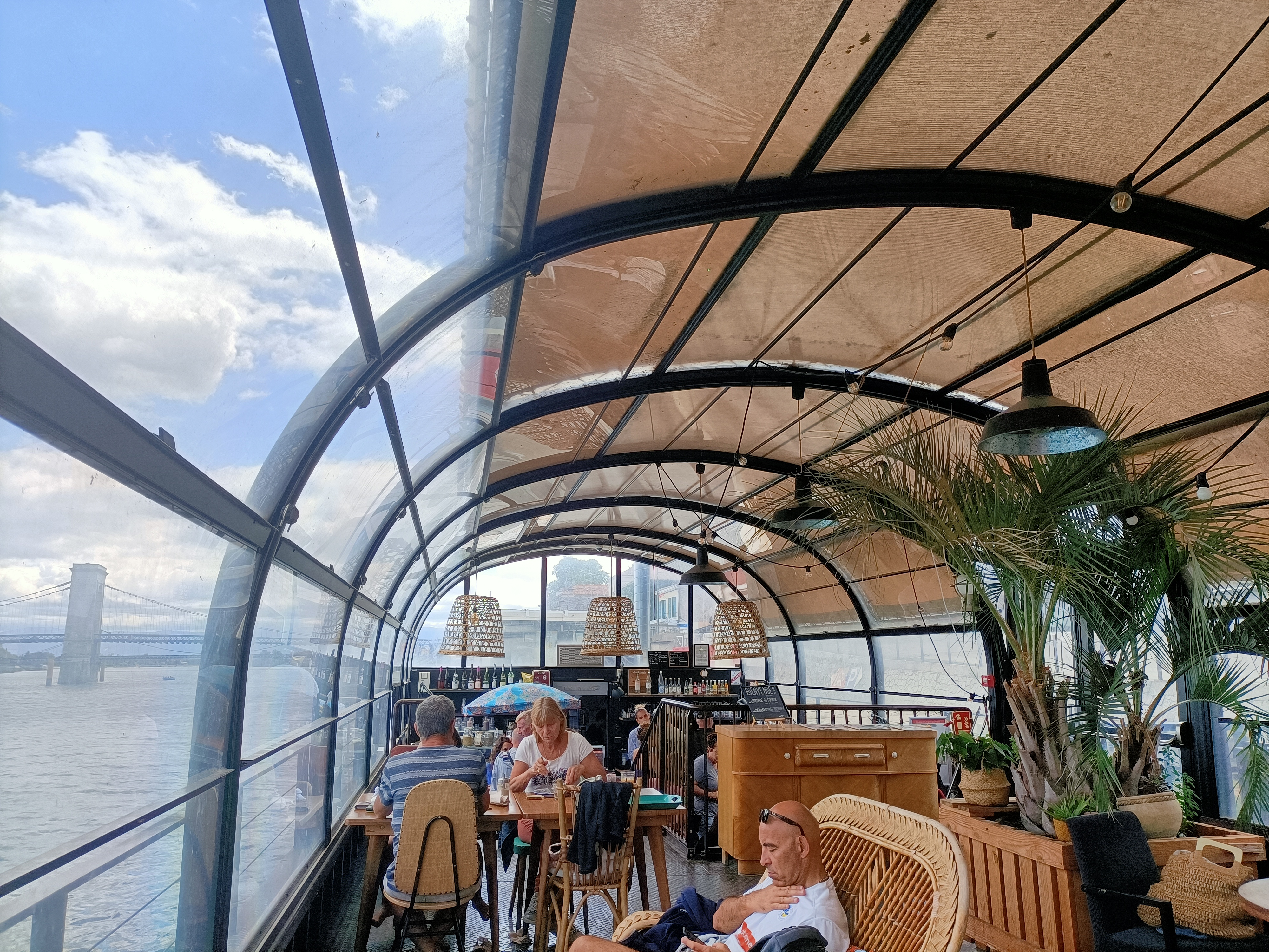 Concept vraiment très original, manger sur une péniche en face du Pont Piéton. Quelle expérience ! Serveurs et serveuses très souriants, atmosphère agréable mais parfois un peu trop bruyante à mon goût... Plats très sympas !