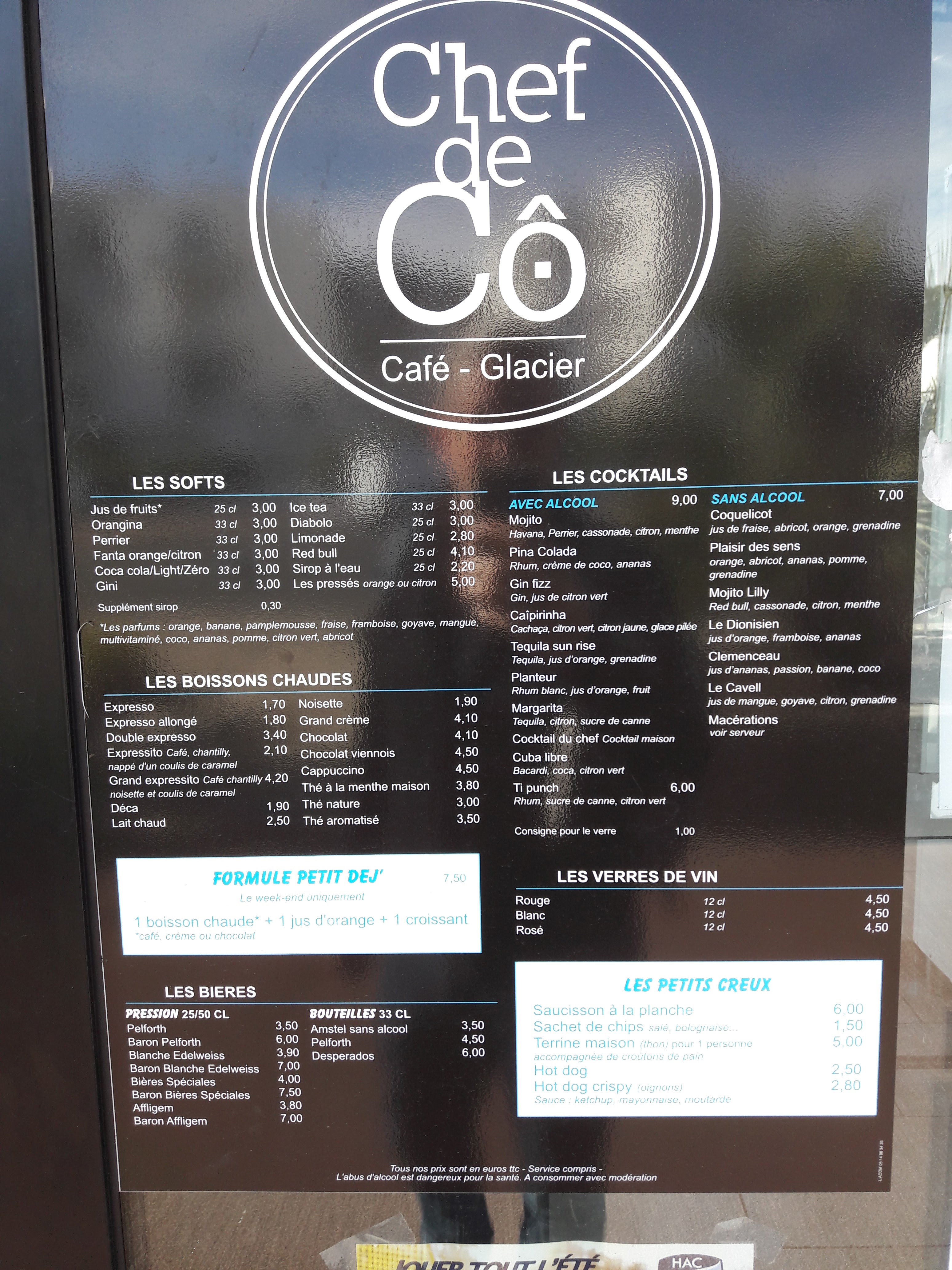 Jolie vue mais les prix affichés ne sont pas les prix pratiqués … (vous comprenez c’est plus facile de mettre à jour les petites cartes que celles affichées, il faut tout faire refaire …)