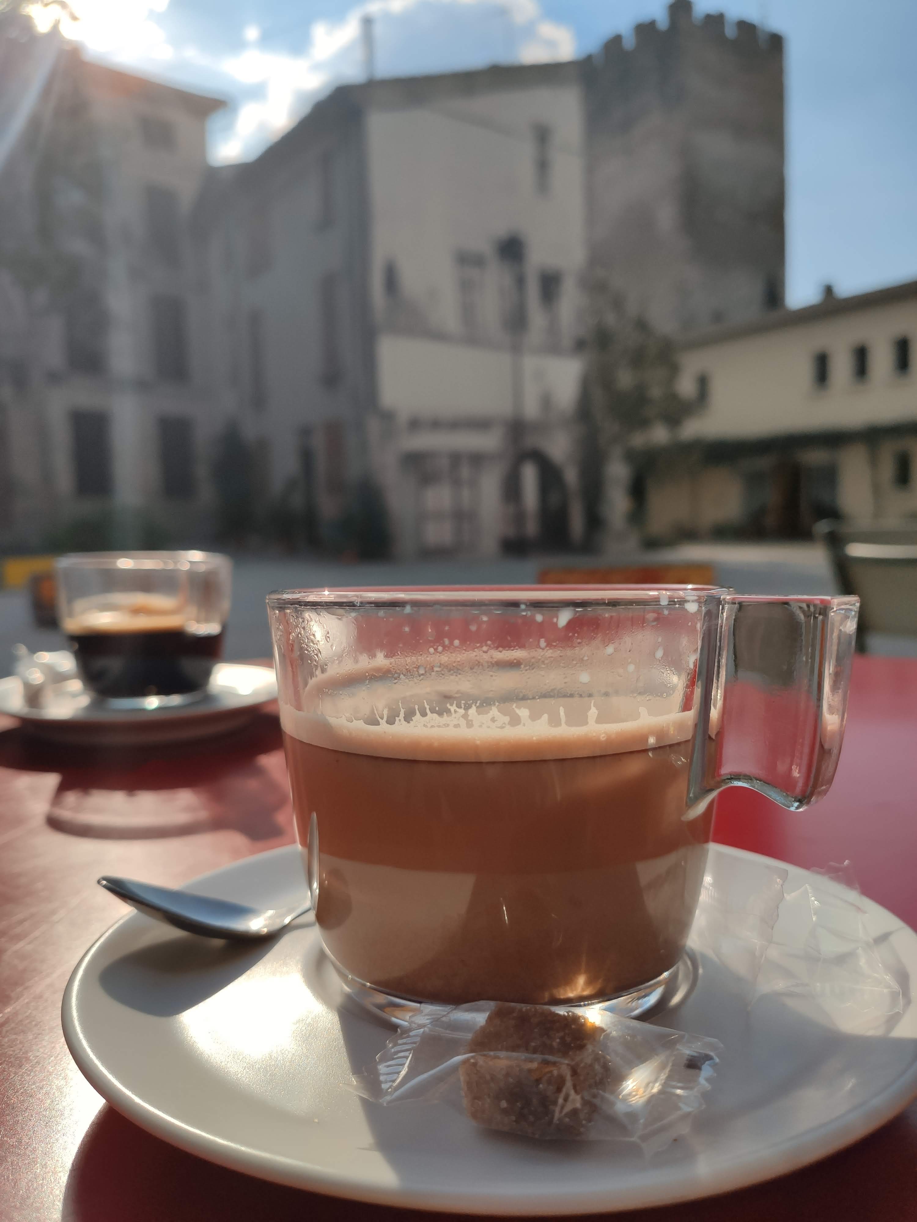 Petit café sympa situé sur une merveilleuse petite place à Monteux avec de splendides fresques murales