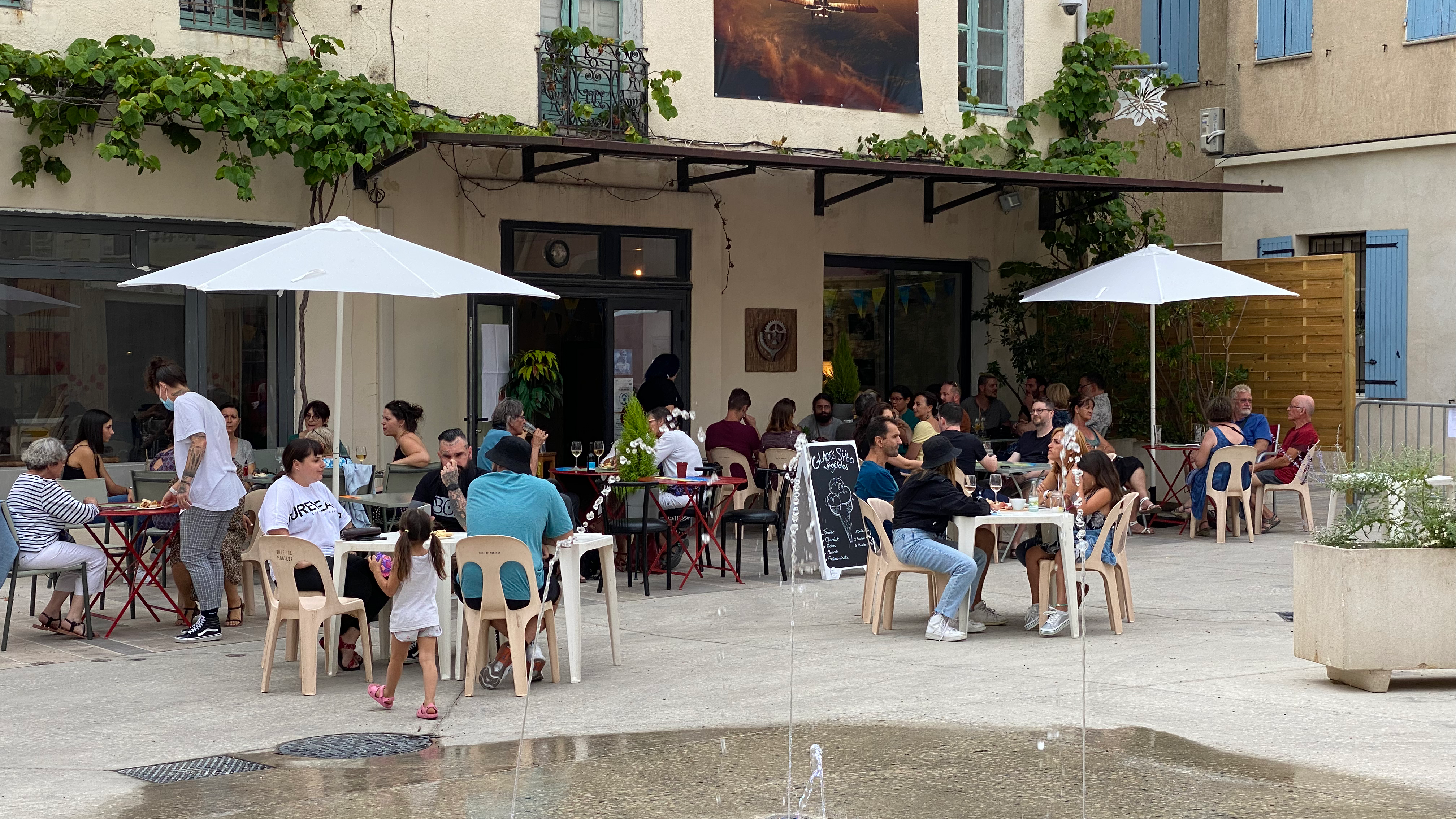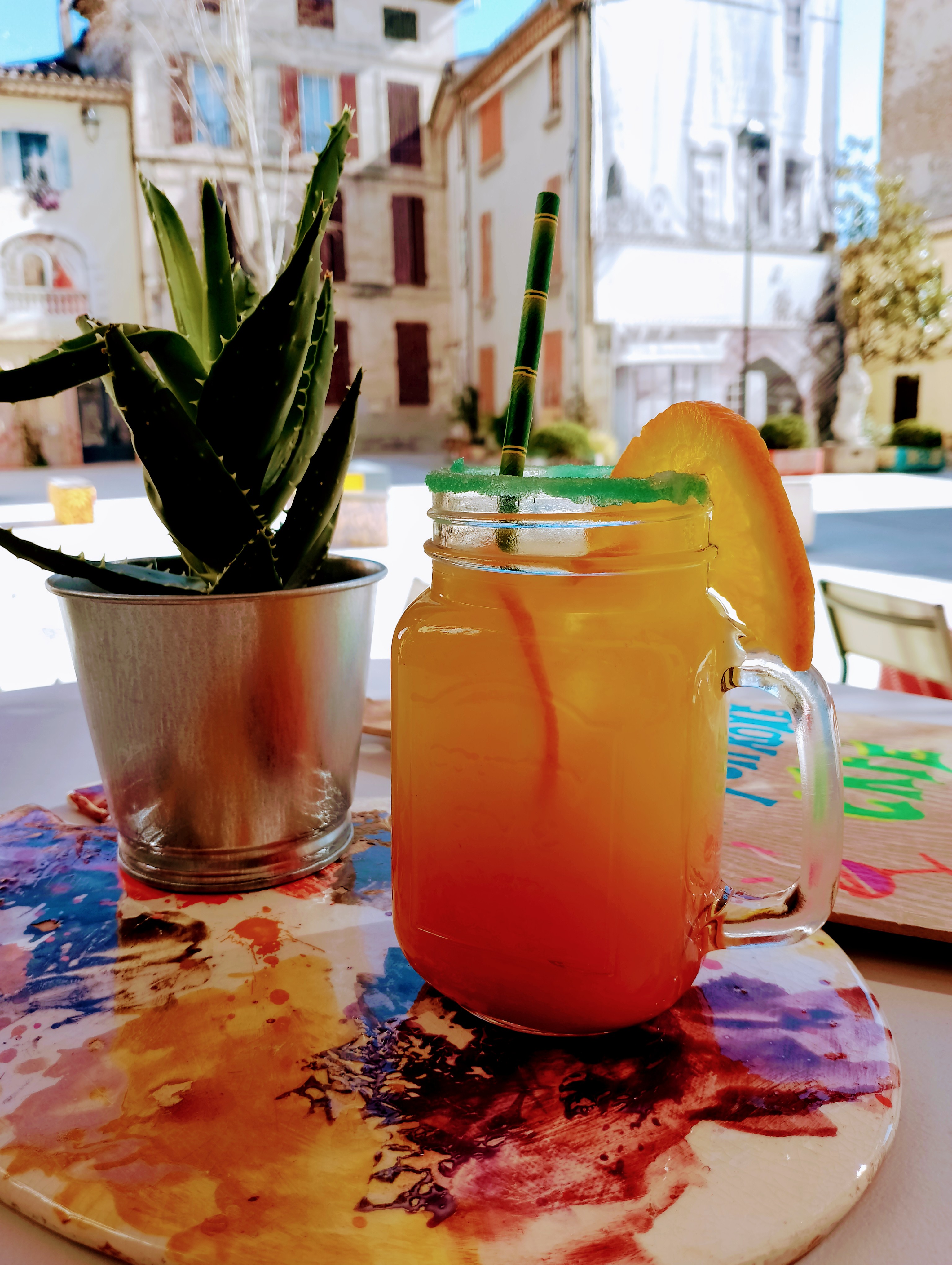 Chouette café associatif en plein centre historique et artistique de Monteux, prix abordables, animation musicale le vendredi soir pendant tout le mois d'août, possibilité de manger sur place (brochettes salade la semaine dernière) et surtout d'y rencontrer des gens très sympas !