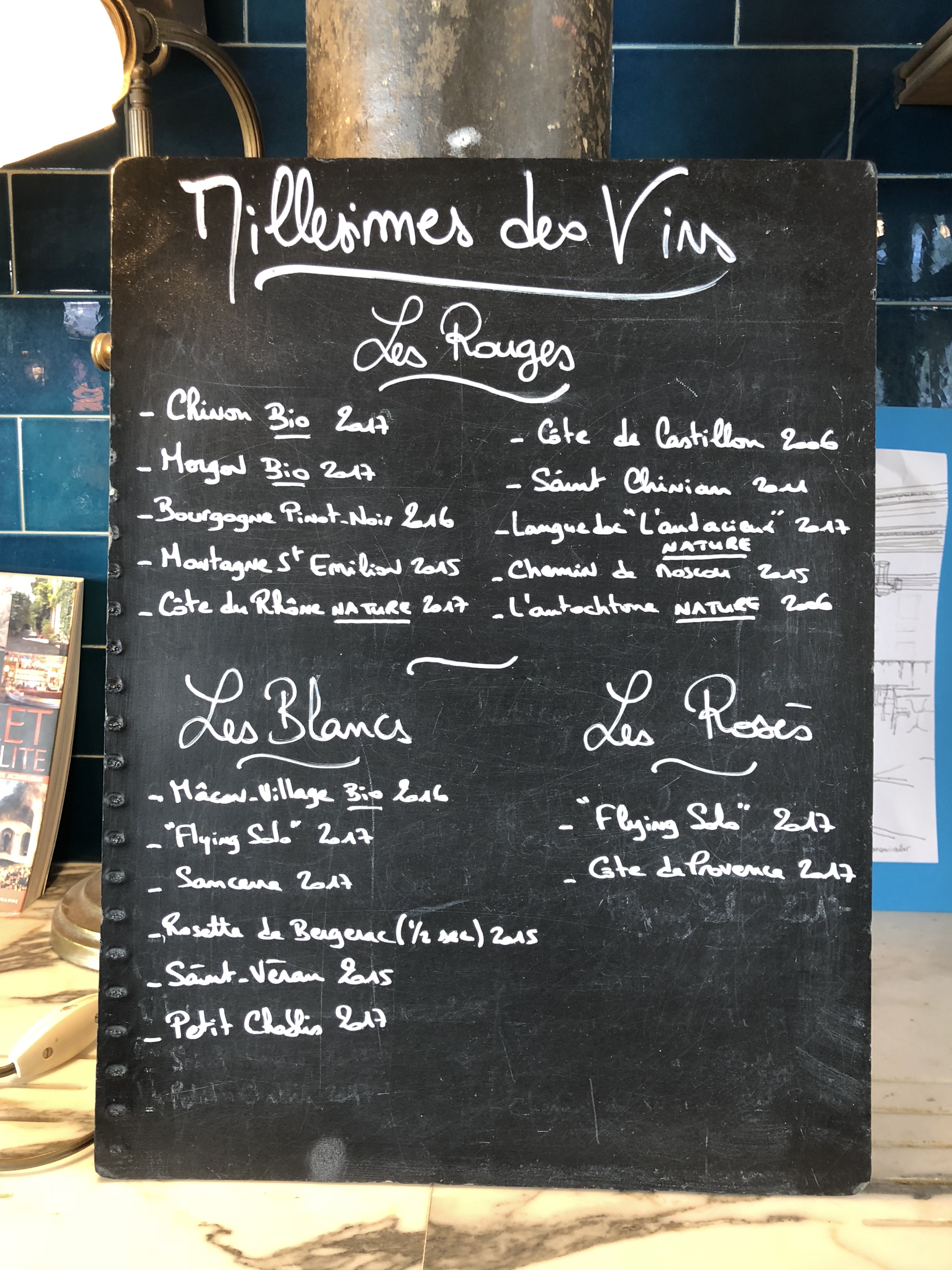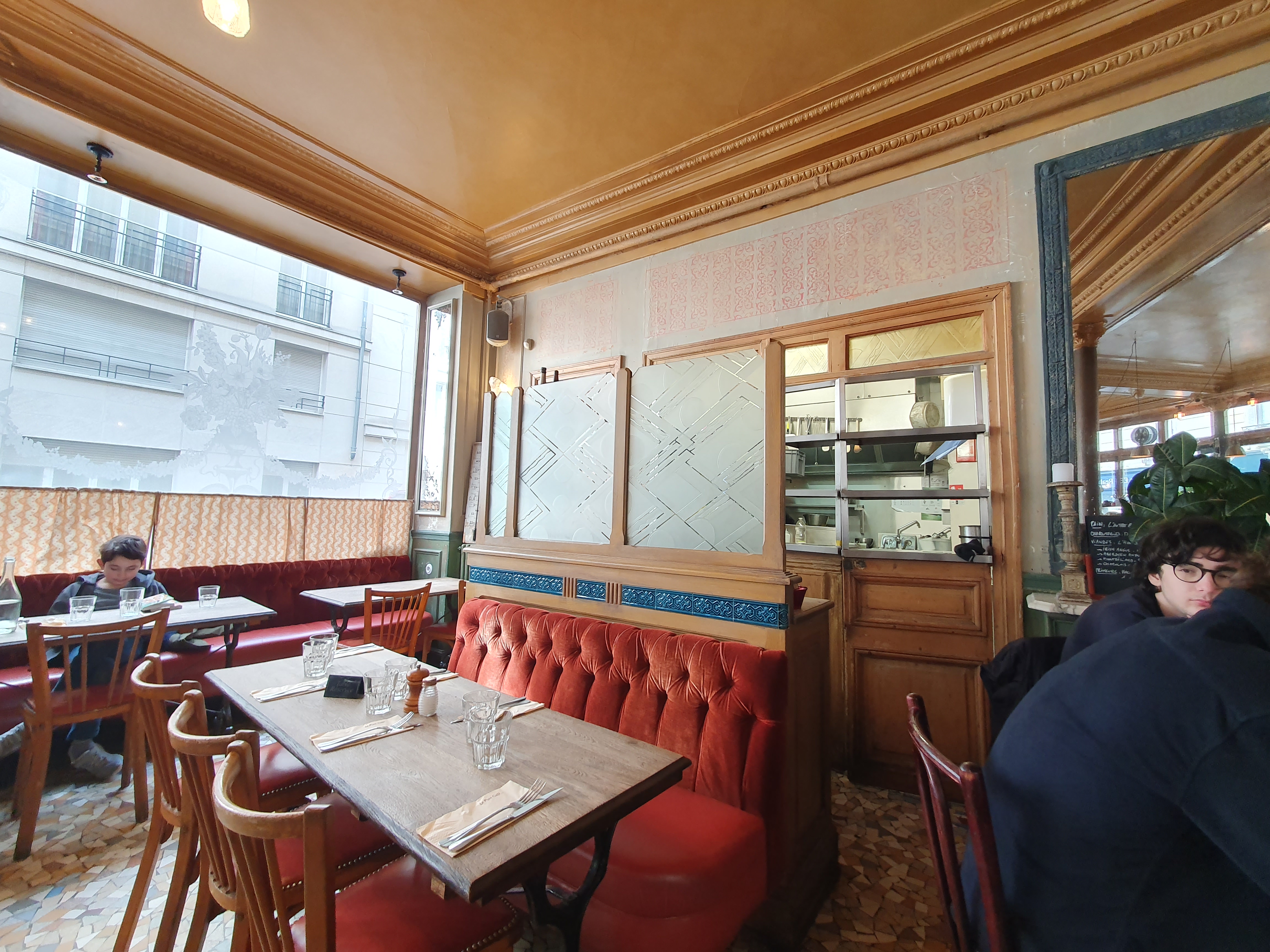 Salle et comptoir exceptionnellement beaux, qui crient Paris et le bistro authentique. Carte intéressante, à l'ardoise (bon signe), serveuses sympa. Sur les plats : salade césar bonne, mais au final quand même beaucoup de salade au détriment des autres ingrédients de la recette... déçu surtout sur le dessert ('pain perdu brioché') : glace vanille industrielle type 'carte d'or' (ou 'métro'), et 'caramel' du même acabit, sortant manifestement d'un tube.