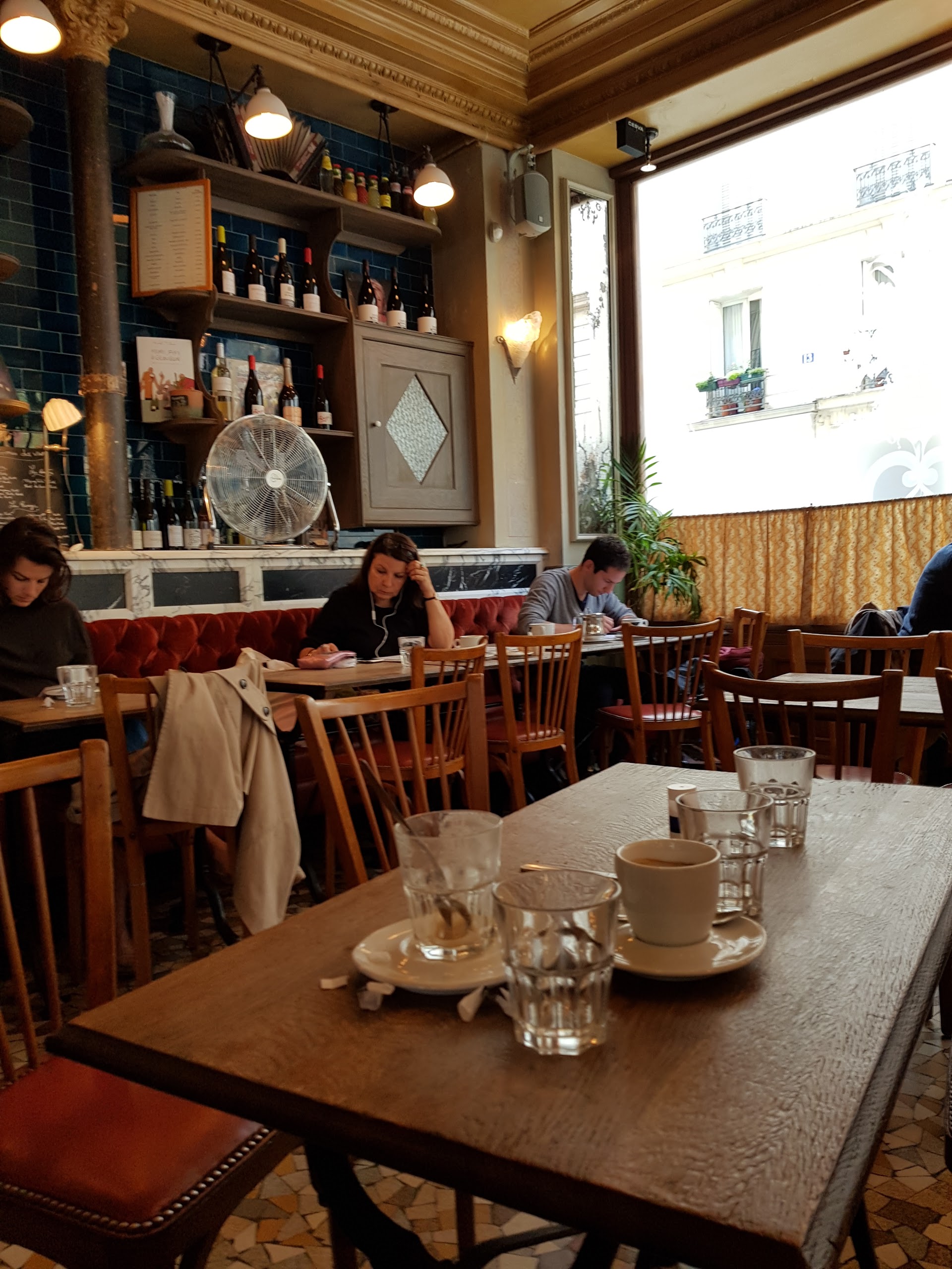 On va commencer par le positif: l’ambiance et la décoration désuète typique d’un café parisien sont très agréables. Par contre, le service est très lent et que dire de l’accueil… nous étions 4 à boire un verre, et avons proposé à une 5ème personne de nous rejoindre… Quelle idée.. Cela n’a pas beaucoup plu à l’irascible serveuse à la coupe playmobil, qui nous a fait comprendre de façon abjecte que nous aurions dû la prévenir. Nous avons, évidemment, quitté l’établissement, en nous faisant traiter de « personnes impolies »… Excusez-nous de garder un peu d’imprévu dans notre vie et de ne pas vous avoir prévenu en janvier que nous serions 1 personne de plus. Un conseil, changez de métier. A jamais.