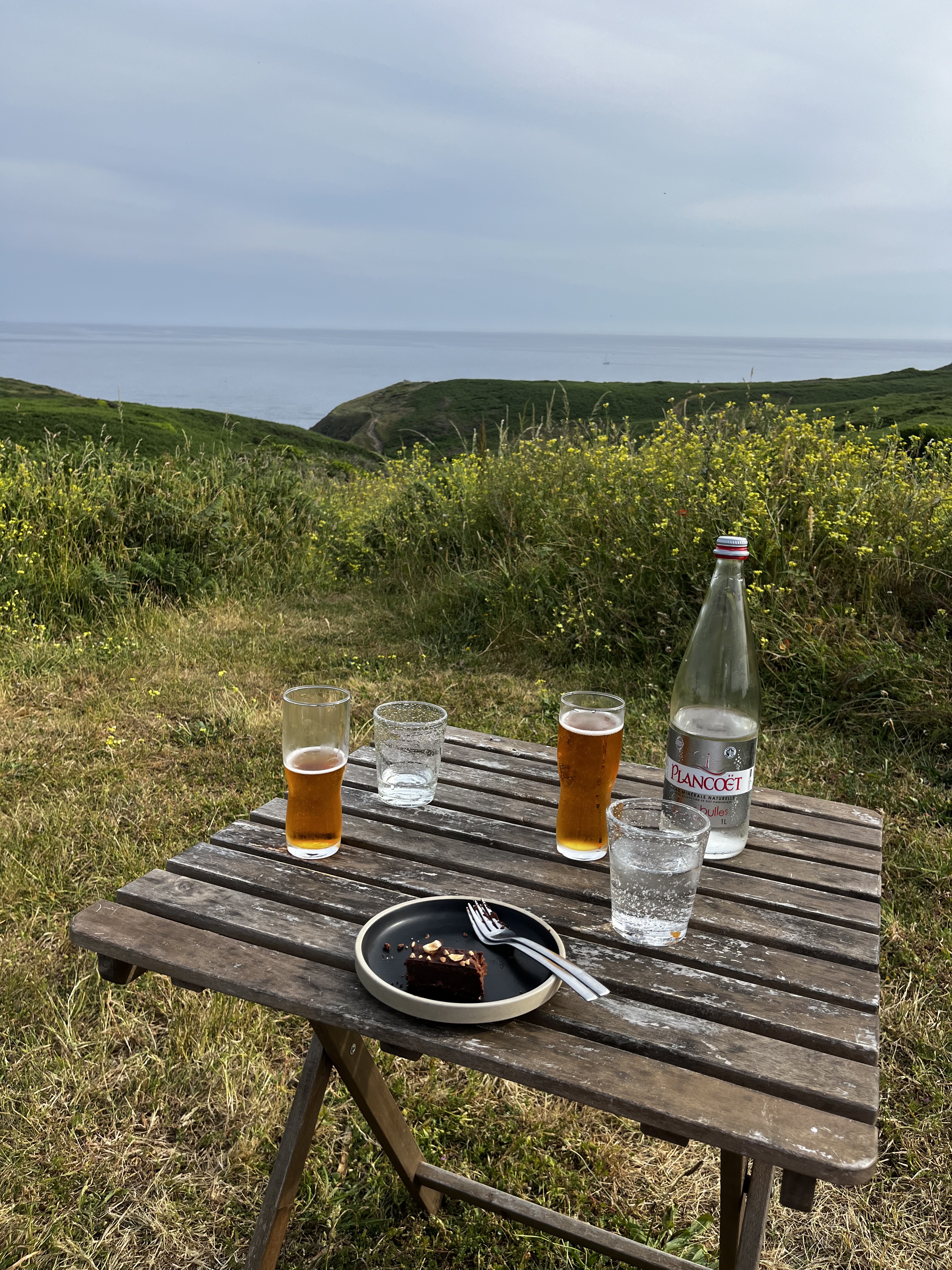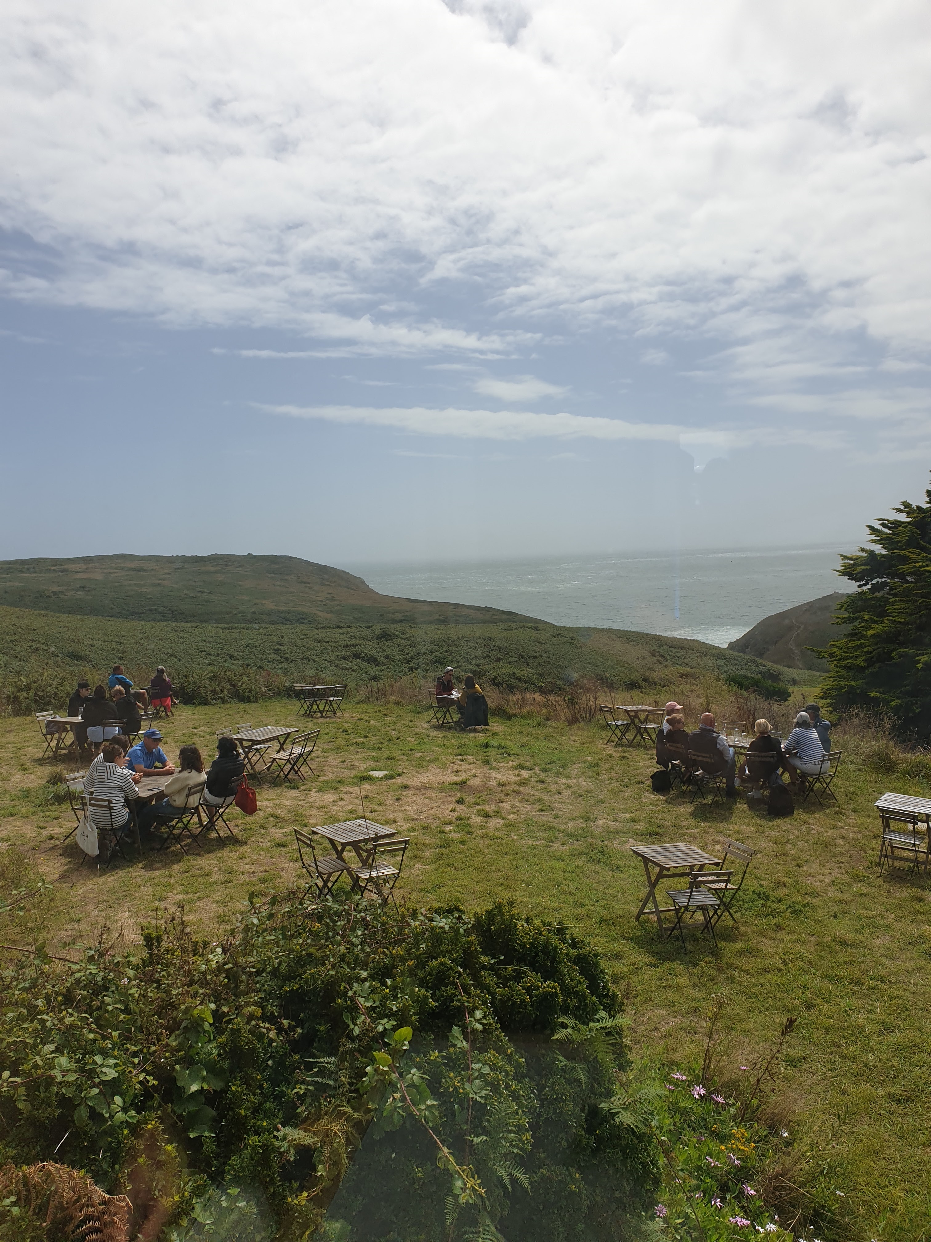 Quel endroit délicieux ! Tout comme les gâteaux et le thé que nous avons dégustés. La vue est magique et surtout nous sommes installés dans l'herbe et non sur du béton, et ça c'est merveilleux ! Ne manquez surtout pas cette petite halte après une belle balade sur les sentiers côtiers 😊.