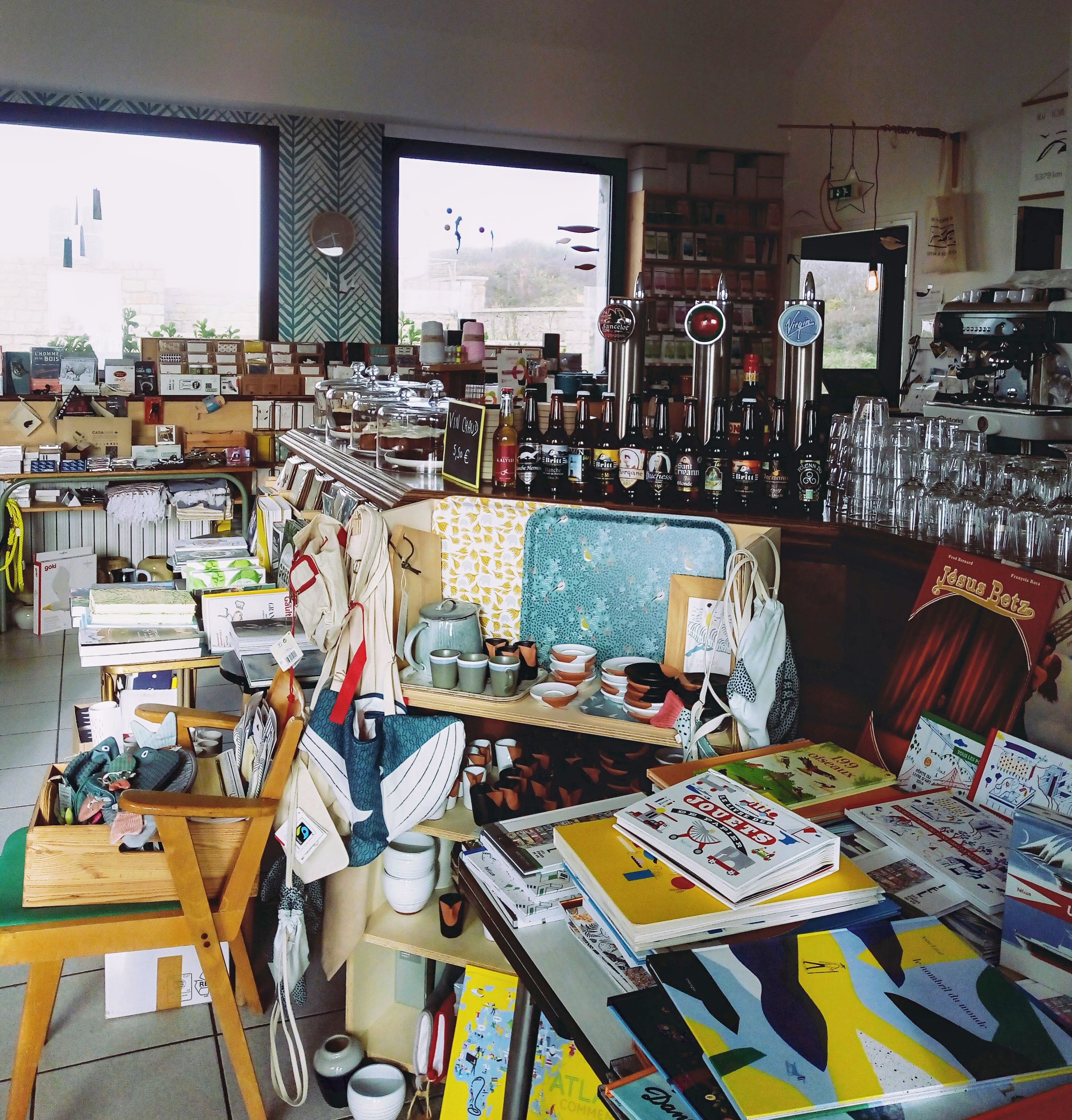 Probablement l’endroit le plus adorable de cette pointe bretonne. L’envie de tout acheter, tout offrir, tout collectionner vous envahit dès les sas d’entrée. Impossible de repartir sans un bouquin d’aventure ou l’objet que vous cherchiez depuis des lustres. La carte est largement suffisante pour grignoter les produits locaux proposés. Les prix sont un peu $$$ mais le cadre atypique et la vue sur mer y sont inclus 😉 Un fond sonore serait le bienvenu (en nous offrant la playlist, car si elle est l’image du lieu, nul doute qu’elle sera vite adoptée) à moins que vous ne préfériez le bruit du vent et du ressac tout aussi mélodique. Une belle découverte