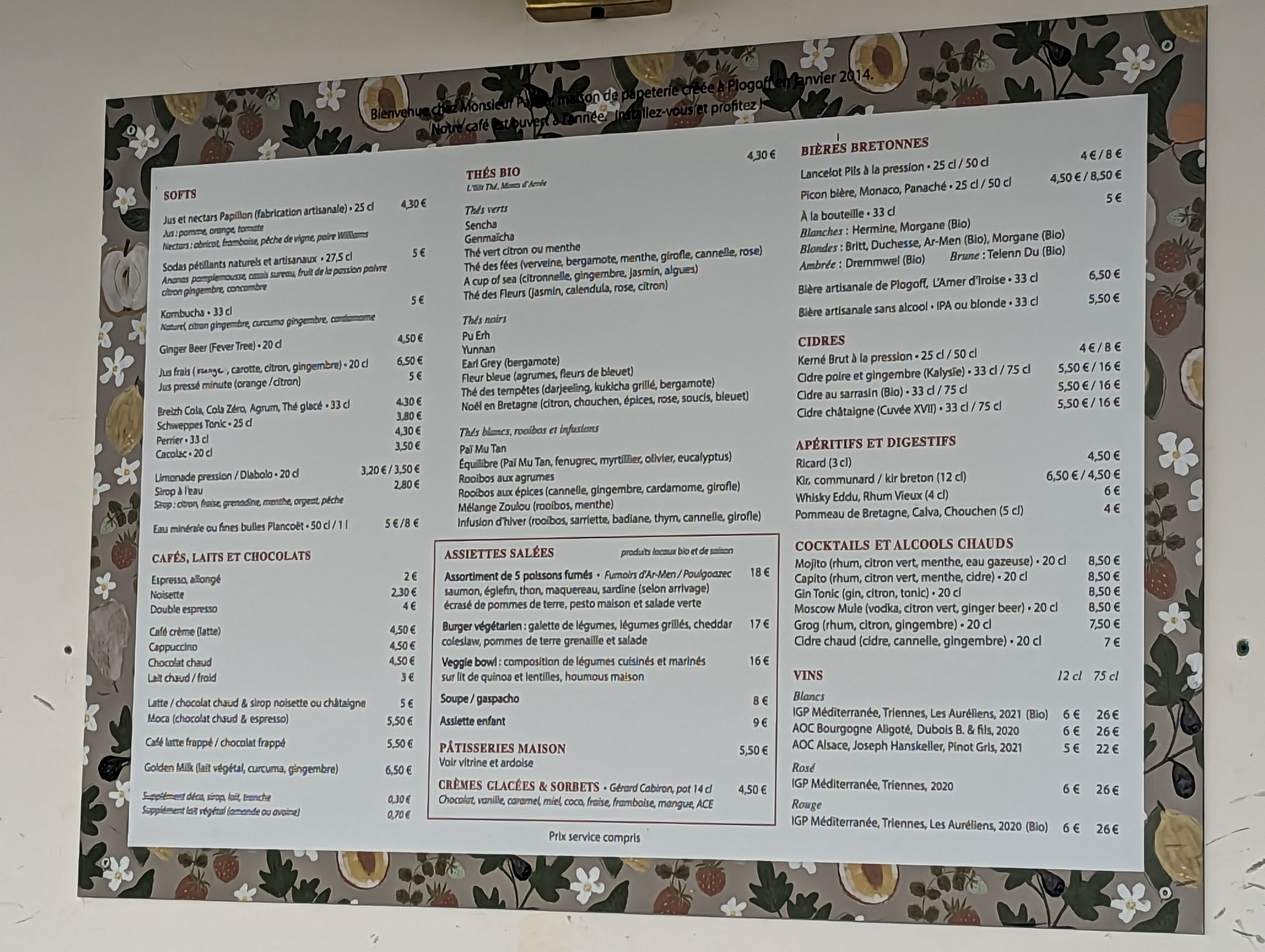Très joli cadre. L'équipe est super et les colations proposées sont délicieuses (carrot cake et moka pour ma part). L'espace boutique est bien fourni si vous souhaitez prolonger le souvenir des vacances dans le Finistère.