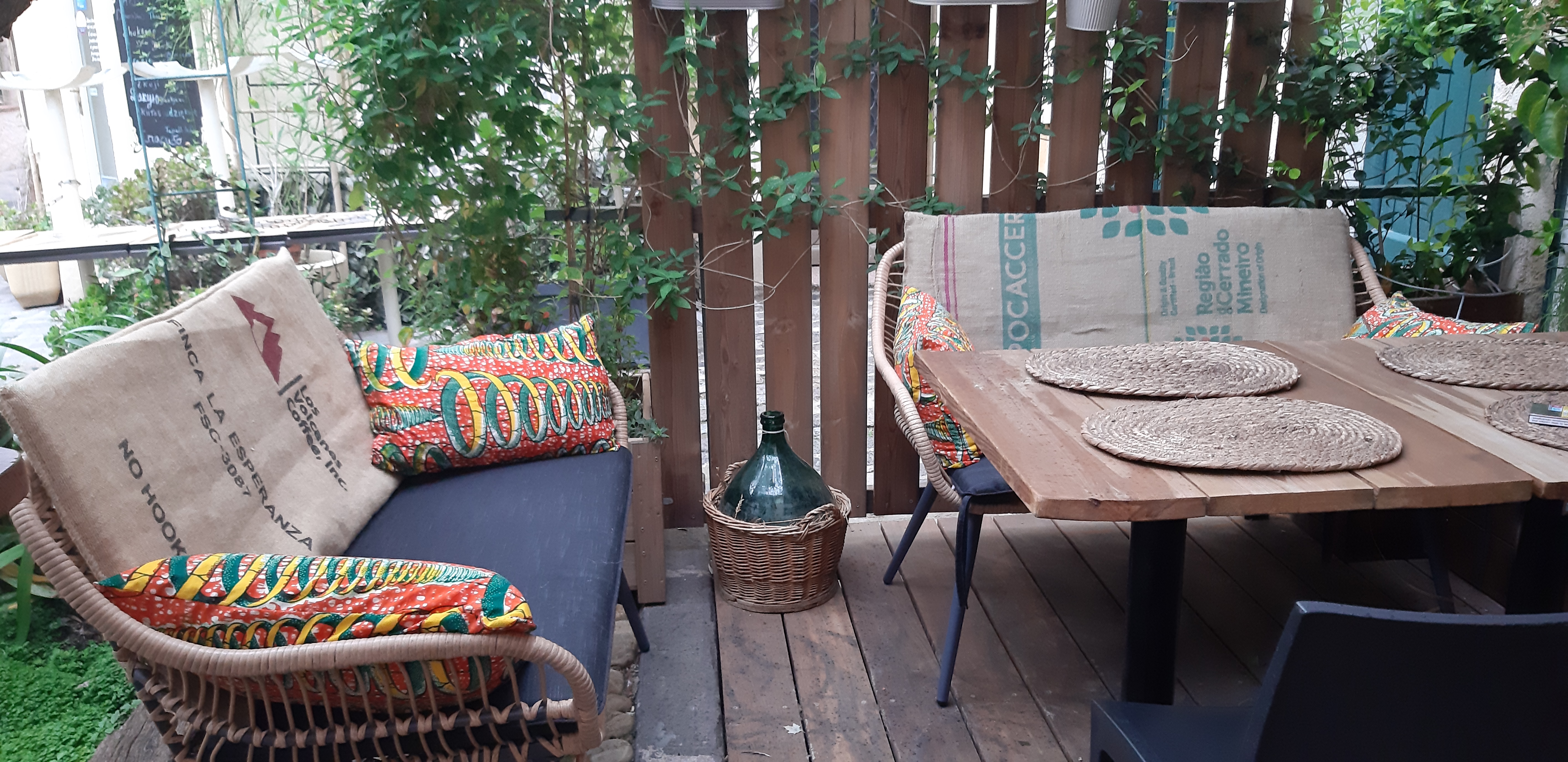 Très convivial, jolie petite terrasse à l'ombre où on a envie de rester.la cuisine est délicieuse et le café bio.tout est fait maison.
