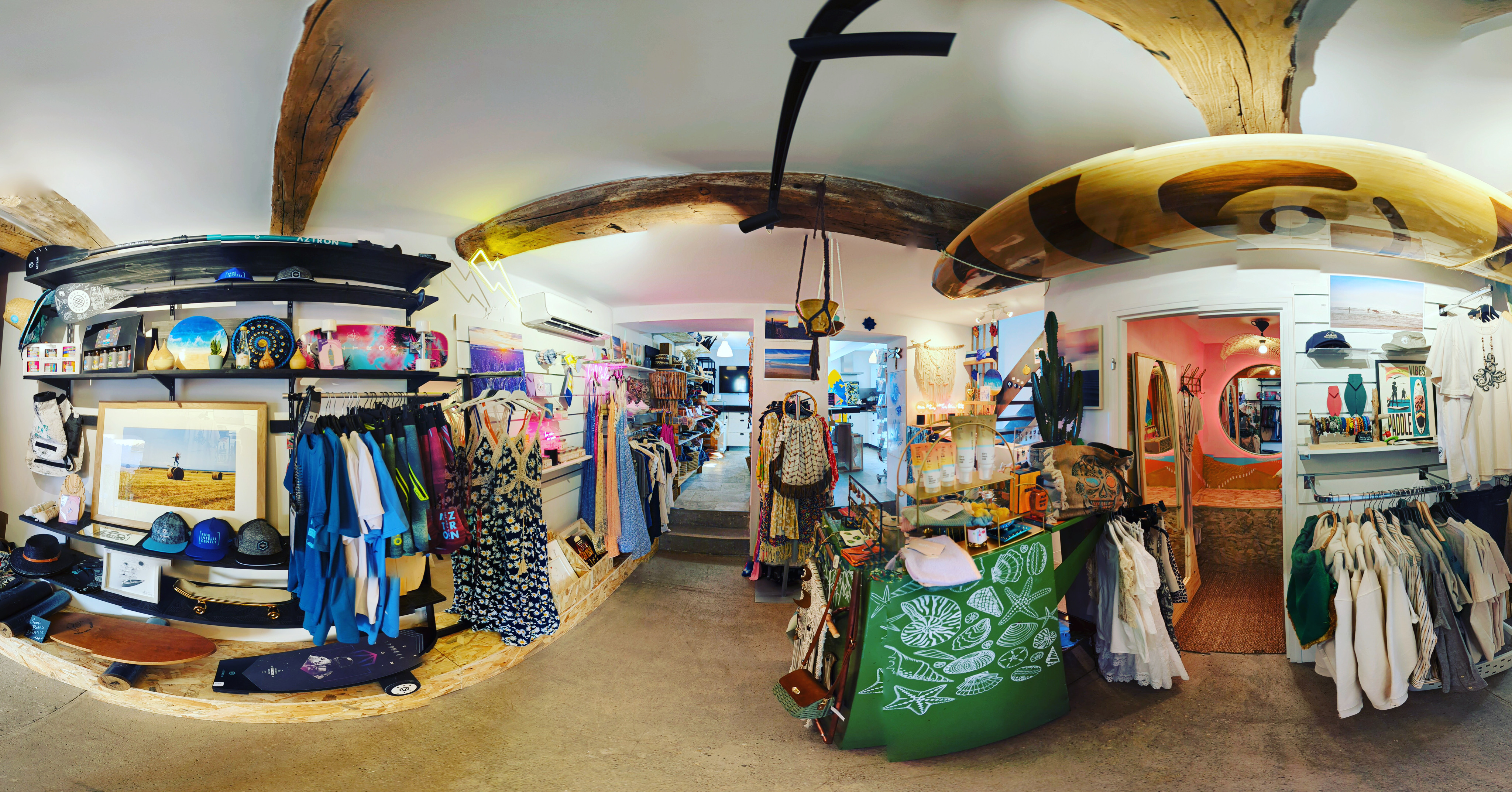 Endroit très sympa, accueil souriant , plein de choses à découvrir , manger, boire, vêtementS, bijoux , maillots de bain, art … On y retourne !